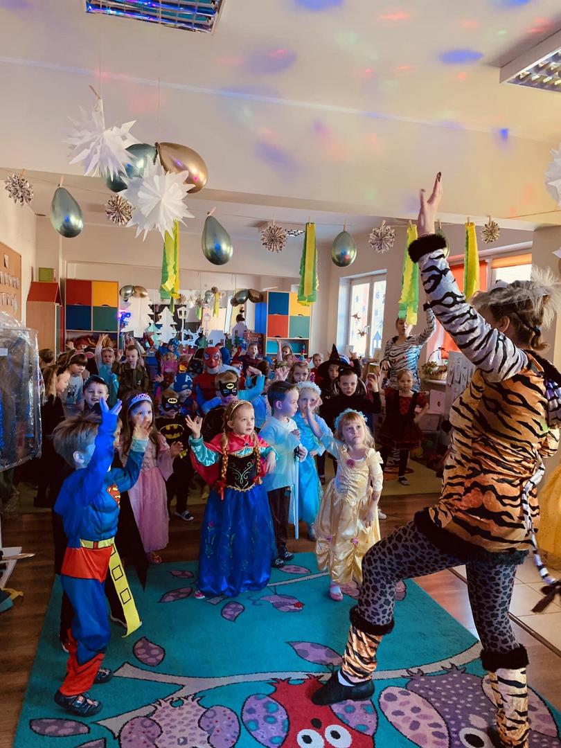 Wspólnie pomogły przenieść się nam w różne zakątki świata. ? Taneczna muzyka i cudowne animacje na krótką chwilę zawładnęły naszymi roztańczonymi ciałami. Udało nam się również nauczyć elementów choreografii. Całość urozmaicona była przerywnikami w postaci konkurencji, kolorowymi światłami i pokazem baniek mydlanych. Na sam koniec odwiedził nas... KRÓL JULIAN ?, który dotarł na nasz bal aż z Madagaskaru! Oczywiście nie zapomnieliśmy o pamiątkowych zdjęciach