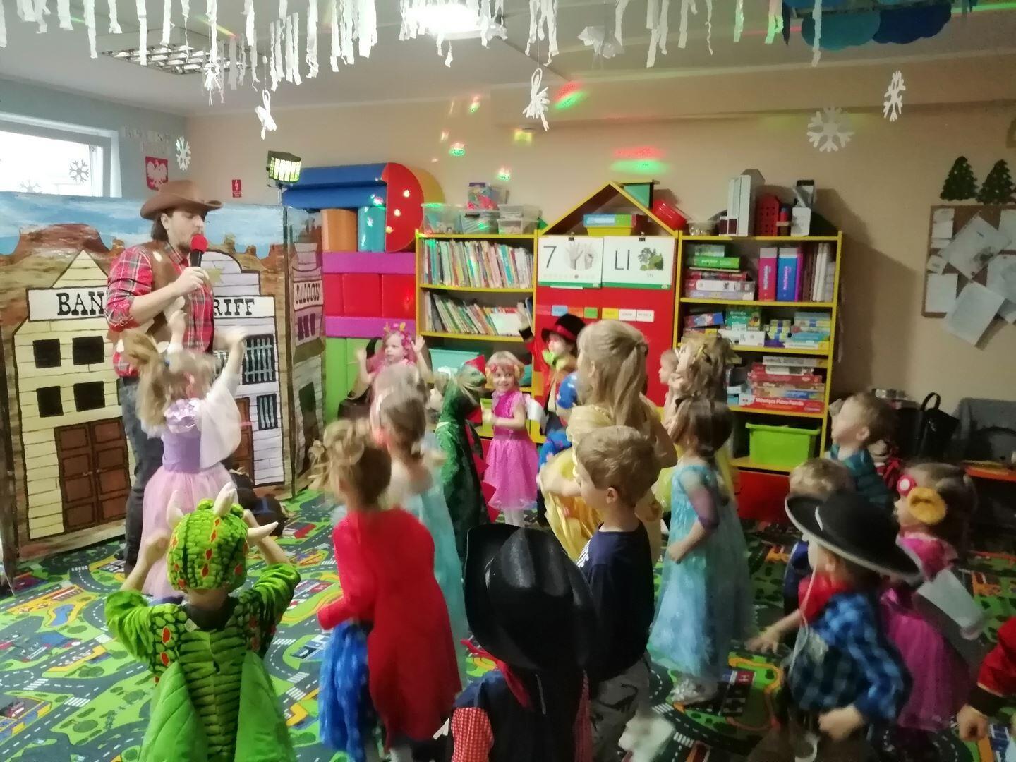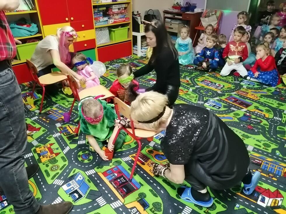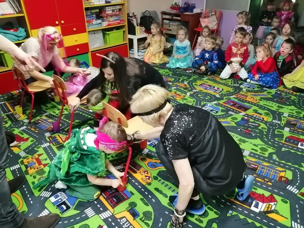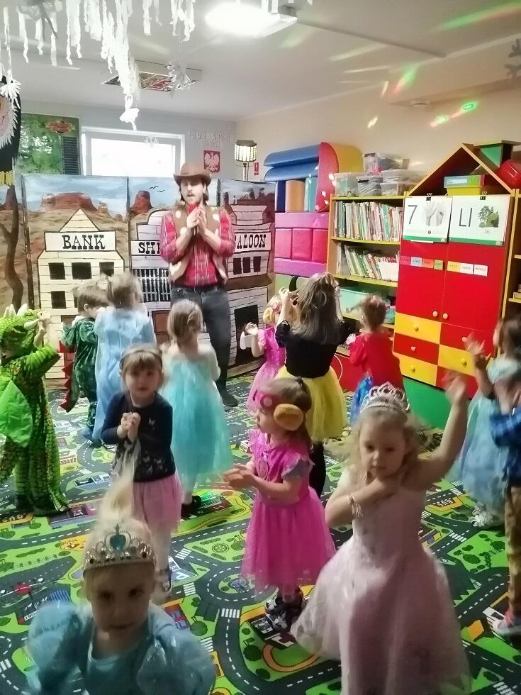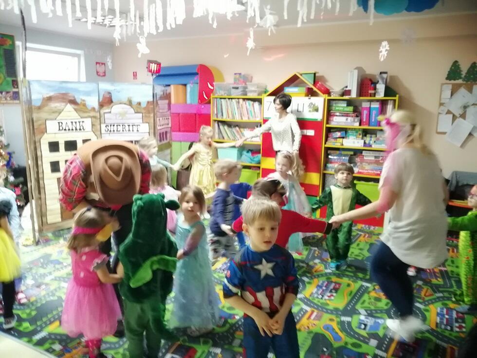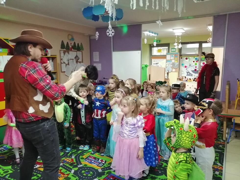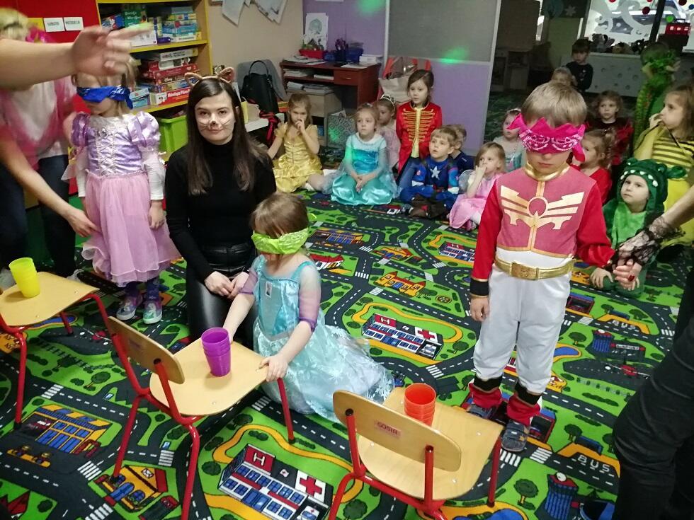 Dnia 7 lutego w naszym przedszkolu odbył się bal karnawałowy. Dzieci w tym dniu przebrane były za bohaterów znanych bajek wróżki, syrenki, księżniczki, oraz bohaterów znanych filmów takich jak Chudy, Elsa, Anna czy Kapitan Ameryka. W pierwszej kolejności dzieci pozowały do zdjęć indywidualnych oraz grupowych pod okiem fotografa. Następnie uczestnicy balu przeszli do sali balowej, której wystrój wprowadzał w radosny i świąteczny nastrój. Bal został poprowadzony przez miłego Pana z Teatru "Qfer", który zachęcał dzieci do tańca oraz przygotowanych  przez niego zadań. Dzieci świetnie się bawiły wraz ze swoimi paniami.