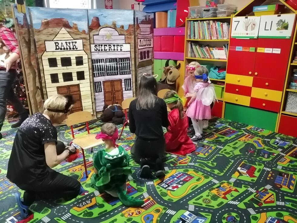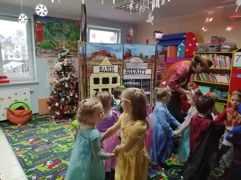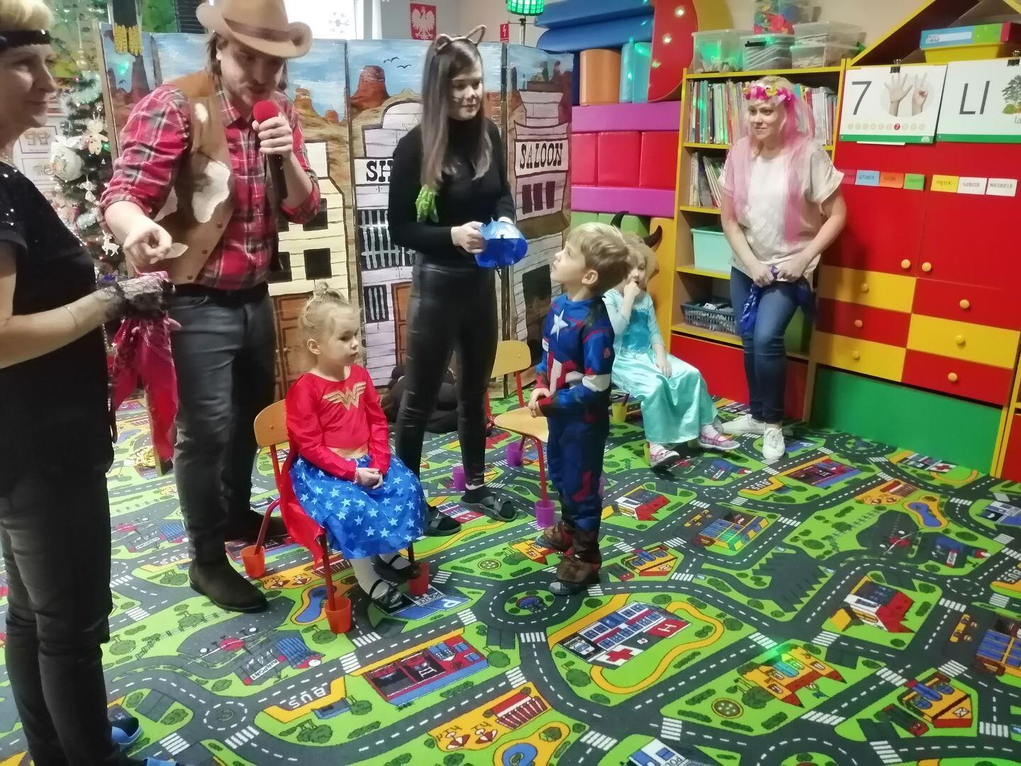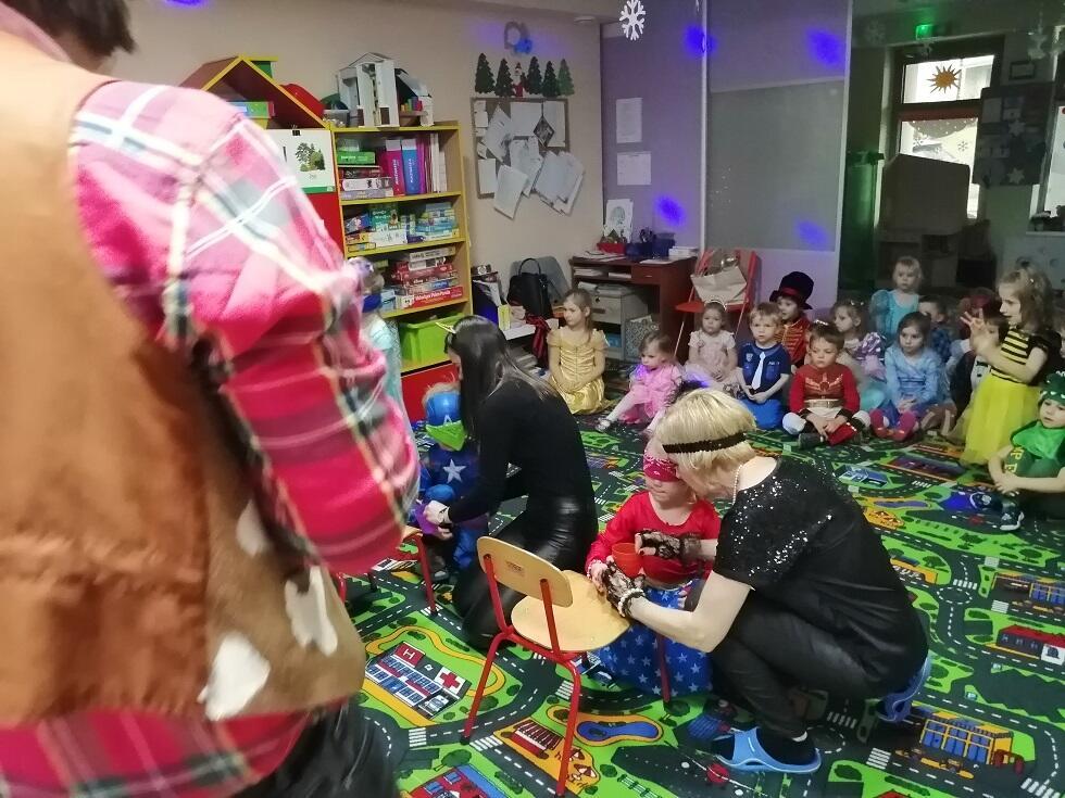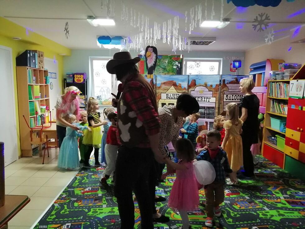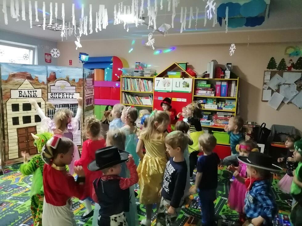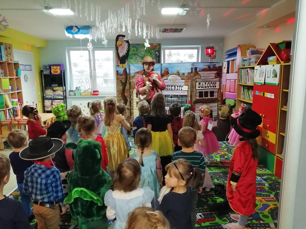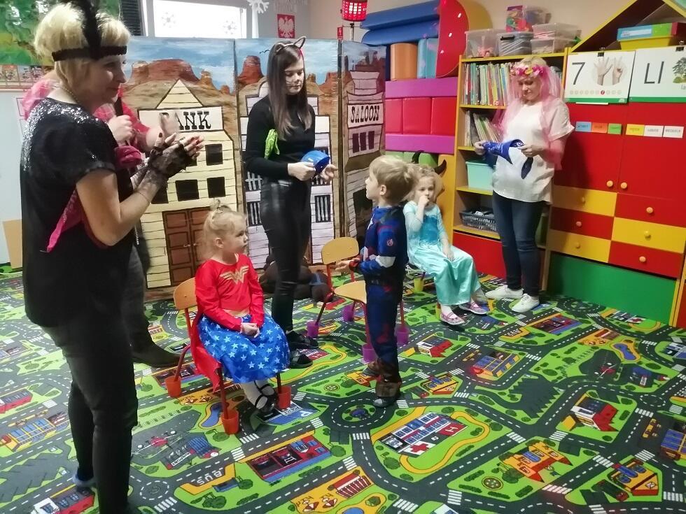 Dnia 7 lutego w naszym przedszkolu odbył się bal karnawałowy. Dzieci w tym dniu przebrane były za bohaterów znanych bajek wróżki, syrenki, księżniczki, oraz bohaterów znanych filmów takich jak Chudy, Elsa, Anna czy Kapitan Ameryka. W pierwszej kolejności dzieci pozowały do zdjęć indywidualnych oraz grupowych pod okiem fotografa. Następnie uczestnicy balu przeszli do sali balowej, której wystrój wprowadzał w radosny i świąteczny nastrój. Bal został poprowadzony przez miłego Pana z Teatru "Qfer", który zachęcał dzieci do tańca oraz przygotowanych  przez niego zadań. Dzieci świetnie się bawiły wraz ze swoimi paniami.