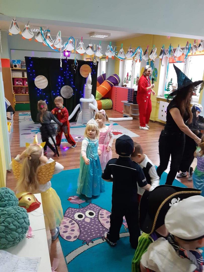 Bal karnawałowy "W kosmosie" był bardzo udany :) Wszyscy świetnie się bawili - były tańce, konkursy i głośna muzyka. A stroje... Wszystkie przyciągały uwagę. Mieliśmy indiankę, biedronkę, piratów i księżniczki a nad bezpieczeństwem zabawy czuwali nasi mali policjanci.