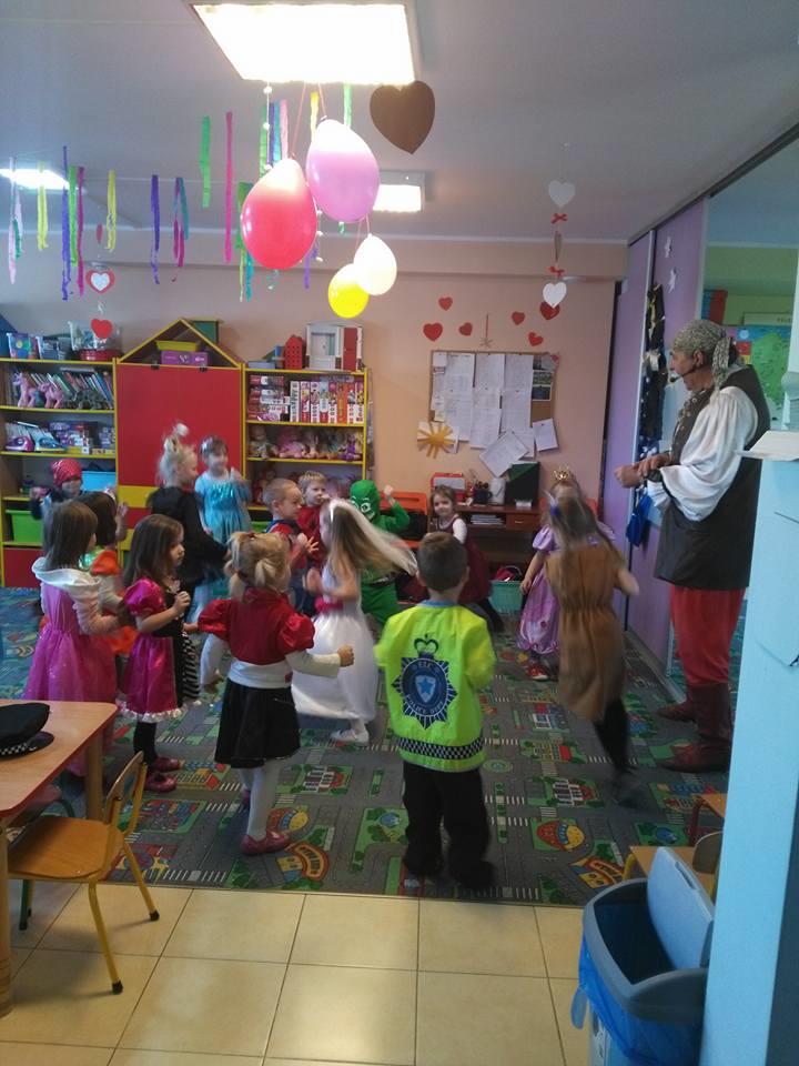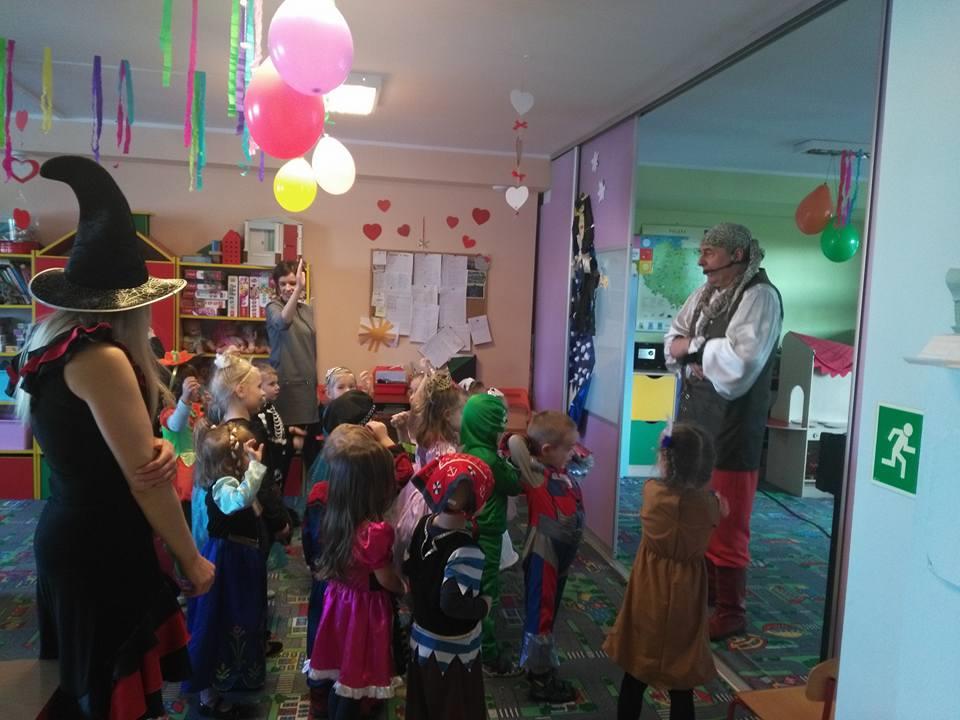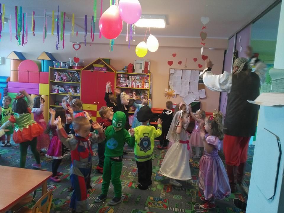 Dzieci w tym dniu przebrane były za bohaterów znanych bajek, w sali przedszkolnej można było spotkać wróżki, księżniczki, policjantów, Else oraz Anne z Krainy Lodu i wiele innych wspaniałych postaci. W pierwszej kolejności dzieci pozowały do zdjęć indywidualnych oraz grupowych pod okiem fotografa. Następnie uczestnicy balu przeszli do sali balowej, której wystrój wprowadzał w radosny i świąteczny nastrój.