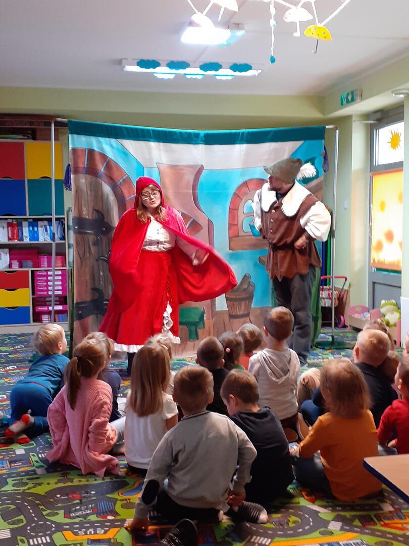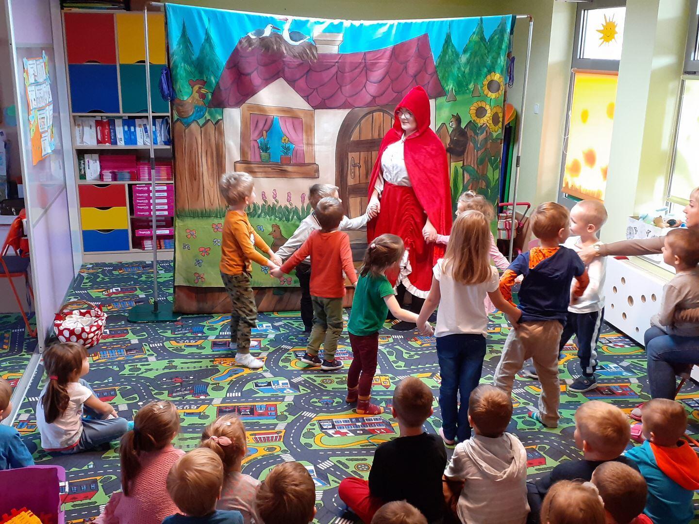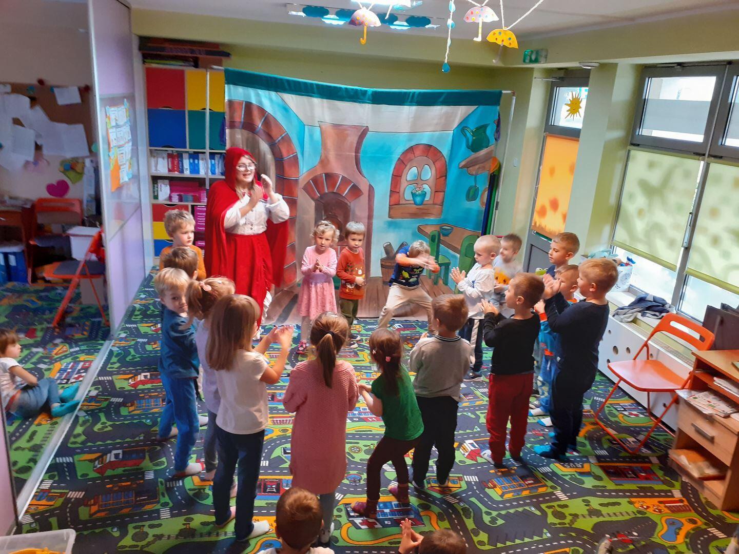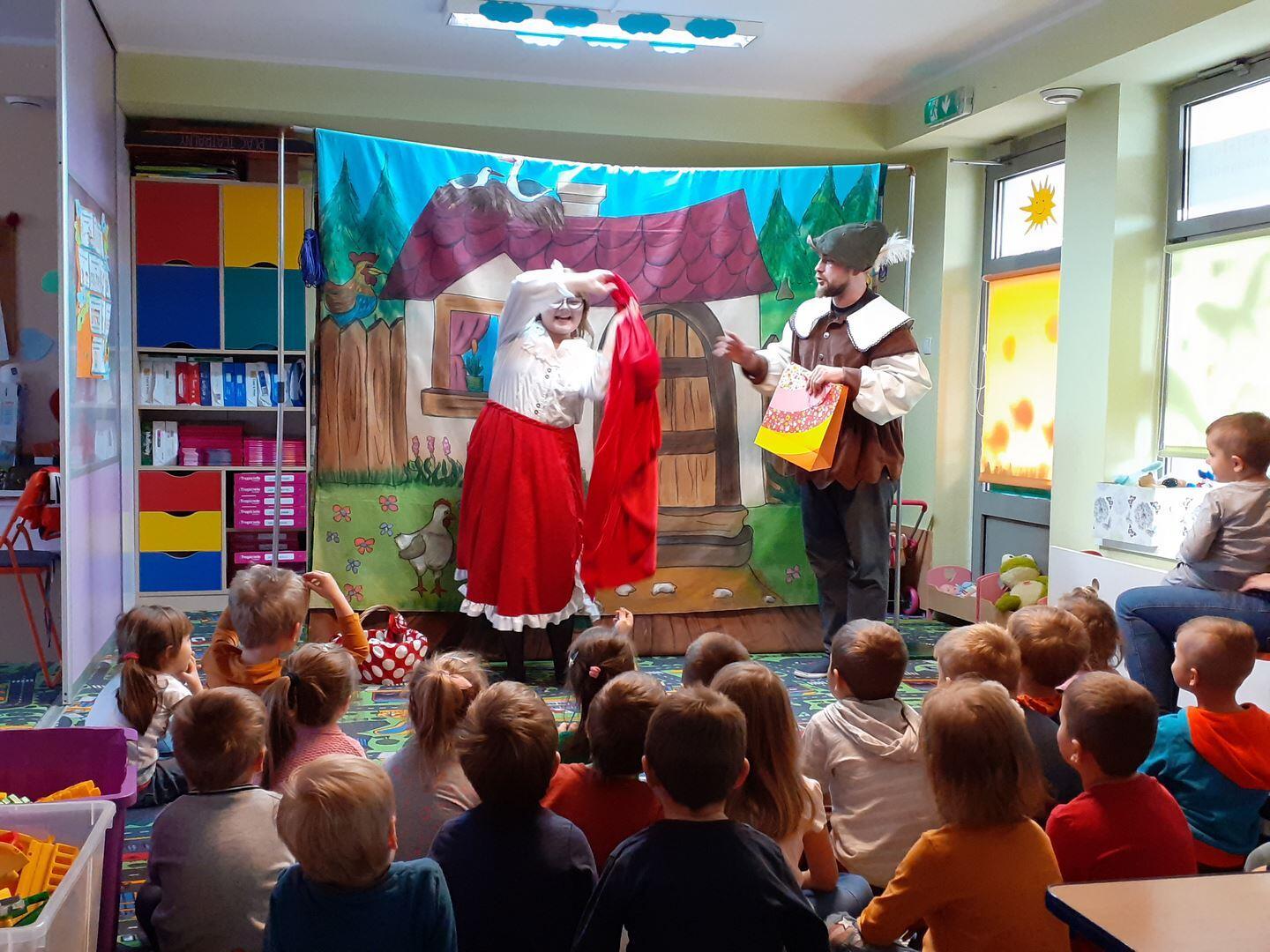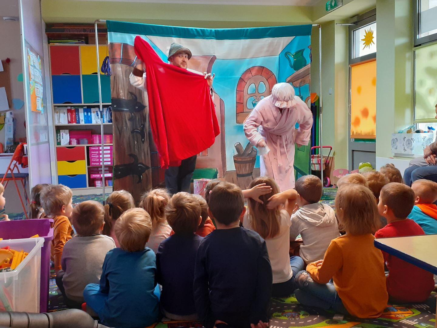1. W naszym przedszkolu mieliśmy okazję ponownie gościć teatr Krak-Art z przedstawieniem pt. "Czerwony Kapturek". Okazuje się, że nie każdy kto podaje się za naszego przyjaciela, tak naprawdę nim jest i może mieć złe zamiary. Dzieciom przestawienie bardzo się podobało.?