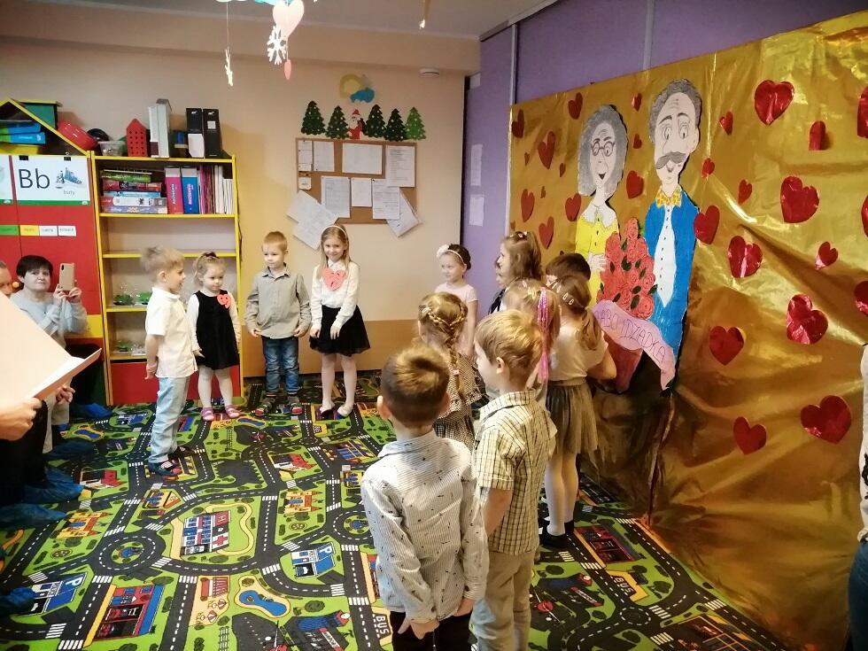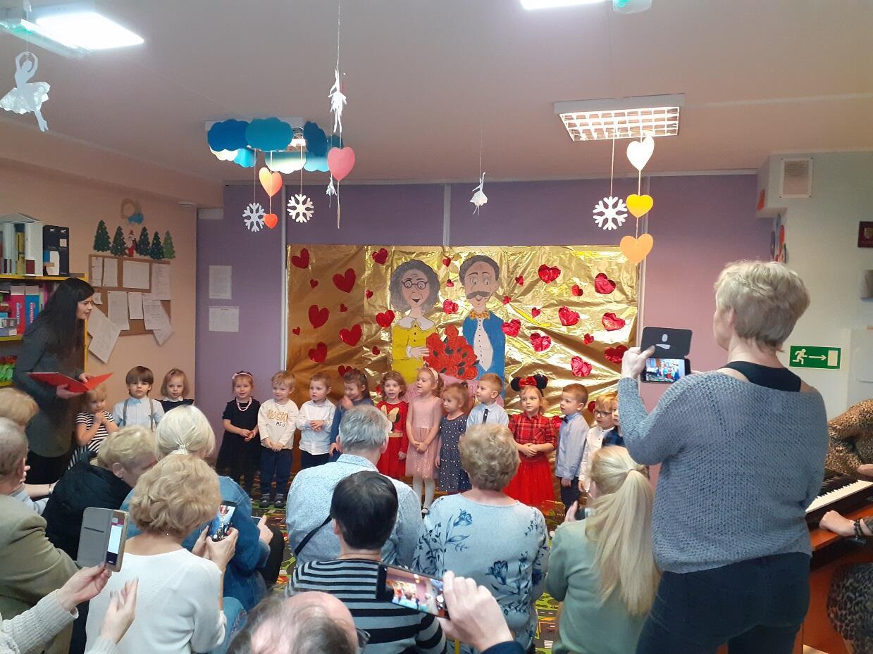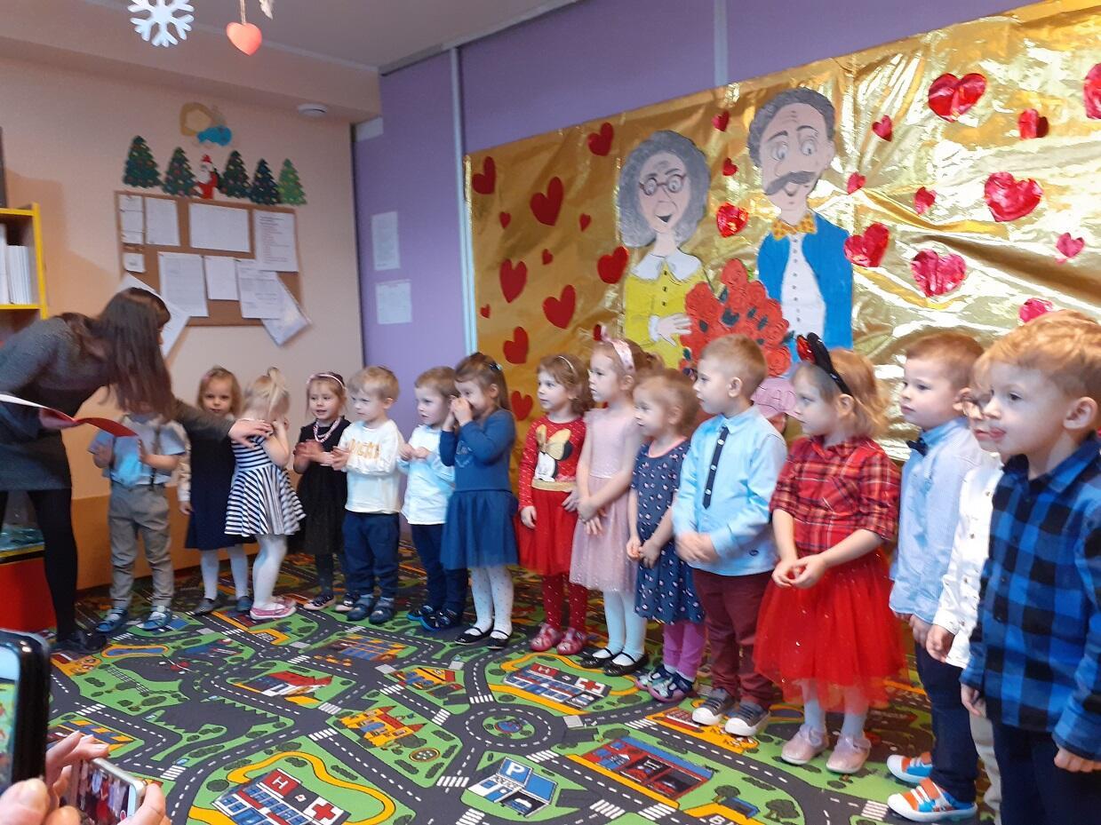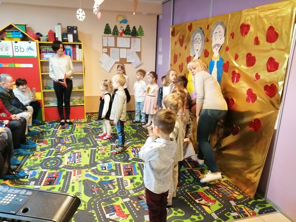 Dnia 6 lutego w naszym przedszkolu odbyło się uroczyste przedstawienie, związane z obchodami Dnia Babci i Dziadka. Dzieci wraz z nauczycielami grup przygotowały dla naszych gości przedstawienie liryczno - muzyczne podczas, którego wręczyły przygotowane prezenty.
