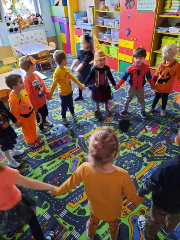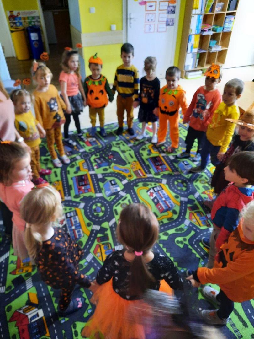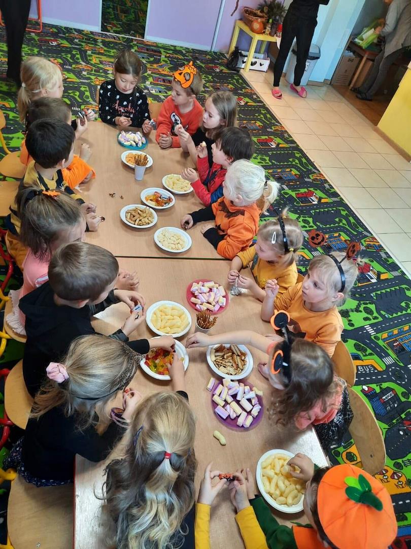 Dzisiaj w naszym przedszkolu królował kolor pomarańczowy."Pokaż dynio, co masz w środku"- dzieci same mogły się przekonać co w środku skrywa dynia oraz stwierdzić ,że nie zawsze musi być koloru pomarańczowego. Wspólne zabawy  i wygłupy sprawiły dzieciom dużo radości.