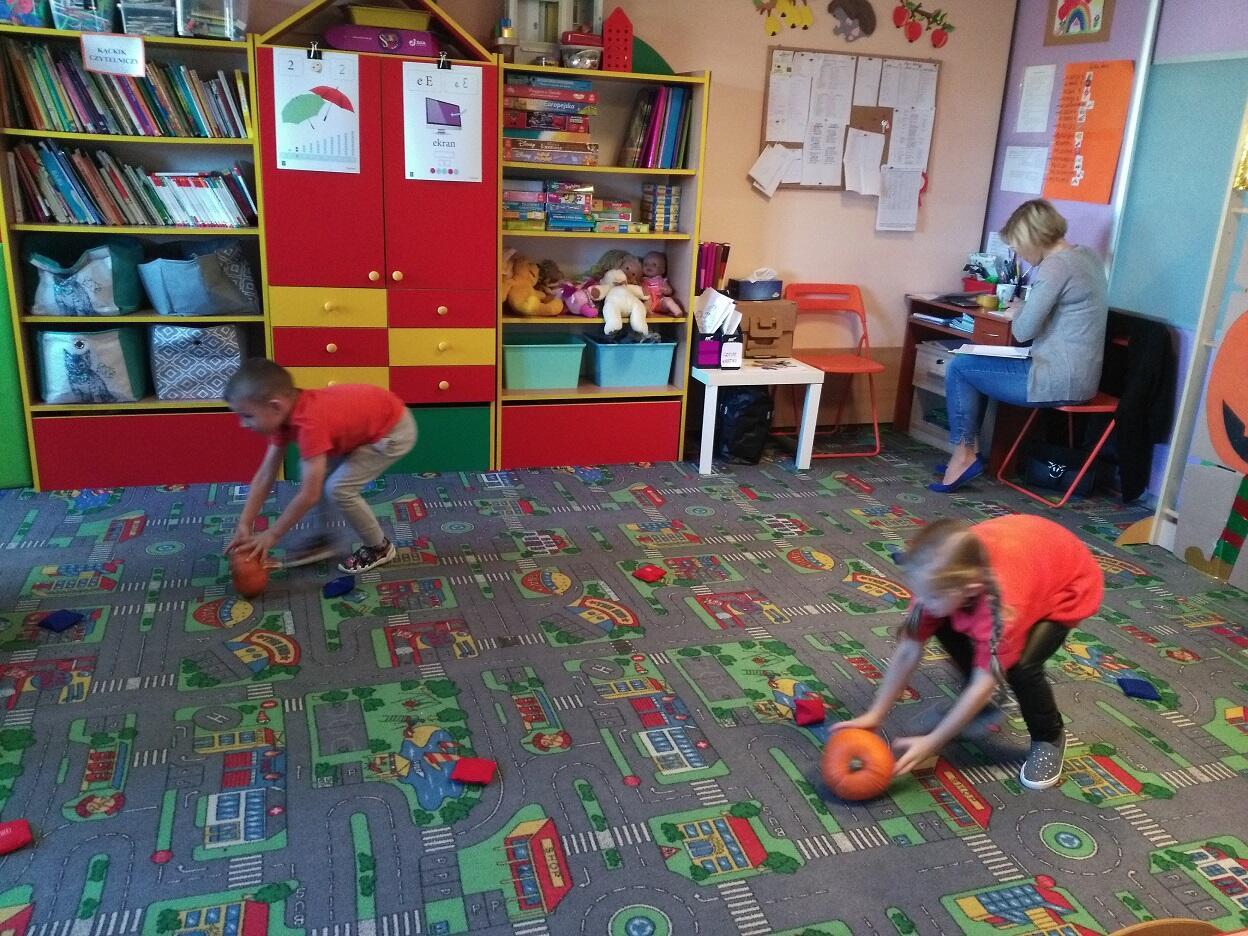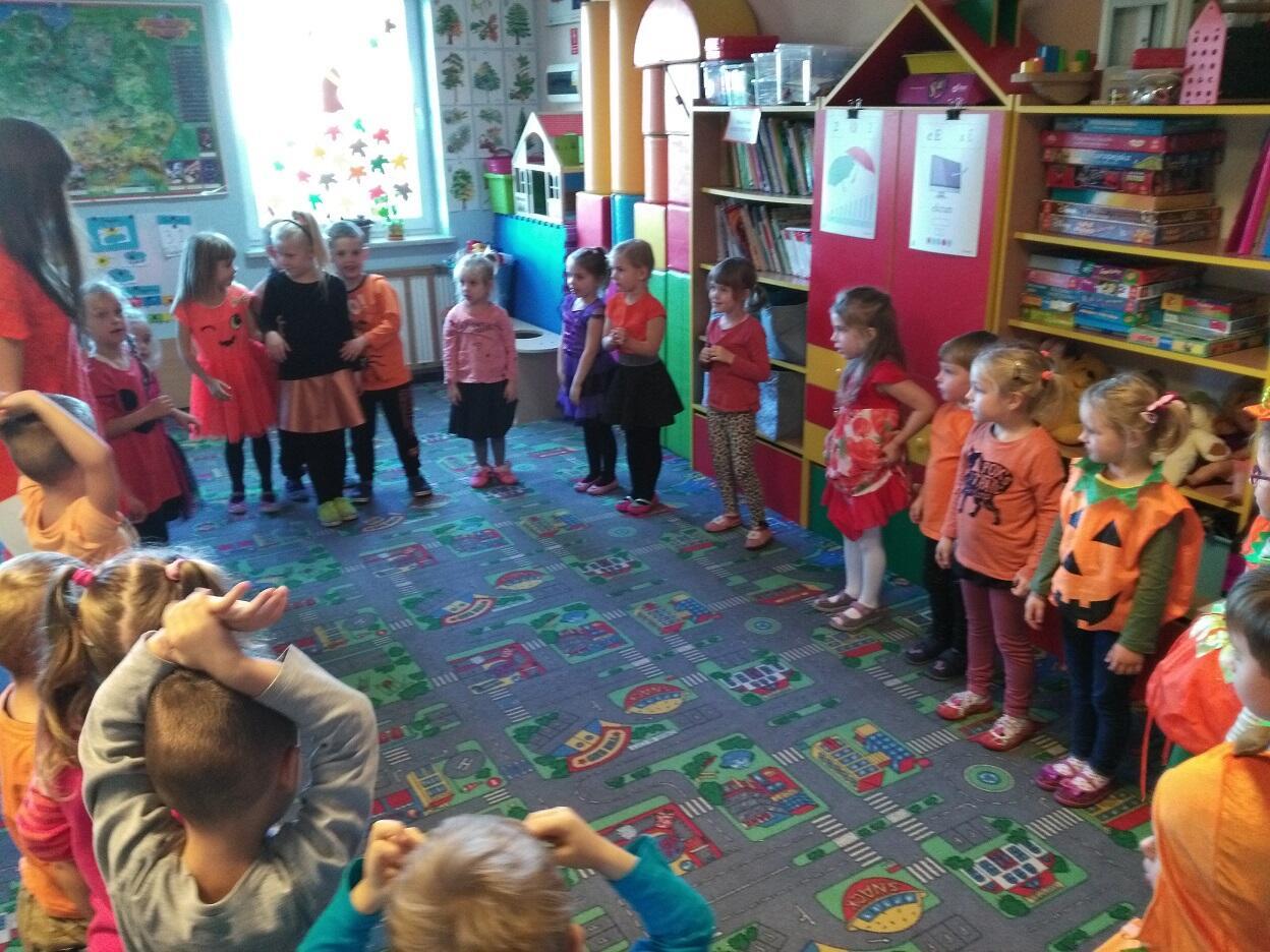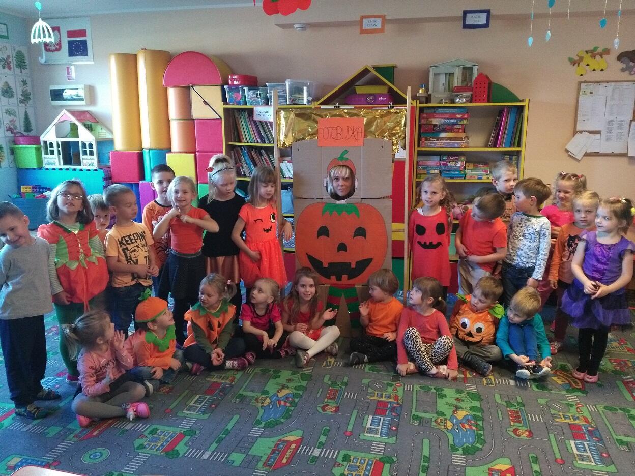 Nauczycielki  grup zapoznały dzieci z ciekawostkami, wyglądem, właściwościami oraz cechami charakterystycznymi różnych rodzajów dyń.  Dzieci uczestniczyły w zorganizowanych przez panie „Dyniowych zawodach”, w których nagrodą był słodki dyniowy poczęstunek. Na zakończenie uroczystości stworzyliśmy „Dyniową Fotobudkę”, w której dzieci mogły zrobić sobie pamiątkowe zdjęcie.   Za zaangażowanie rodziców w przygotowanie dyniowego poczęstunku serdecznie dziękujemy.