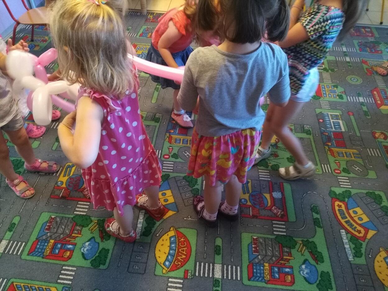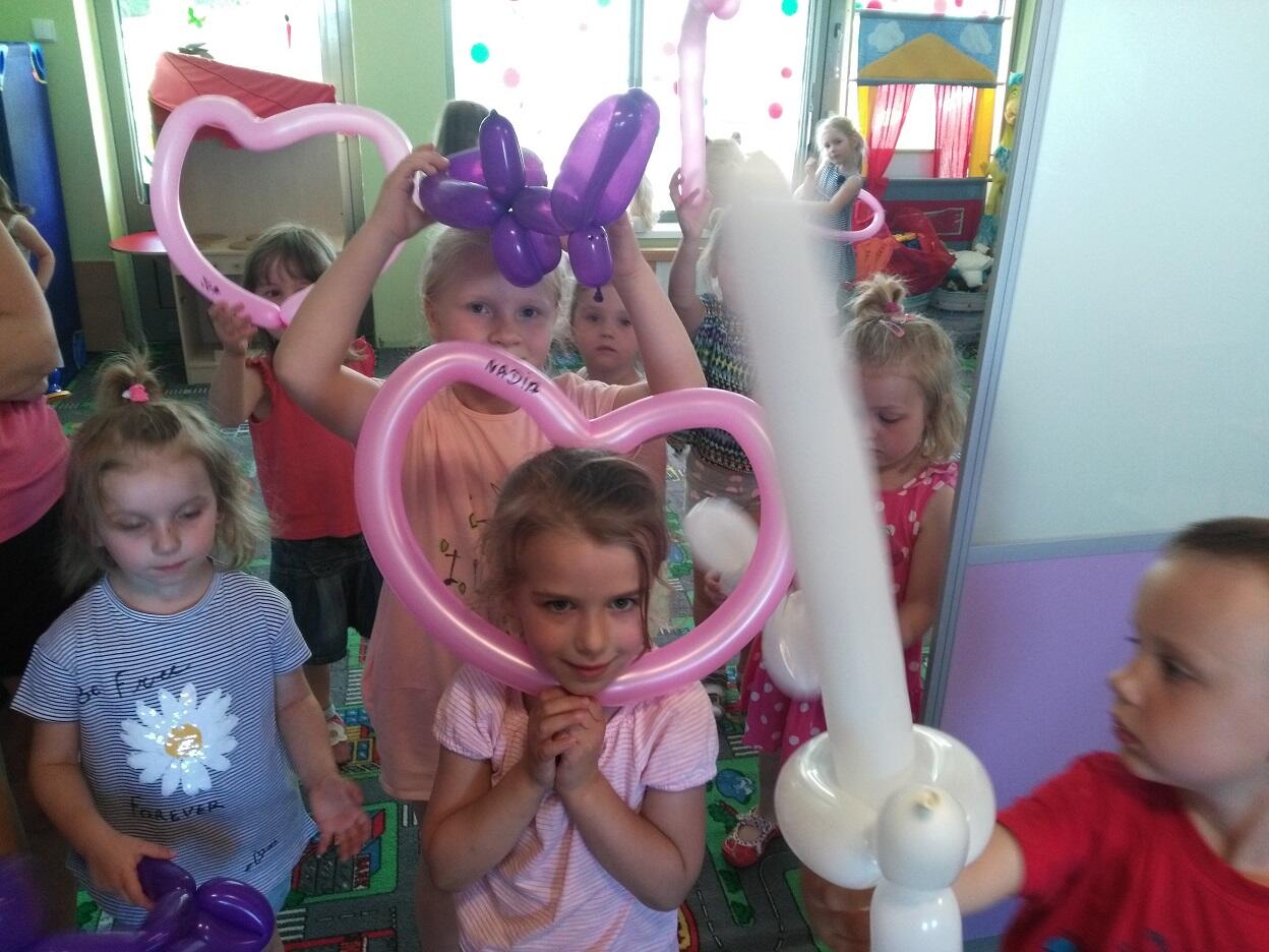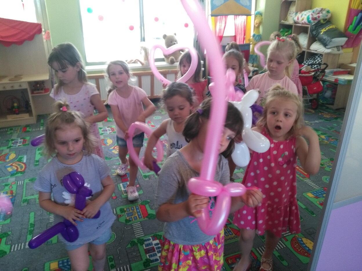Obfitował on również w liczne atrakcje przygotowane przez przemiłą Panią Animator. Dzieci uczestniczyły w zabawach tanecznych, zabawach z kolorowymi kulkami, z chustą animacyjną, brały udział w konkursach oraz dowolnych tańcach przy muzyce, na koniec Pani przygotowała dla dzieci niespodziankę w postaci balonów, z których stworzyła piękne zwierzątka wybrane przez dzieci.