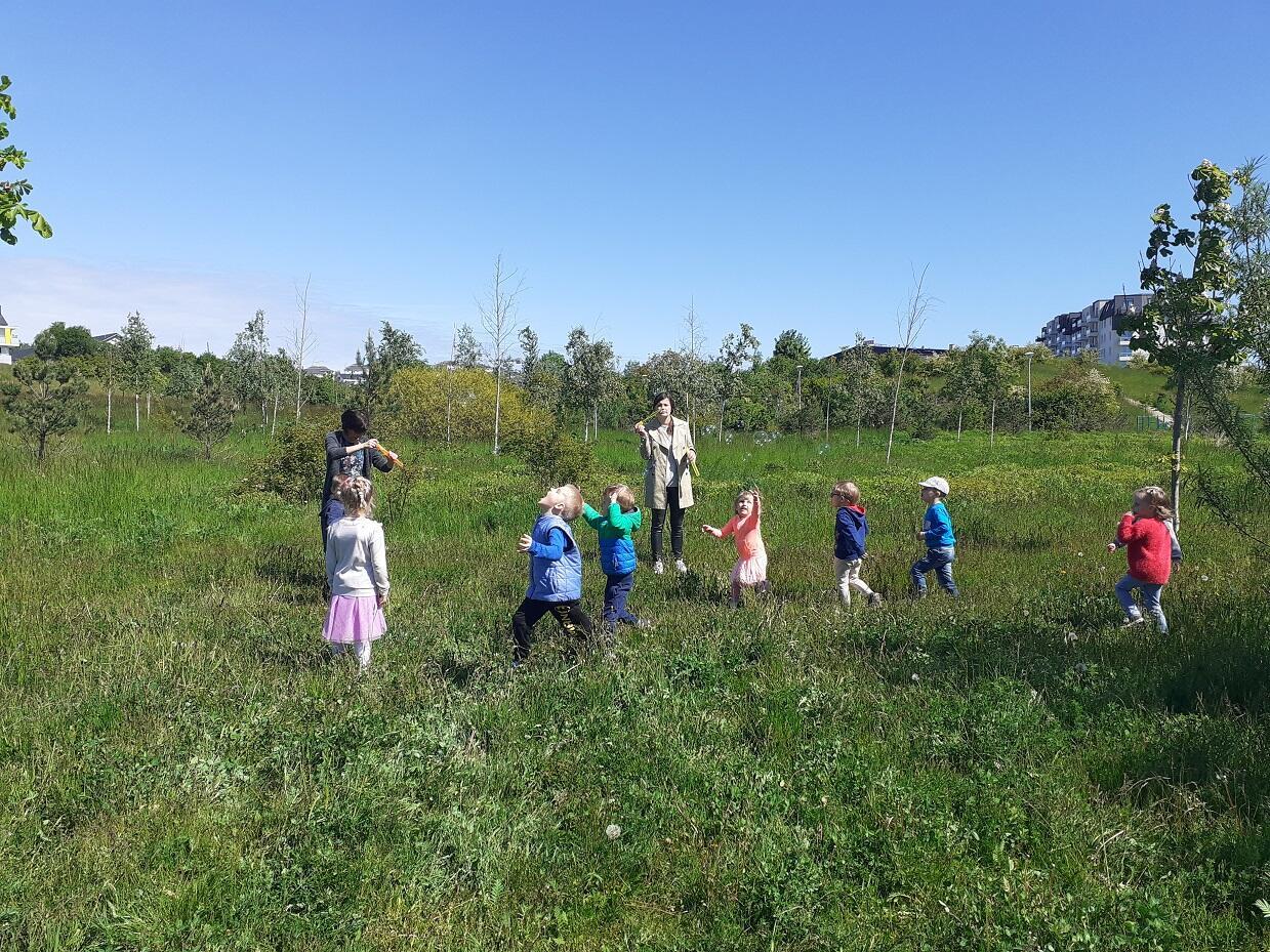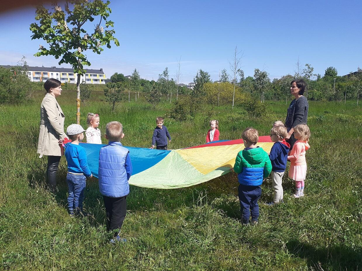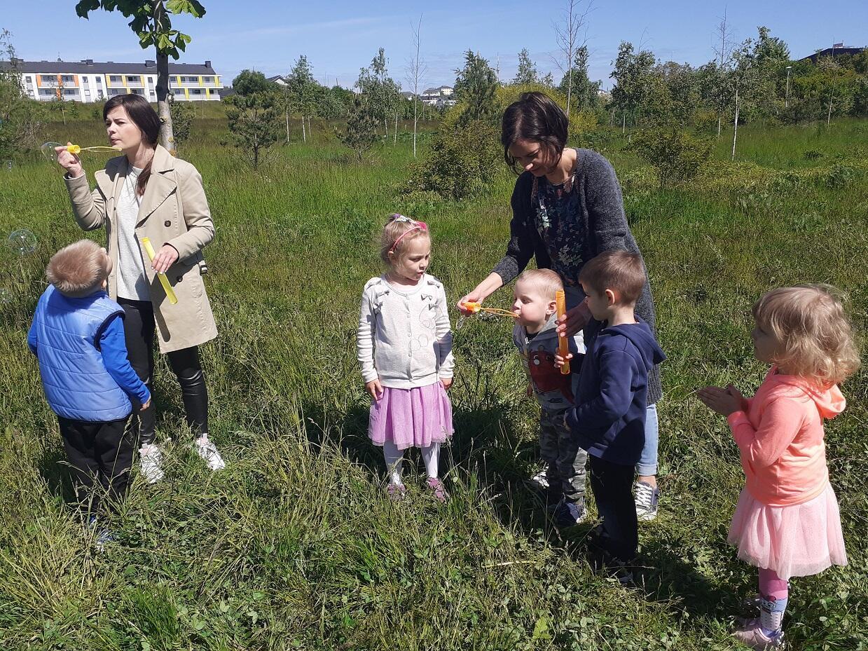 Dnia 1.06.2020 roku w naszym przedszkolu odbył się Dzień Dziecka, dzieci wspólnie ze swoimi Paniami wyruszyły na pierwszy czerwcowy spacer do pobliskiego parku, w którym czekały na nie takie atrakcje jak puszczanie baniek mydlanych, zabawy z chustą animacyjną, czy zabawy w tradycyjne gry ruchowe tj. "Gąski, gąski do domu", "Raz, dwa, trzy baba jaga patrzy". Na zakończenie dnia każde z dzieci otrzymało kolorowy upominek w postaci balona :)