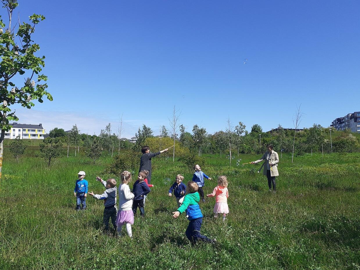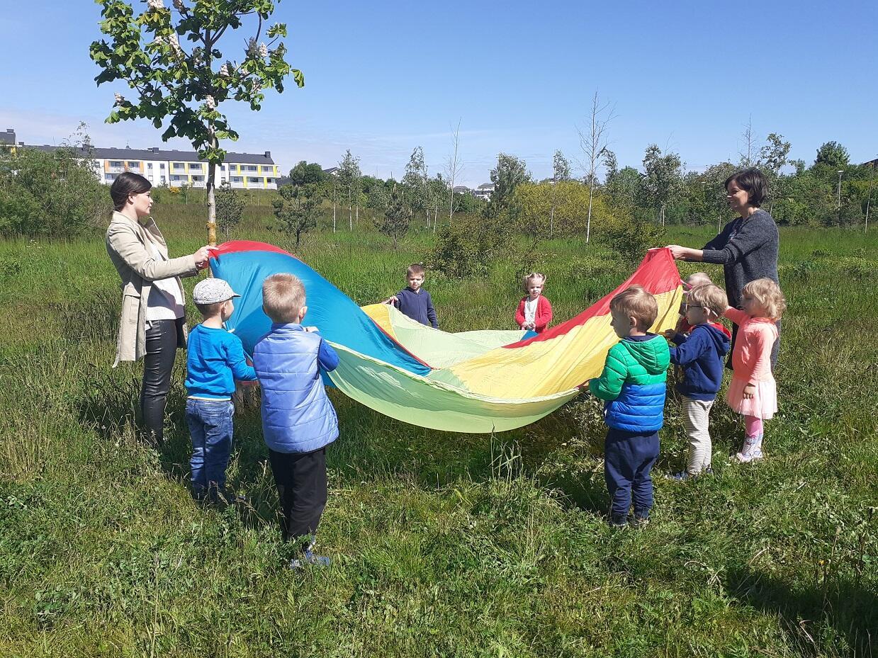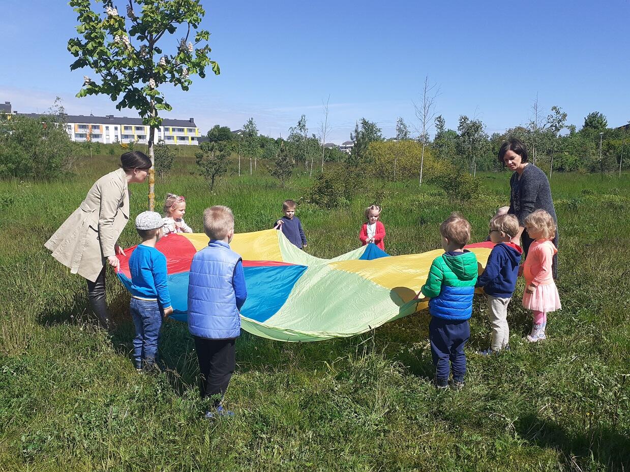 Dnia 1.06.2020 roku w naszym przedszkolu odbył się Dzień Dziecka, dzieci wspólnie ze swoimi Paniami wyruszyły na pierwszy czerwcowy spacer do pobliskiego parku, w którym czekały na nie takie atrakcje jak puszczanie baniek mydlanych, zabawy z chustą animacyjną, czy zabawy w tradycyjne gry ruchowe tj. "Gąski, gąski do domu", "Raz, dwa, trzy baba jaga patrzy". Na zakończenie dnia każde z dzieci otrzymało kolorowy upominek w postaci balona :)