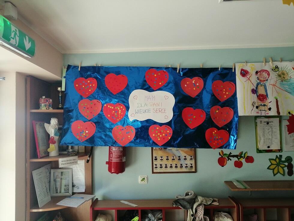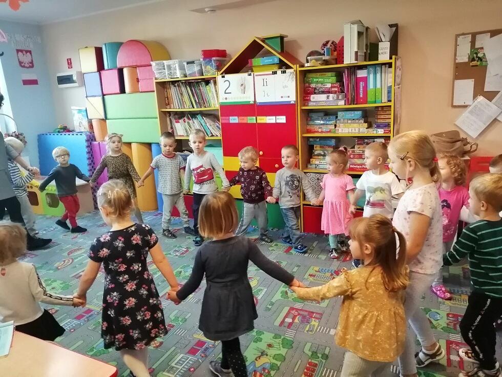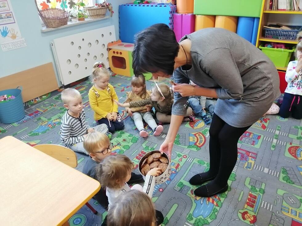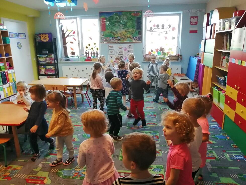 Dnia 14.10.19  w naszym przedszkolu obchodziliśmy Dzień Edukacji Narodowej. Zajęciom towarzyszyła pogadanka na temat powstania oraz obchodów święta. Dzieci zaśpiewały swoim wychowawcom uroczyste STO LAT oraz wspólnie z Paniami odśpiewały piosenkę pt. "Nasza Pani". Wykonały piękne portrety nauczycieli oraz pracowników przedszkola a także wykonały laurki w postaci ozdobionych serduszek. Zakończenie uroczystości umilił nam słodki poczęstunek.