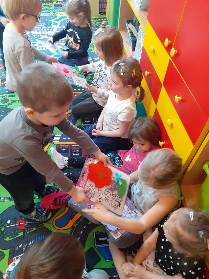 Dnia 9.03.2020 roku w naszym przedszkolu obchodziliśmy Dzień Kobiet. To wyjątkowy dzień w roku. Wtedy swoje święto obchodzą wszystkie kobiety, zarówno te duże, jak i te małe.  W tym szczególnym dniu wszyscy chłopcy składali życzenia dziewczynkom i swoim paniom. Nie obyło się bez drobnych upominków i własnoręcznie wykonanych kwiatów. Z dziewczęcych buź uśmiech nie schodził przez calutki dzień, a chłopcy zachowywali się jak prawdziwi gentelmani, byli przemili, uczynni i sympatyczni :) Ten wspaniały dzień umilił nam słodki poczęstunek w postaci gofrów, któe wykonała jedna z mam naszego przedszkolaka. Za zaangażowanie w przygotowaniue upominków i poczęstunku serdecznie dziękujemy.