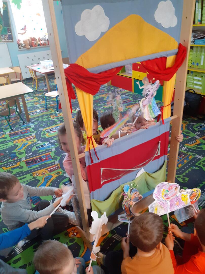 Każdy z nas miał w życiu ulubioną bajkę lub postać. Dziś te postaci miały swoje święto w naszym przedszkolu. Dzieci miały okazję pobawić się w teatr przy użyciu sylwetek ulubionych bohaterów z bajek, które zostały ozdobione według pomysłu dzieci.