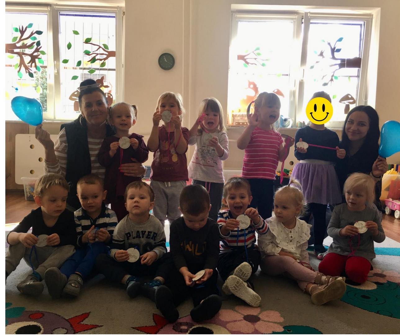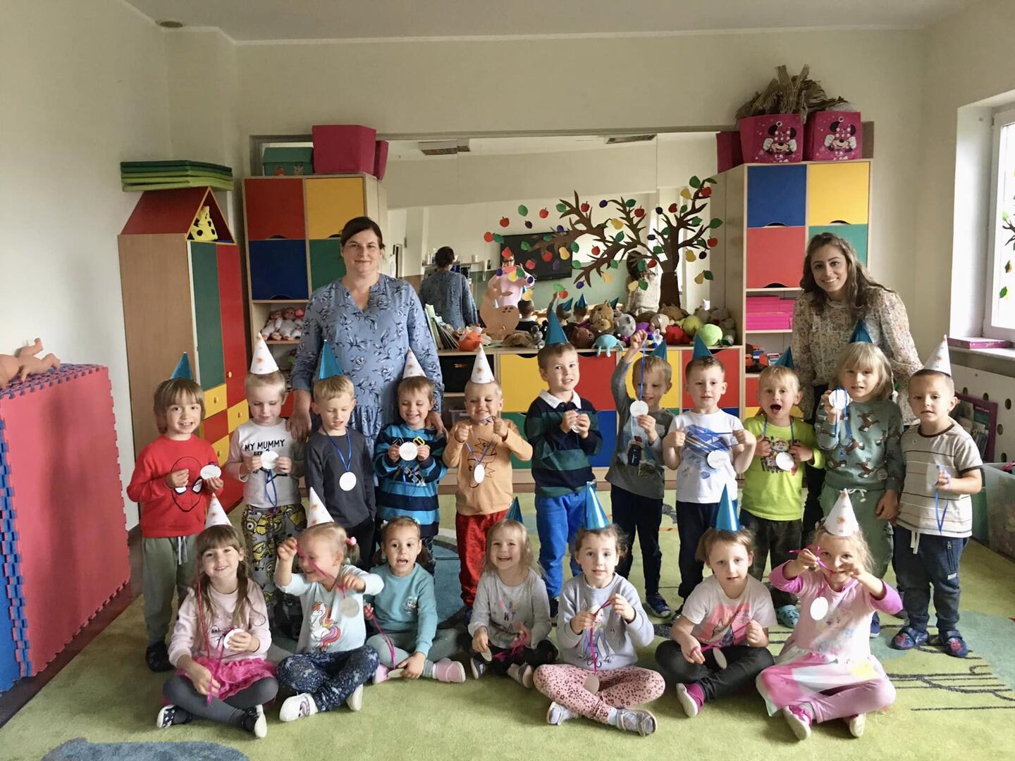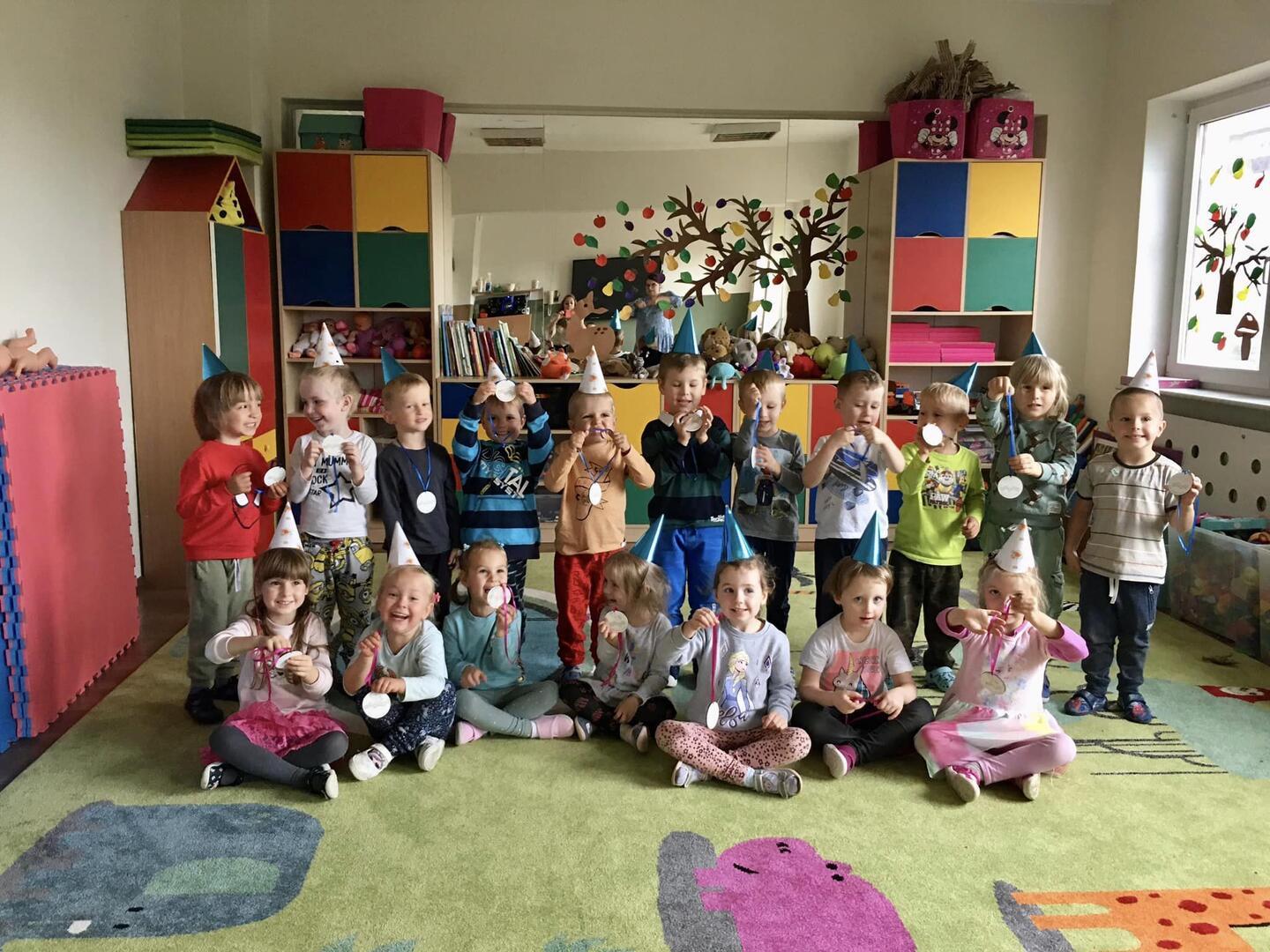 Dnia 20 września obchodziliśmy w naszym przedszkolu Dzień Przedszkolaka. Nasi podopieczni dumnie i z uśmiechem na twarzy zaśpiewali piosenkę ,,Jestem sobie przedszkolaczek”, otrzymali medale przedszkolaka i świętowali swój dzień jedząc ulubione smakołyki przy stoliczkach. ??? Zapytane o to dlaczego fajnie jest być przedszkolakiem, dzieci odpowiedziały: „bo można chodzić do przedszkola, mieć dużo zabawek, kolegów i koleżanek i super się bawić ”. Całkowicie się z tym zgadzamy!?????