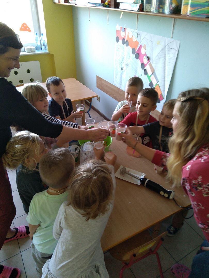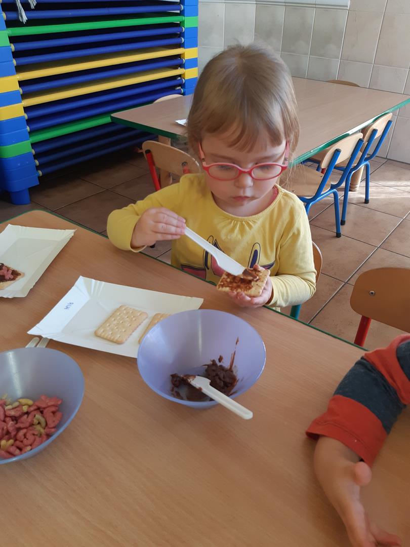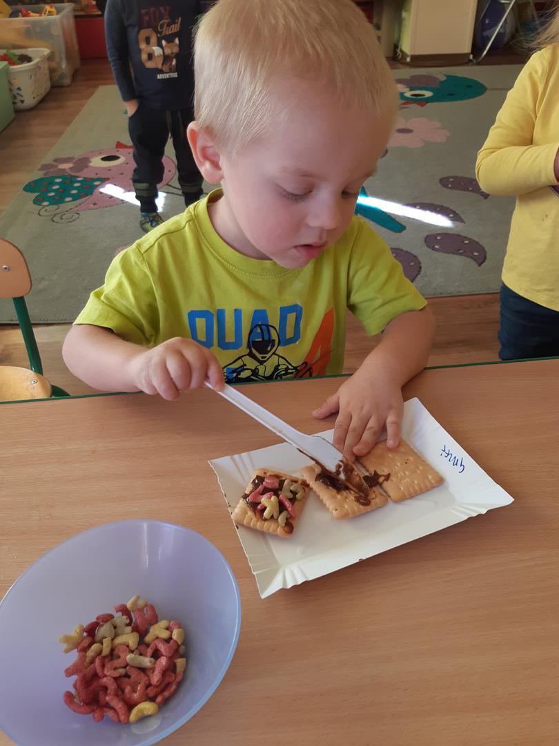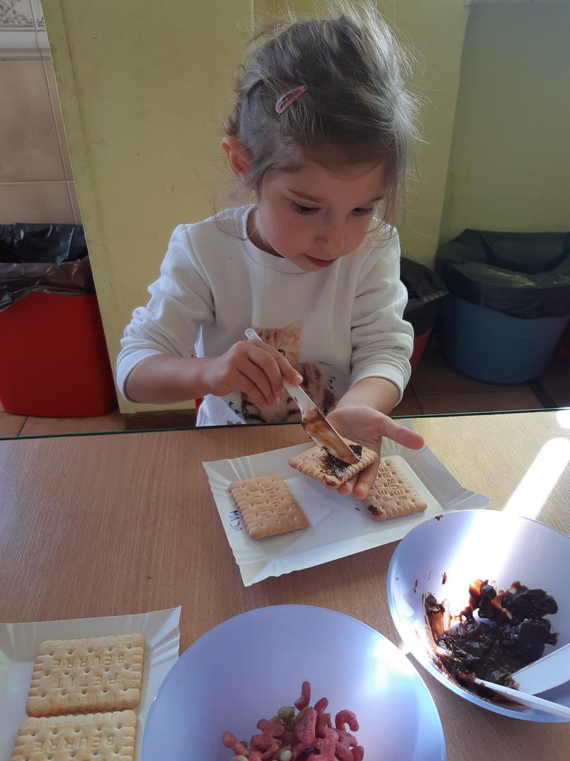 Święto przedszkolaka w naszym przedszkolu przebiegło bardzo smakowicie. Każda z grup zorganizowała warsztaty kulinarne, podczas których przygotowywała pyszne smakołyki nie tylko dla siebie, ale również dla kolegów i koleżanek z innych grup. Motylki wykonały dla nas smakowite ciasteczka ozdobione czekoladą, żółwiki postanowiły zrobić koktajl witaminowy, a tuptusie uraczyły nas owocowymi szaszłykami. Oczywiście odśpiewaliśmy symboliczne sto lat. Zapraszamy do galerii zdjęć.