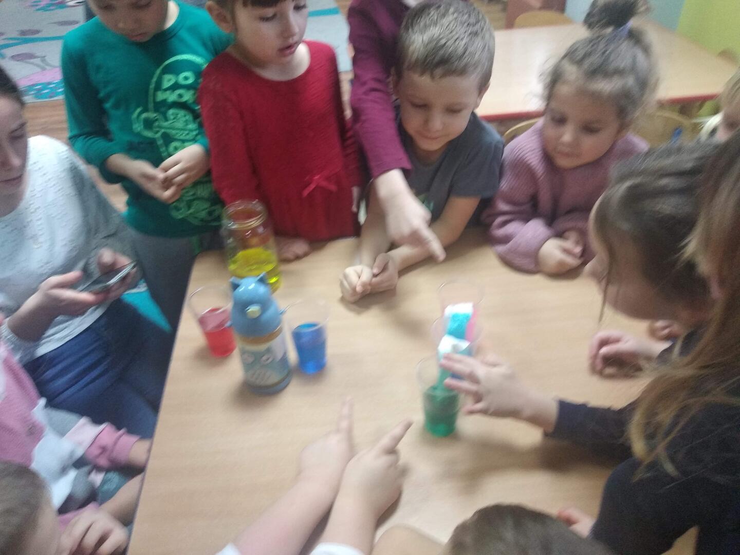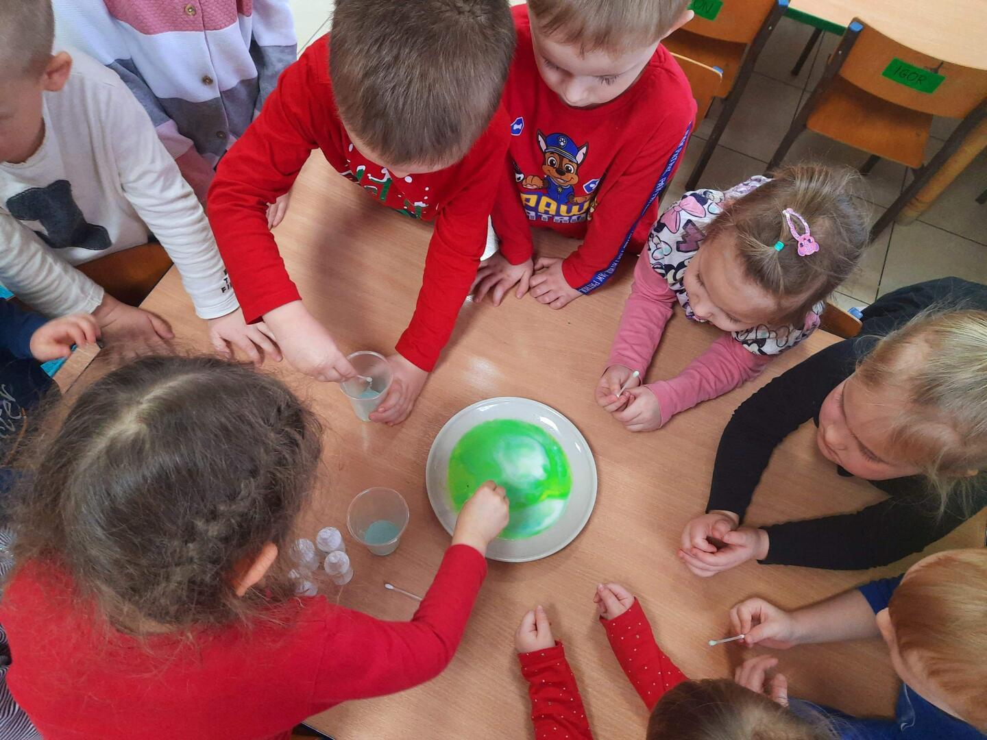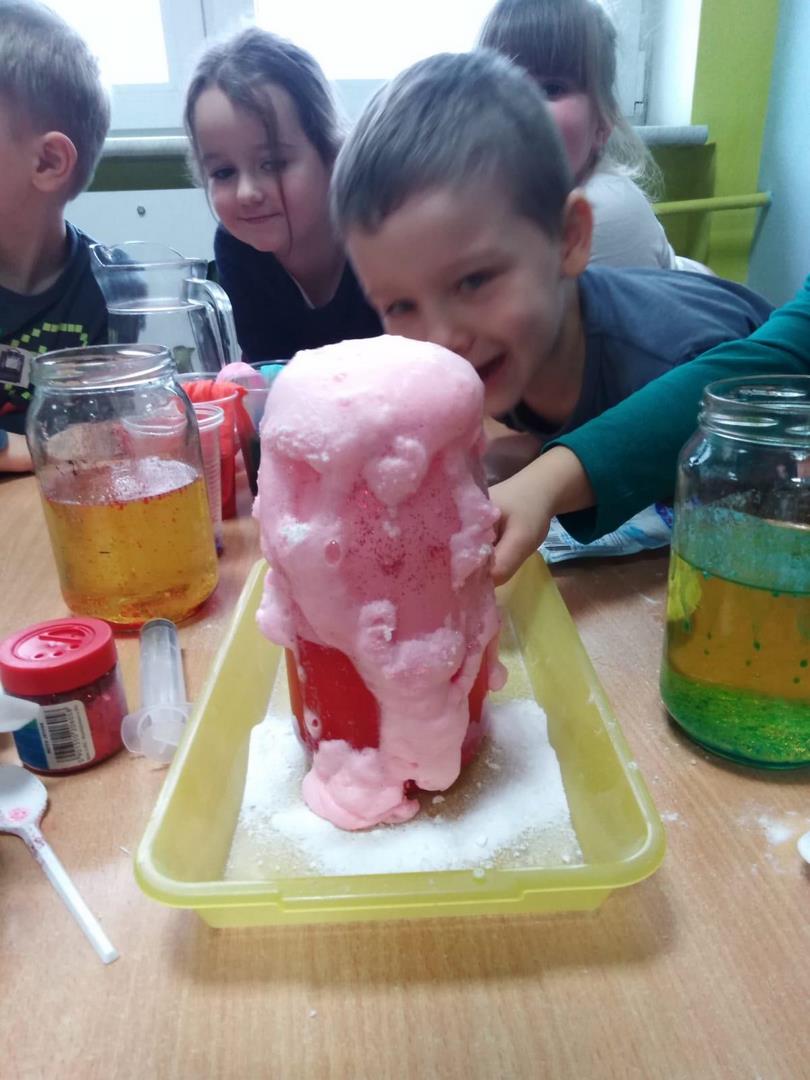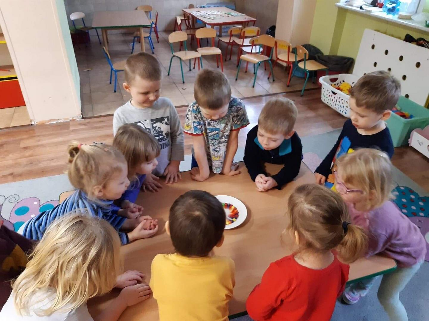 W piątek pożegnaliśmy tydzień poświęcony eksperymentom. Tego dnia dzieci bawiły się kolorami. Wspólnie z Paniami rysowały w mleku, tworzyły tęczę z kolorowych cukierków, barwiły papier, mieszały kolory tworząc nowe a nawet udało im się zrobić wulkan. W tym tygodniu nie tylko dobrze się bawiliśmy, mieliśmy też okazję zaobserwować wiele ciekawych zjawisk. Ciekawe co czeka nas od poniedziałku? :)