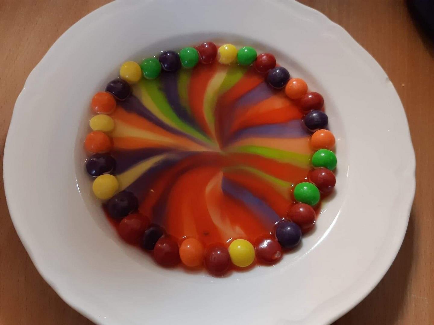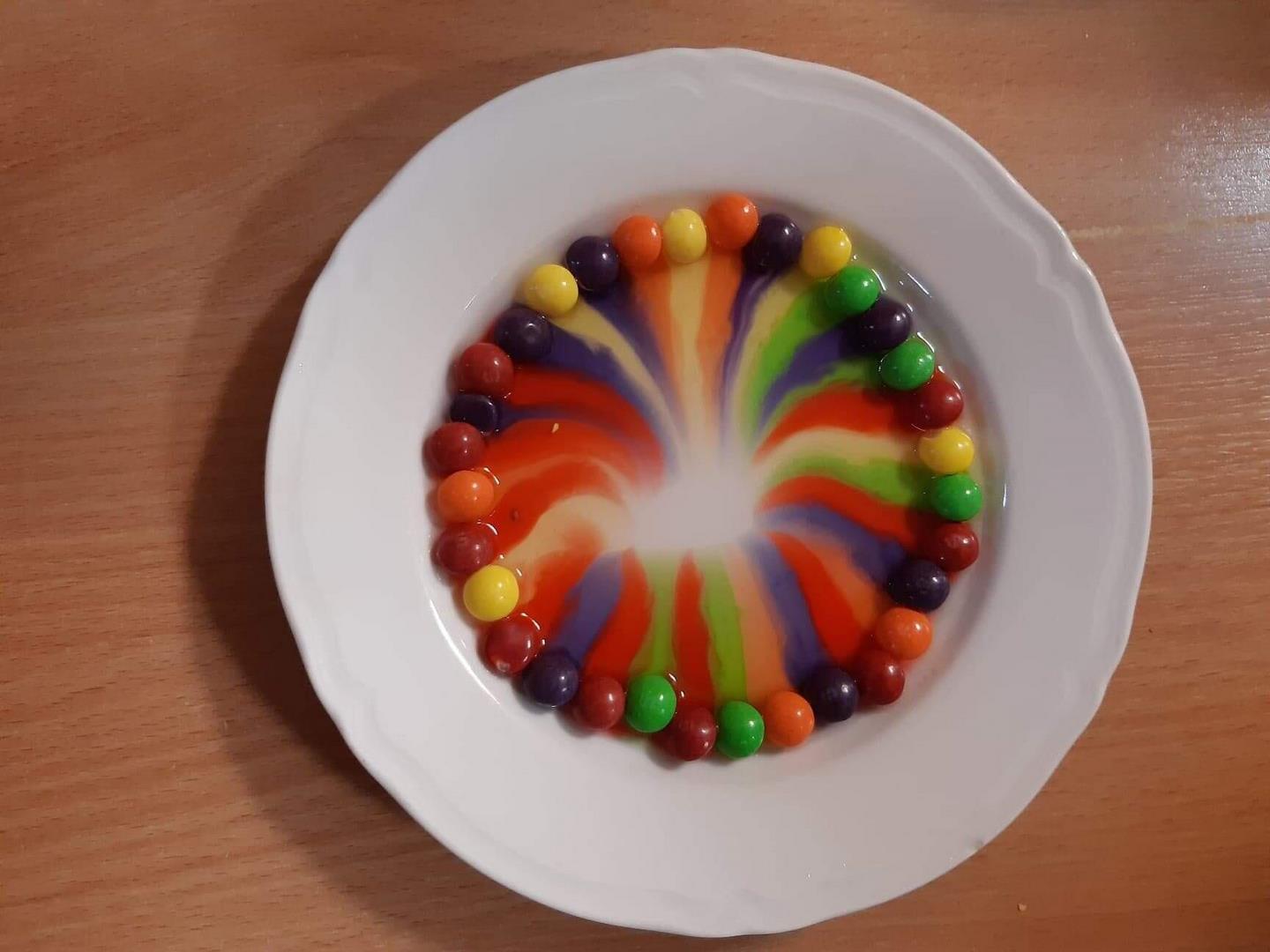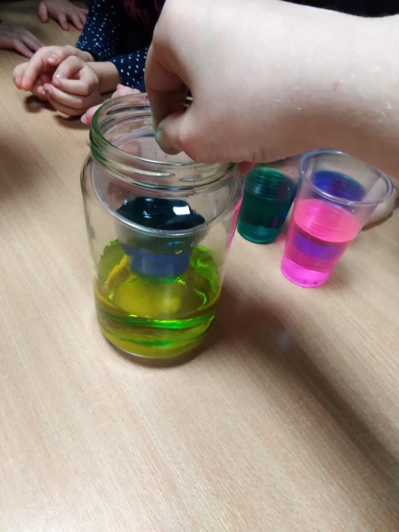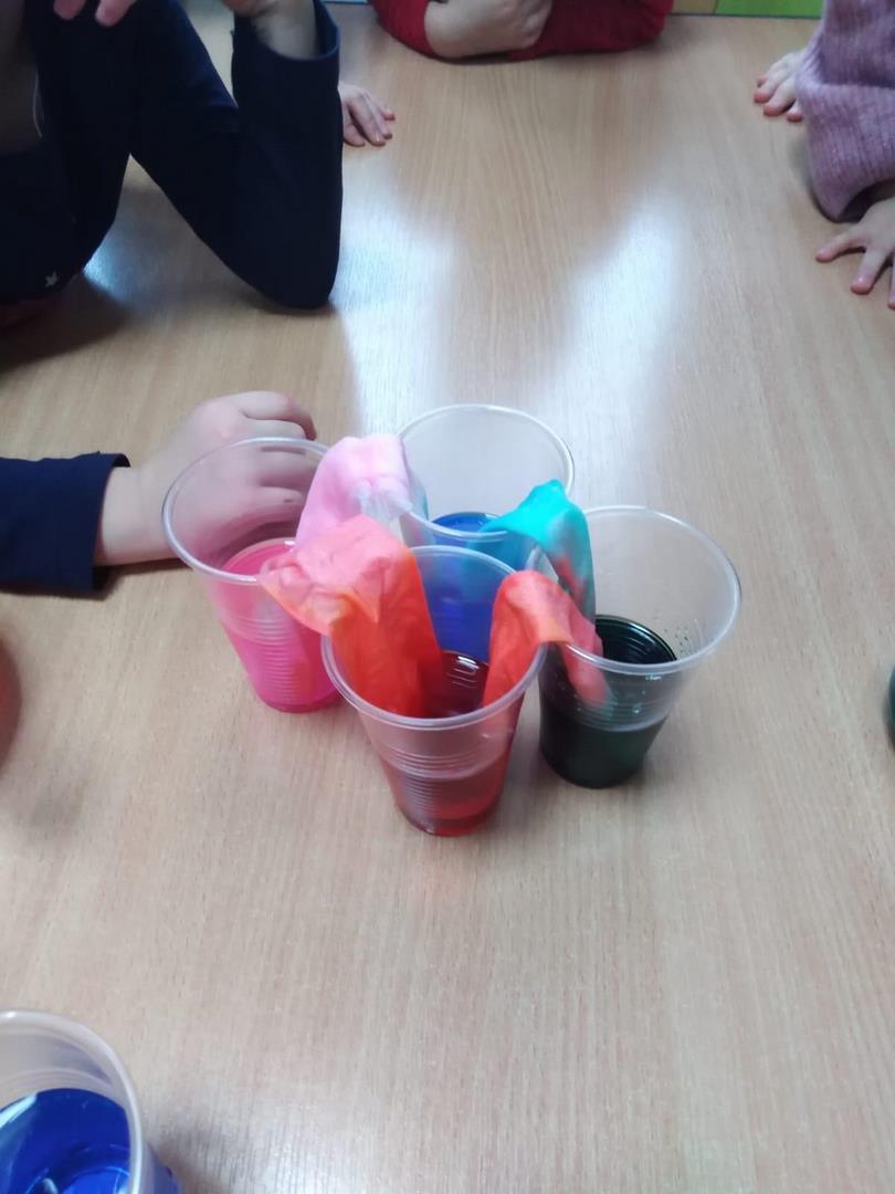 W piątek pożegnaliśmy tydzień poświęcony eksperymentom. Tego dnia dzieci bawiły się kolorami. Wspólnie z Paniami rysowały w mleku, tworzyły tęczę z kolorowych cukierków, barwiły papier, mieszały kolory tworząc nowe a nawet udało im się zrobić wulkan. W tym tygodniu nie tylko dobrze się bawiliśmy, mieliśmy też okazję zaobserwować wiele ciekawych zjawisk. Ciekawe co czeka nas od poniedziałku? :)