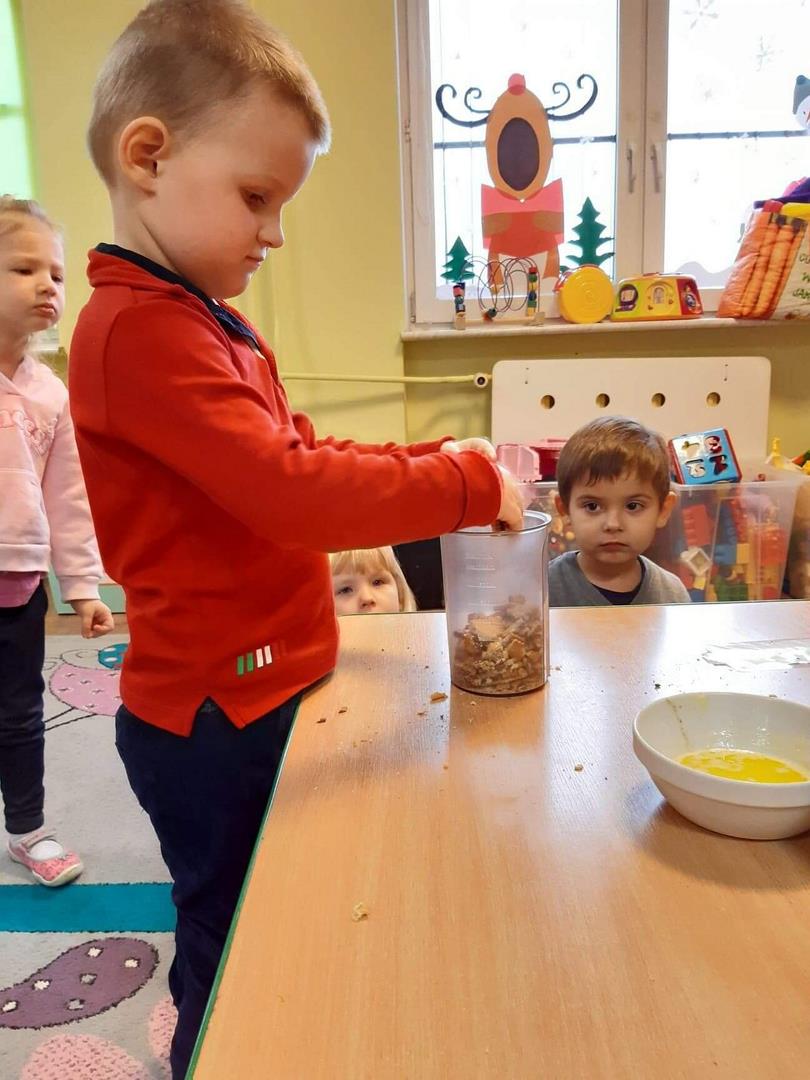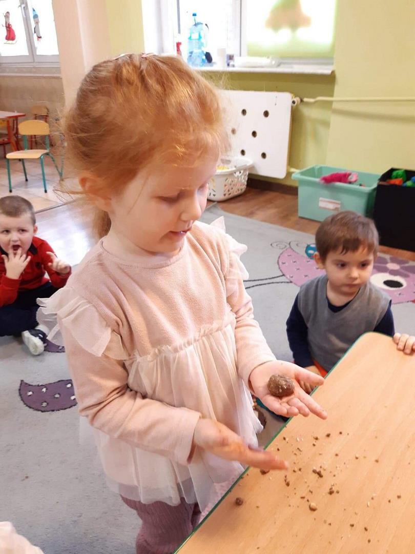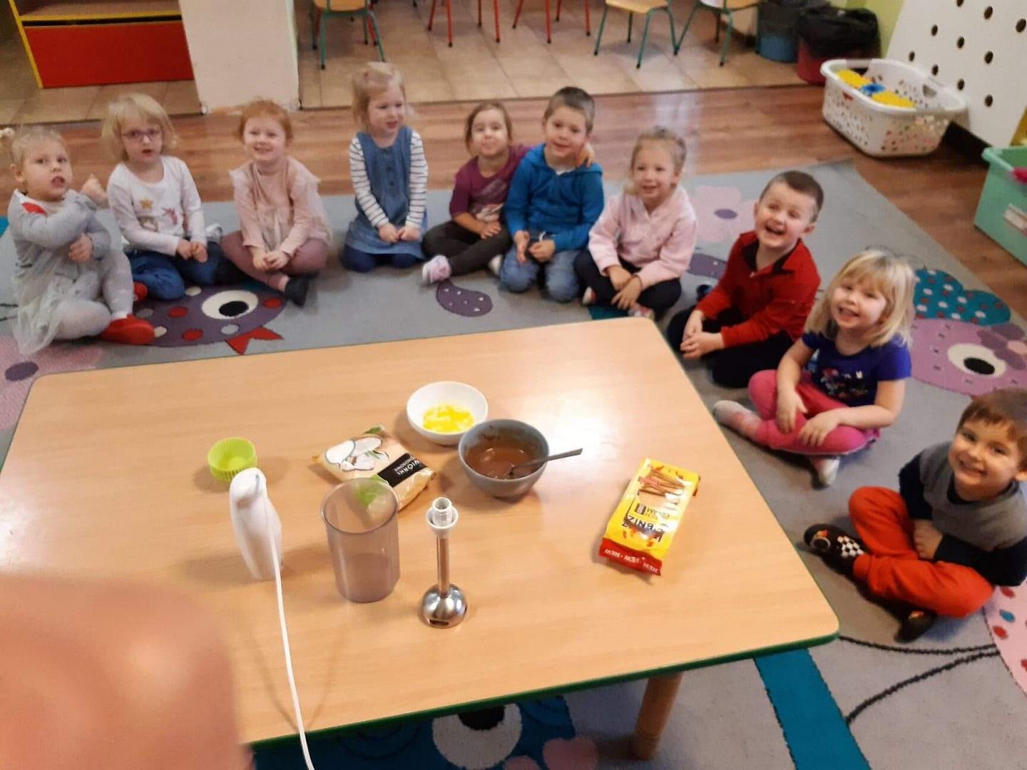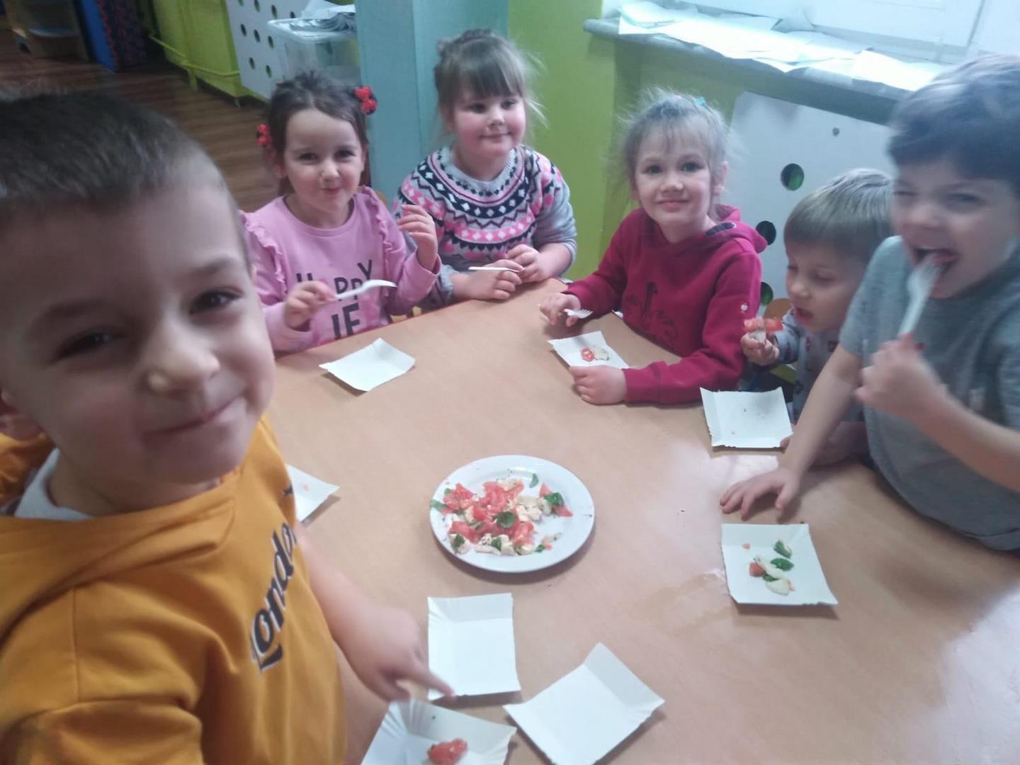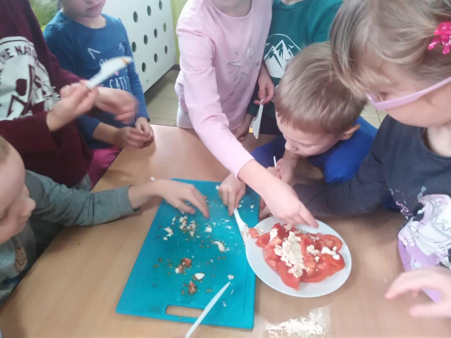 W tym tygodniu zaczynamy trochę inaczej, będzie bardzo smacznie :) Dzieci bardzo chętnie pomagają w przygotowywaniu posiłków. Dziś maluchy zrobiły słodkie czekoladowe kulki, średniaki własnoręcznie przyrządziły ciasteczka z dżemem i kolorową posypką a starszaki przeniosły się w świat kuchni włoskiej, gdzie razem z Panią Kasią przygotowali sałatkę z mozarelli, pomidorów i świeżej bazylii.