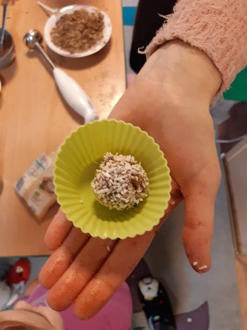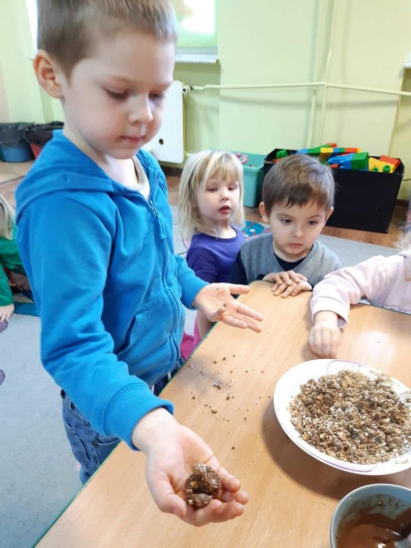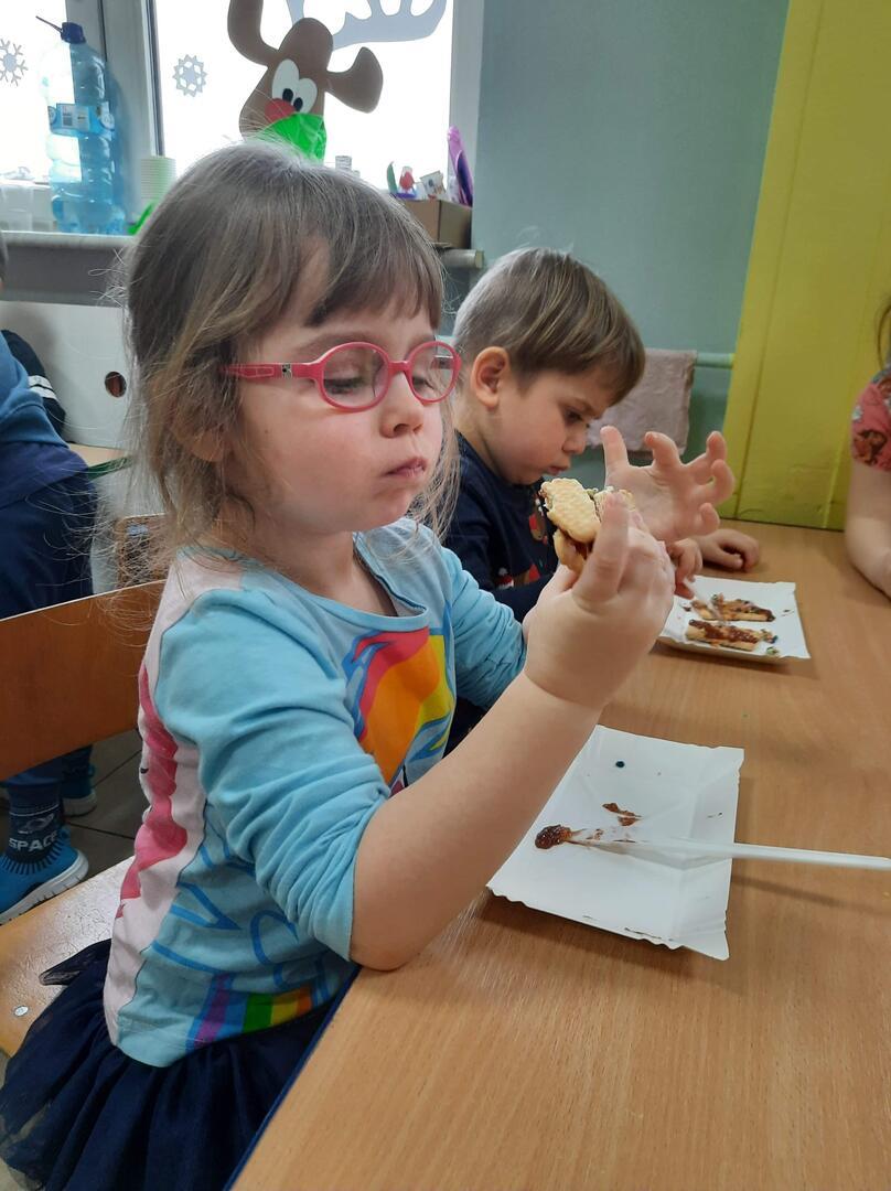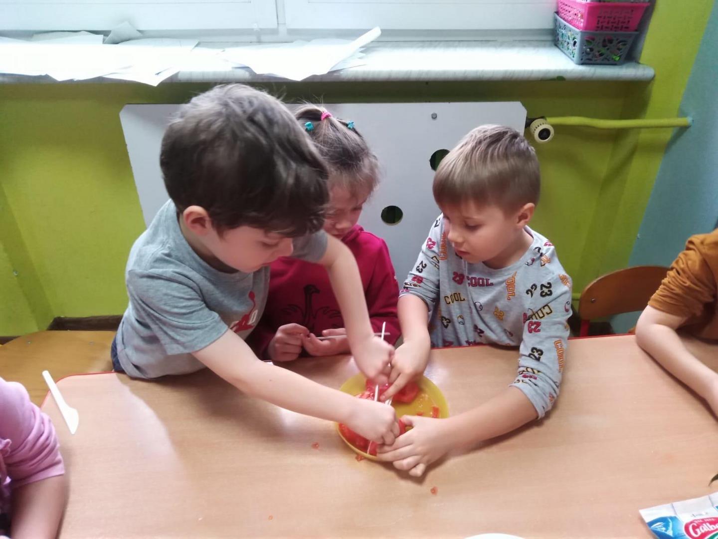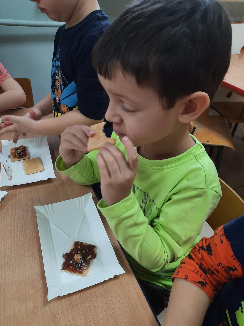 W tym tygodniu zaczynamy trochę inaczej, będzie bardzo smacznie :) Dzieci bardzo chętnie pomagają w przygotowywaniu posiłków. Dziś maluchy zrobiły słodkie czekoladowe kulki, średniaki własnoręcznie przyrządziły ciasteczka z dżemem i kolorową posypką a starszaki przeniosły się w świat kuchni włoskiej, gdzie razem z Panią Kasią przygotowali sałatkę z mozarelli, pomidorów i świeżej bazylii.