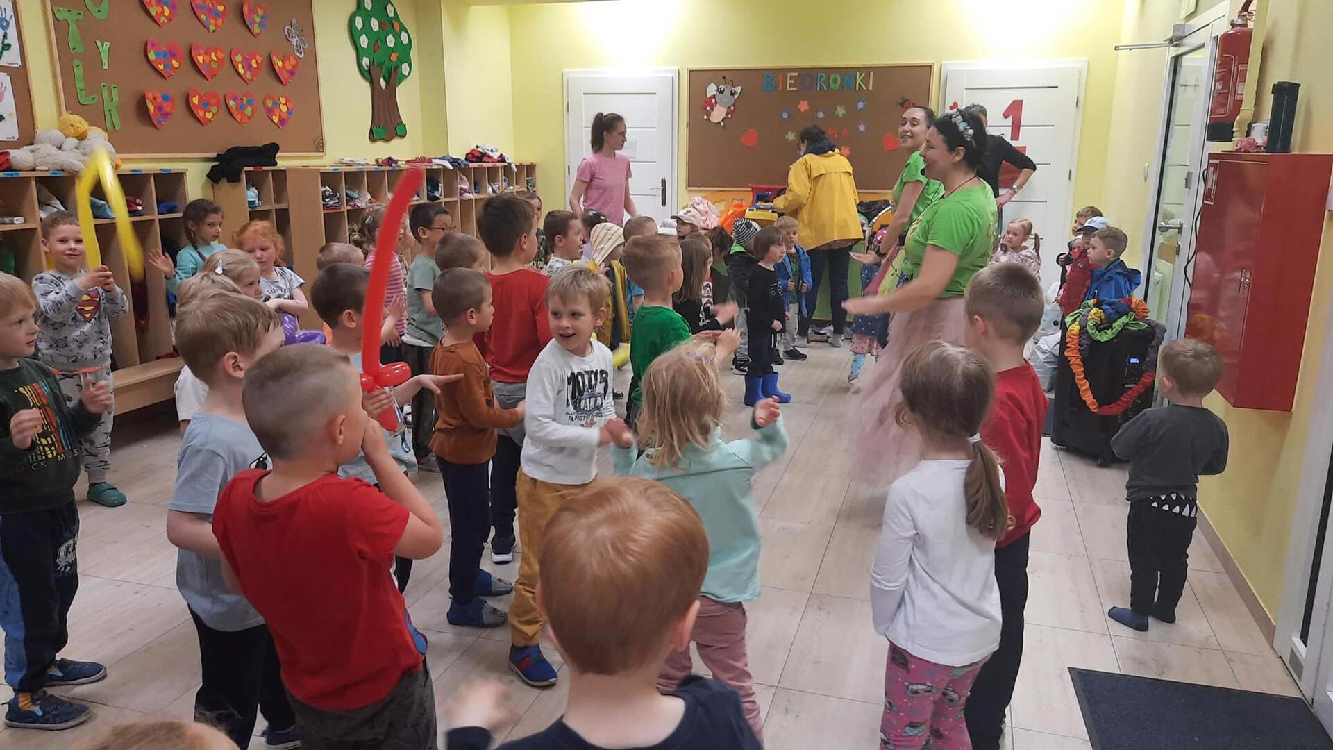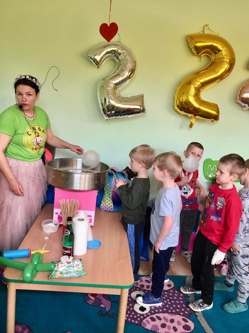 Mimo, iż w dniu kiedy organizowany był festyn z okazji Dnia Dziecka pogoda nie dopisała, deszcz nie popsuł nam planów. ?☀️ Naszą imprezę przenieśliśmy do żłobka, a w tym znakomitym miejscu było już tylko lepiej. ??? Na dzieci czekało wiele wspaniałych atrakcji. ❤️ Serce skradła wata cukrowa, dmuchany domek i taneczne szaleństwa. ?? Animatorki szybciutko zaprosiły wszystkie dzieci do tańca, pokazały ruchy do naśladowania i chwilę później całą salę porwał wir taneczny.??? Nie zabrakło też ciekawych gier i zabaw z chustą animacyjną i piłeczkami, a także wyrabianych baloników zgodnie z życzeniem podopiecznych.? Dzieciom towarzyszyła nie tylko radość, ale też niesamowita energia, która integrowała całą salę. Końcowymi atrakcjami były dla dzieci taniec i sesja z ich ulubioną bajkową postacią Psiego Patrolu - Chasem, którego dzieci przywitały z ogromną fascynacją i zadowoleniem na twarzy. ?? Cieszymy się, że mimo pogodowych niespodzianek udało nam się zapewnić dzieciom wiele zabaw i cudownych przeżyć. ???