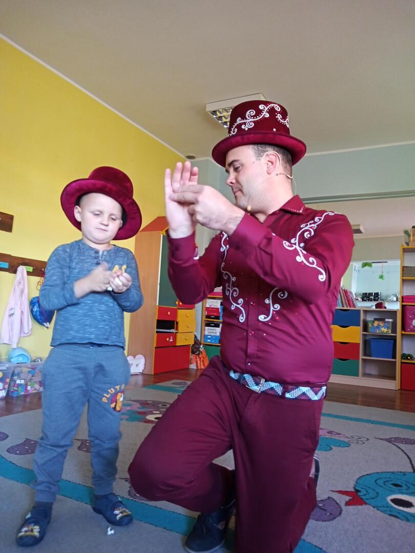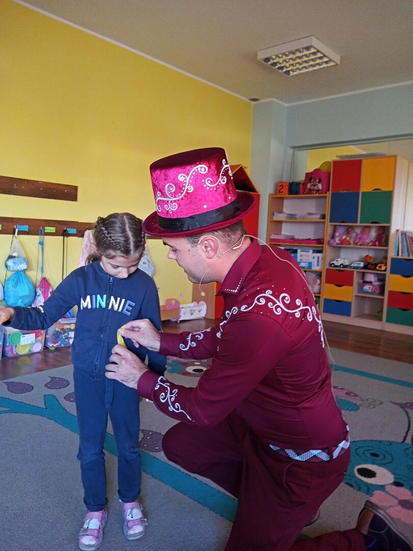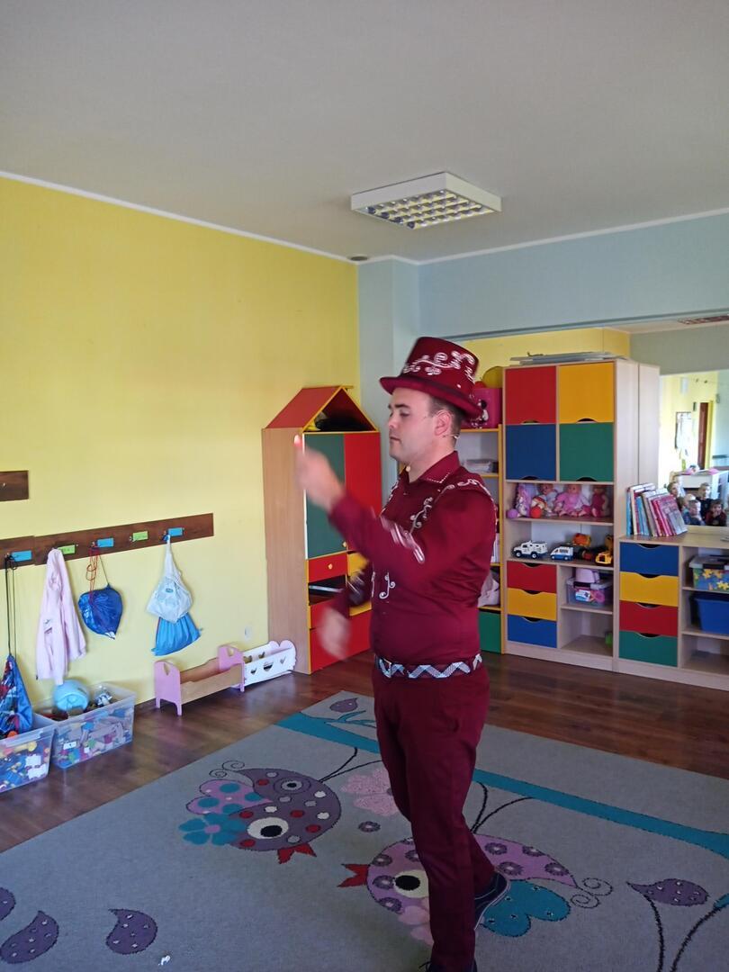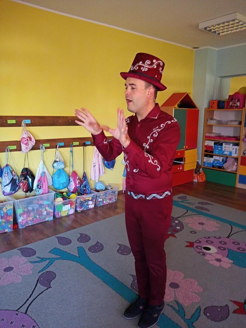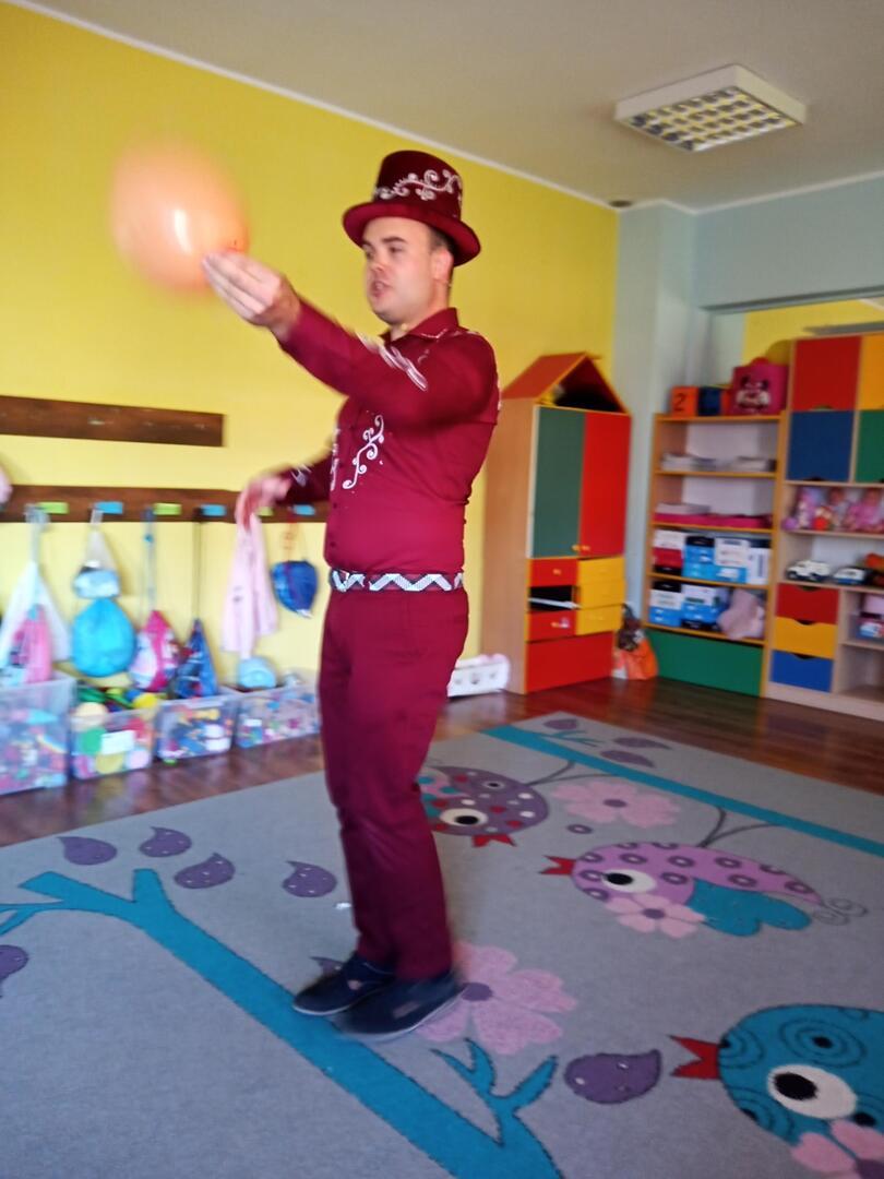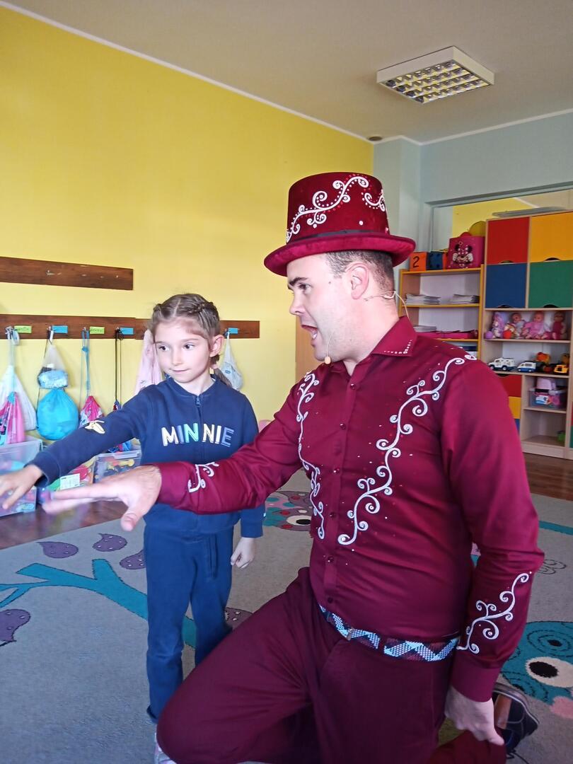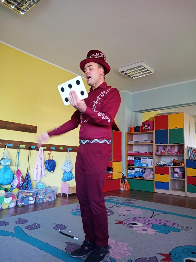Dzisiaj gościliśmy w naszym przedszkolu iluzjonistę, który swoimi czarami przeniósł dzieci w świat magii, dobrej zabawy i wspaniałego humoru. Przedszkolaki z dużym zaangażowaniem obserwowały każdy ruch iluzjonisty, aby przynajmniej nauczyć się jednej sztuczki. Każdy pokaz nagradzany był gromkimi brawami. Podczas tego niezwykłego widowiska ujawniły się też iluzjonistyczne predyspozycje przedszkolaków, które wcielając się w rolę asystenta z ogromnym zaangażowaniem próbowały zgłębić tajniki magii. Spotkanie z magikiem bardzo się wszystkim podobało. Dostarczyło dzieciom wielu niezapomnianych wrażeń, o czym świadczyły uśmiechy na twarzach oraz gromkie brawa.
