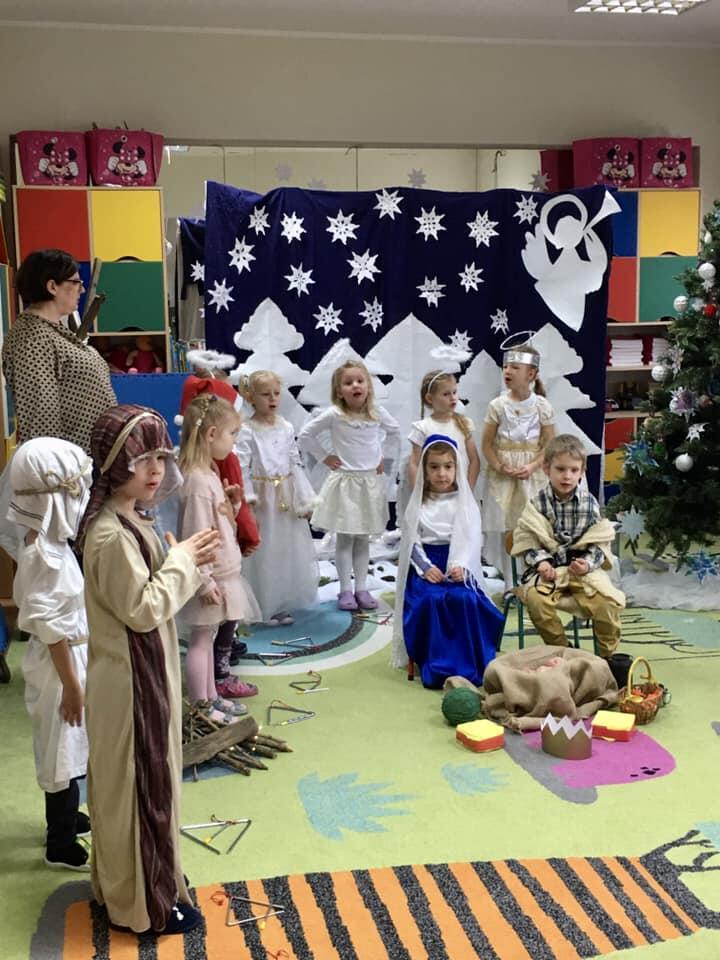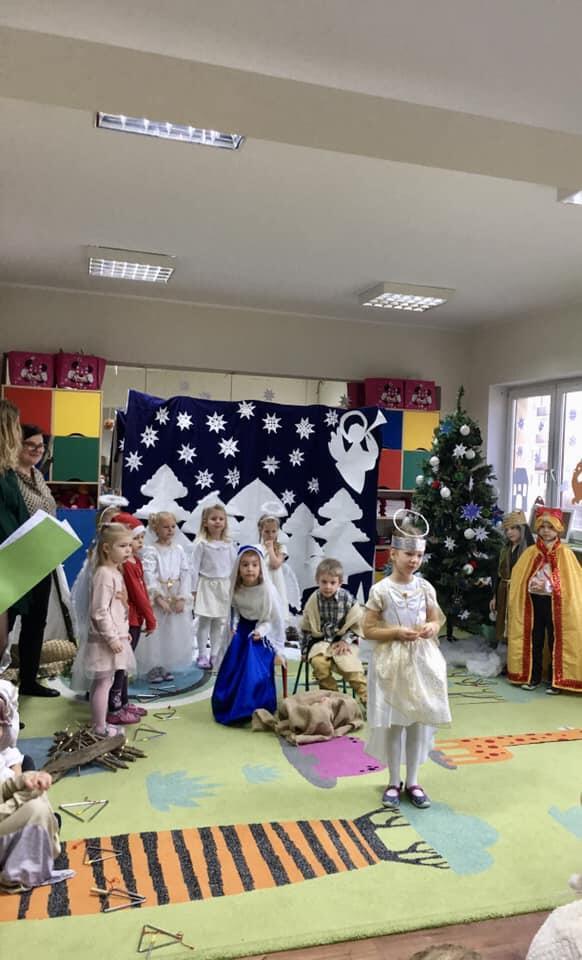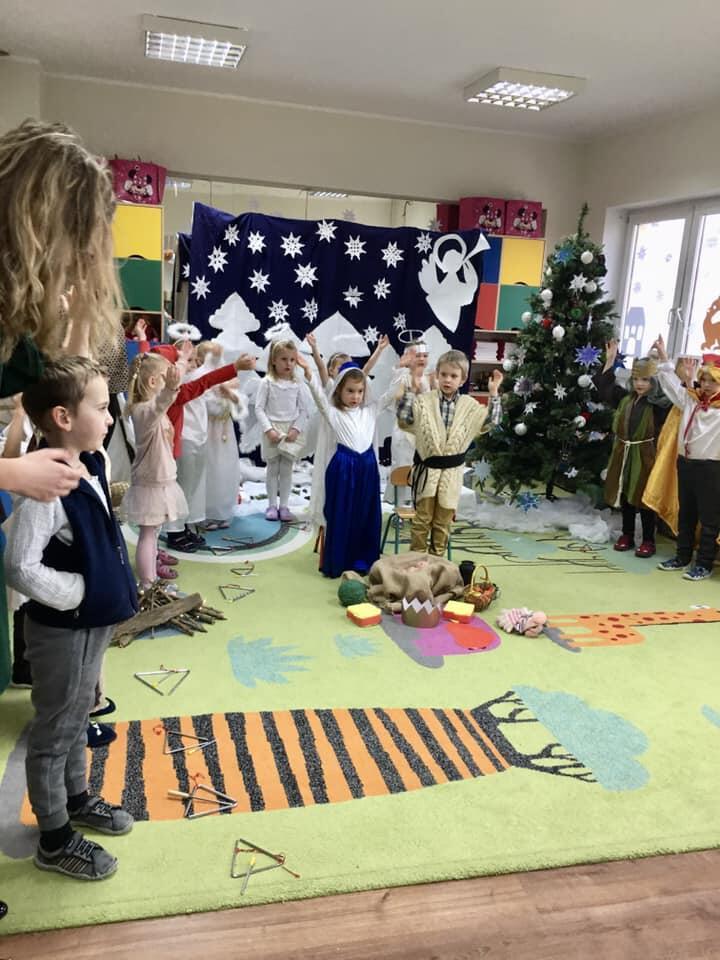 Dnia 19 grudnia 2022r. odbyły się jasełka w wykonaniu najstarszej grupy przedszkolnej, jak również przedstawienia zimowe, z udziałem grupy średniaków i maluszków. ?? Był to niezwykle piękny czas, wprowadzający nas w świąteczny, zimowy nastrój. ??❄️☃️?❤️ Dzieci zaprezentowały swoje umiejętności recytatorskie, taneczne i muzyczne, wspólnie kolędując, przywołując zimę i Świętego Mikołaja, tworząc tym samym w naszym przedszkolu magiczną atmosferę. ❤️?? Dziękujemy naszym gościom za obecność. ☺️