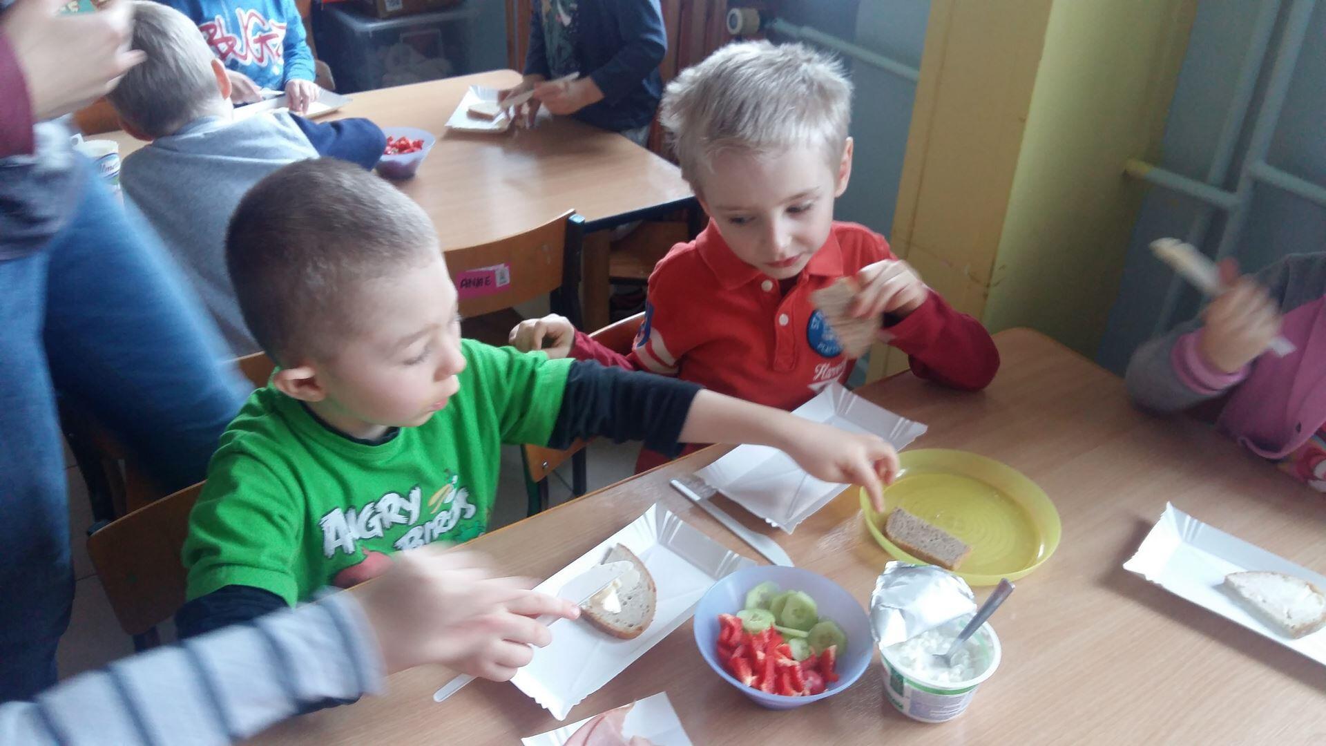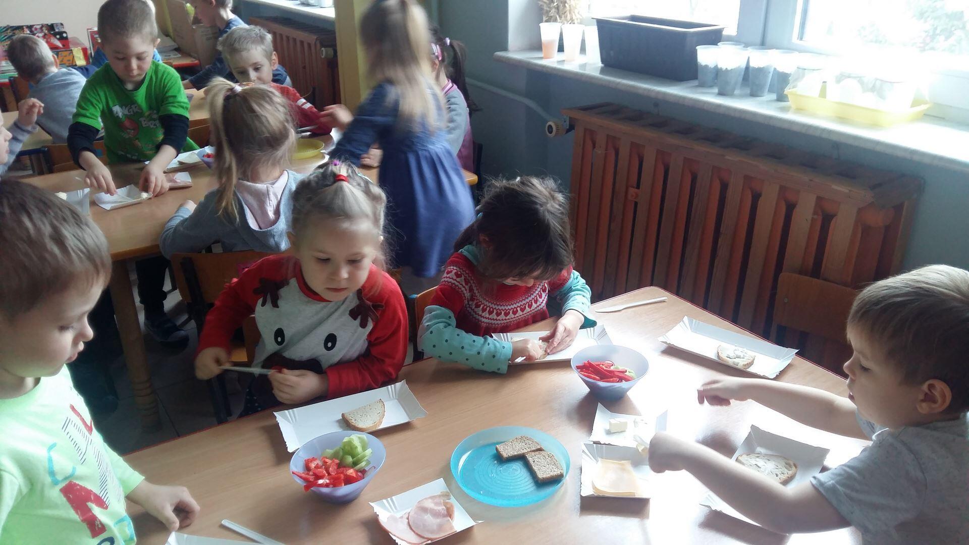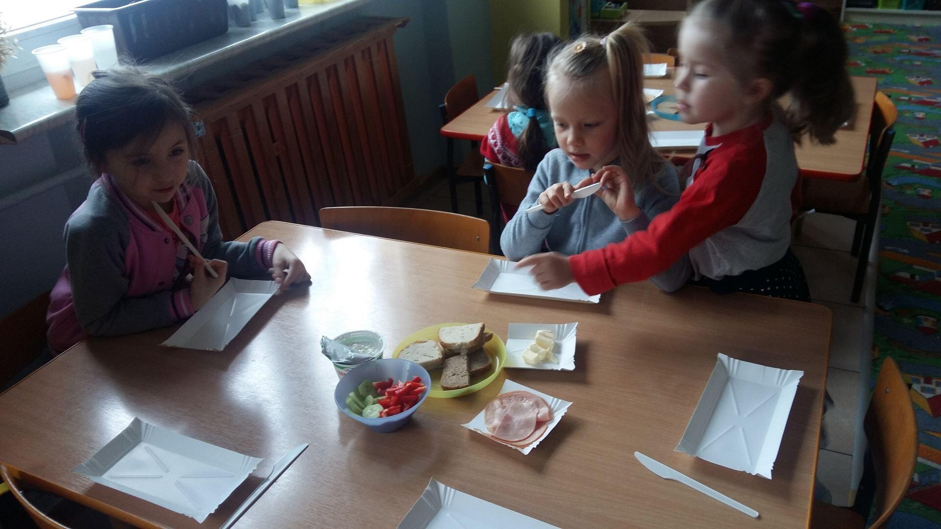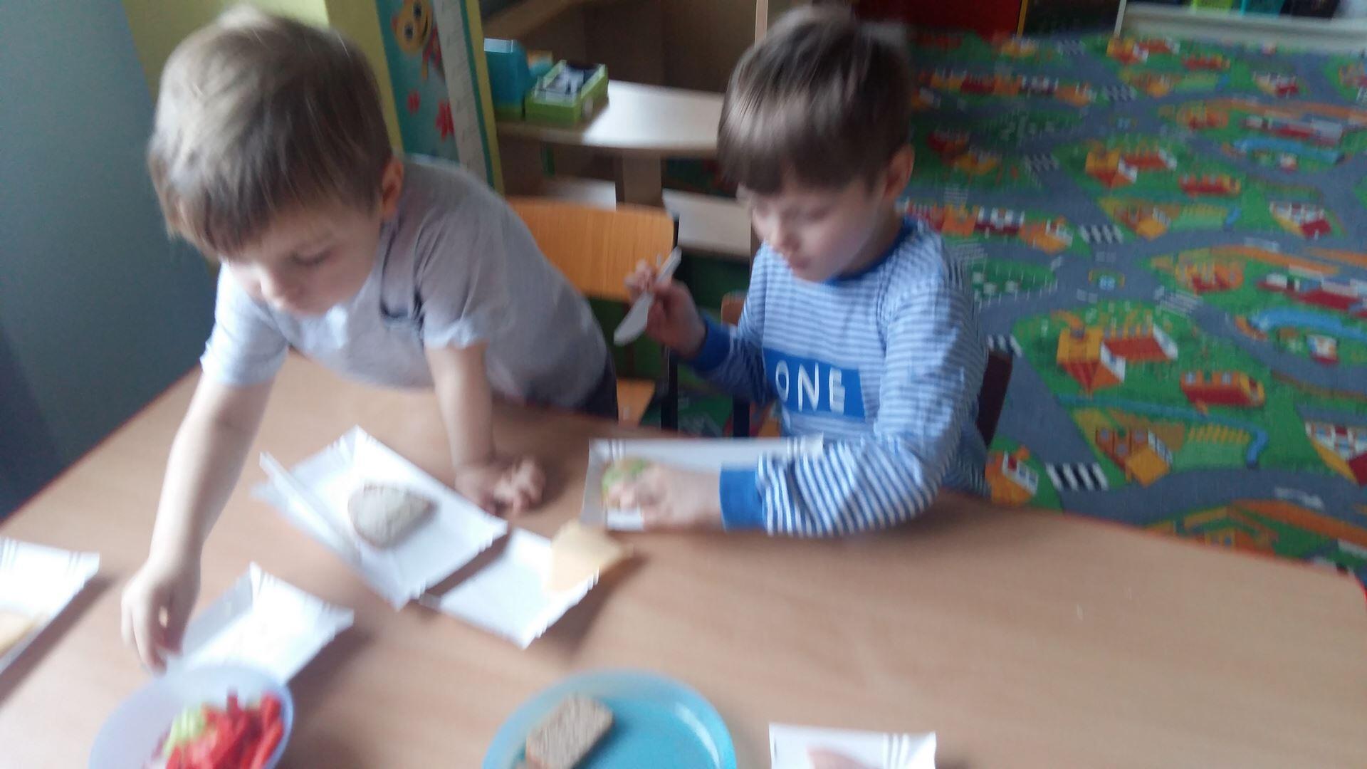 Dnia 14.03 dzieci przygotowały własne kanapki. Dzieci samodzielnie smarowały pieczywo masłem, a następnie układały na kromkach wybrane przez siebie produkty. Można śmiało powiedzieć,że zadanie wykonały doskonale.