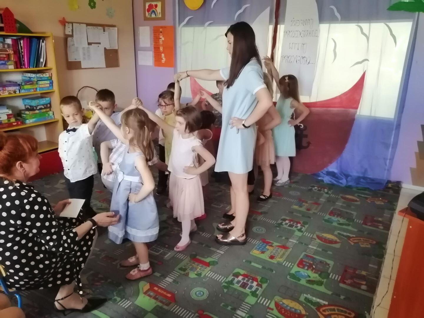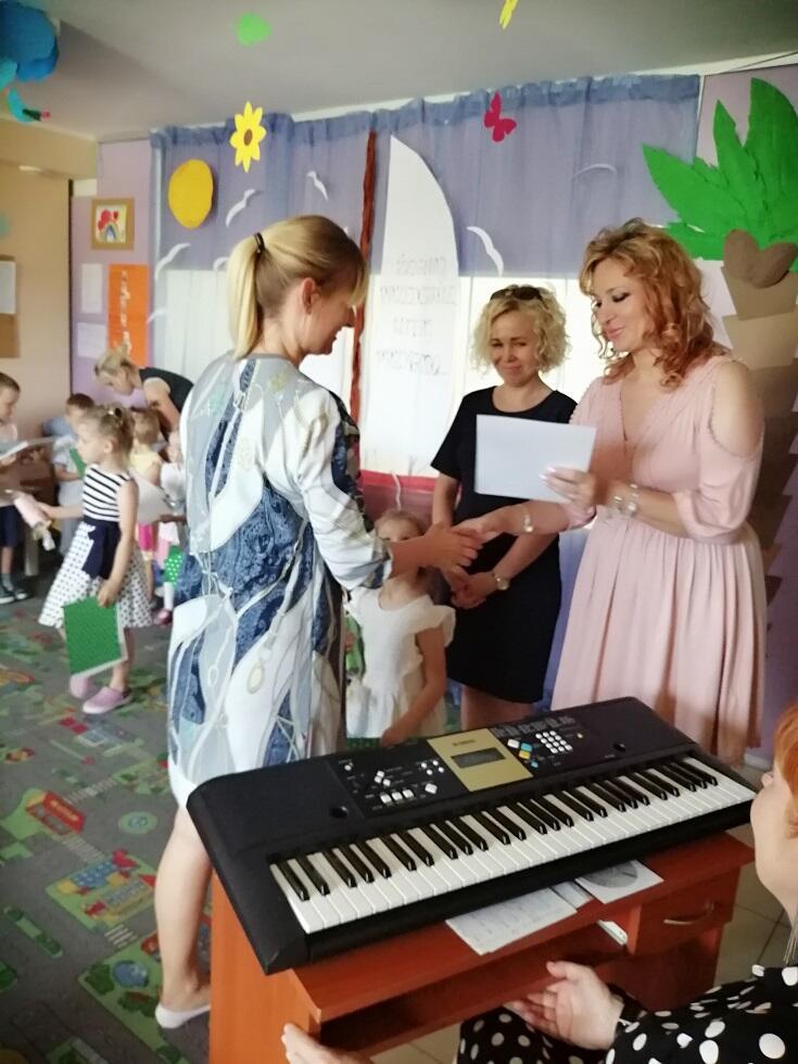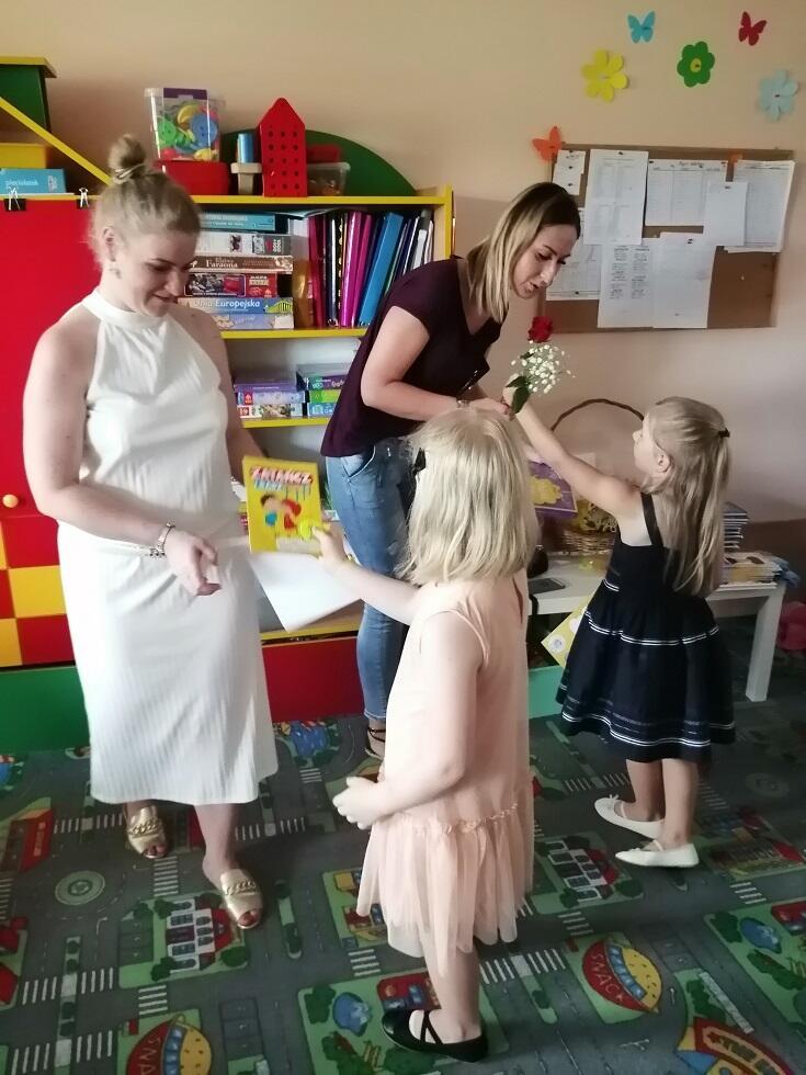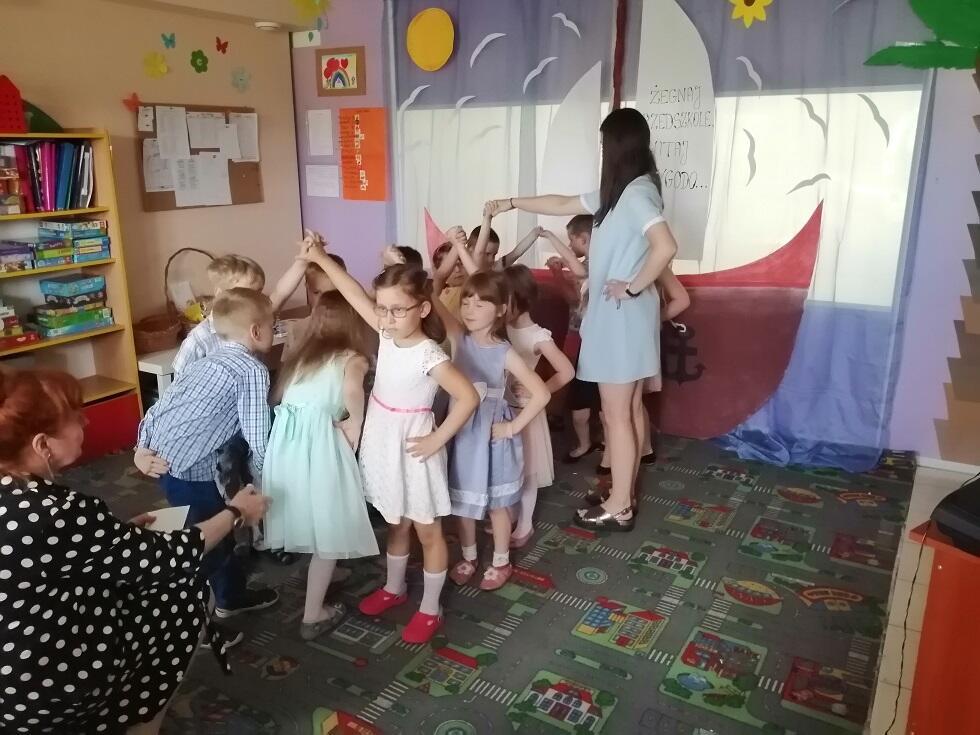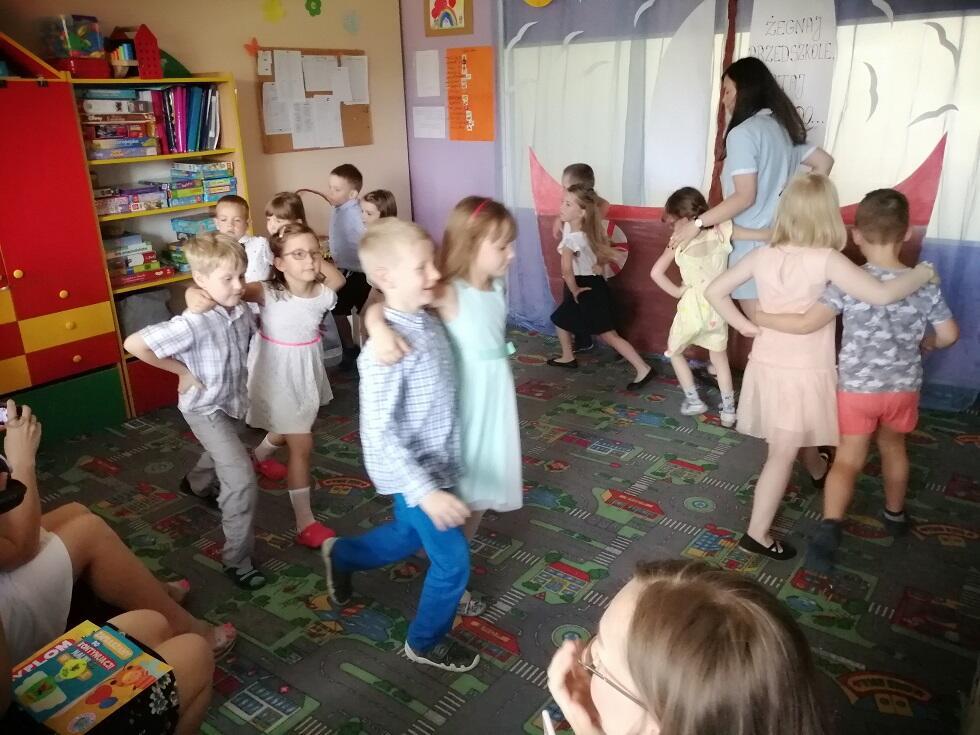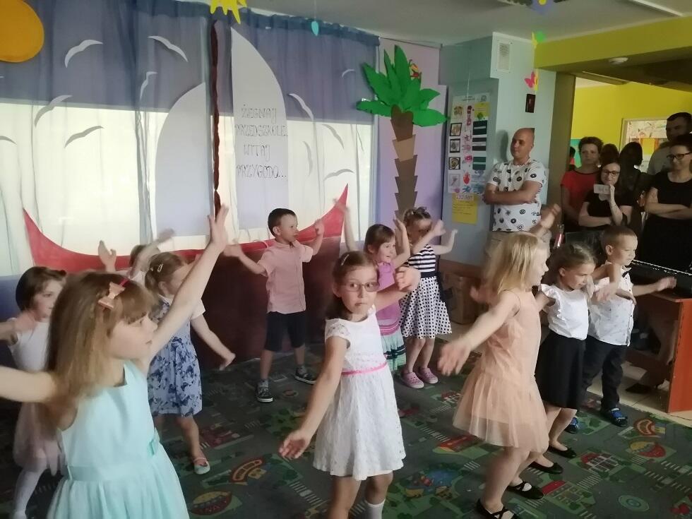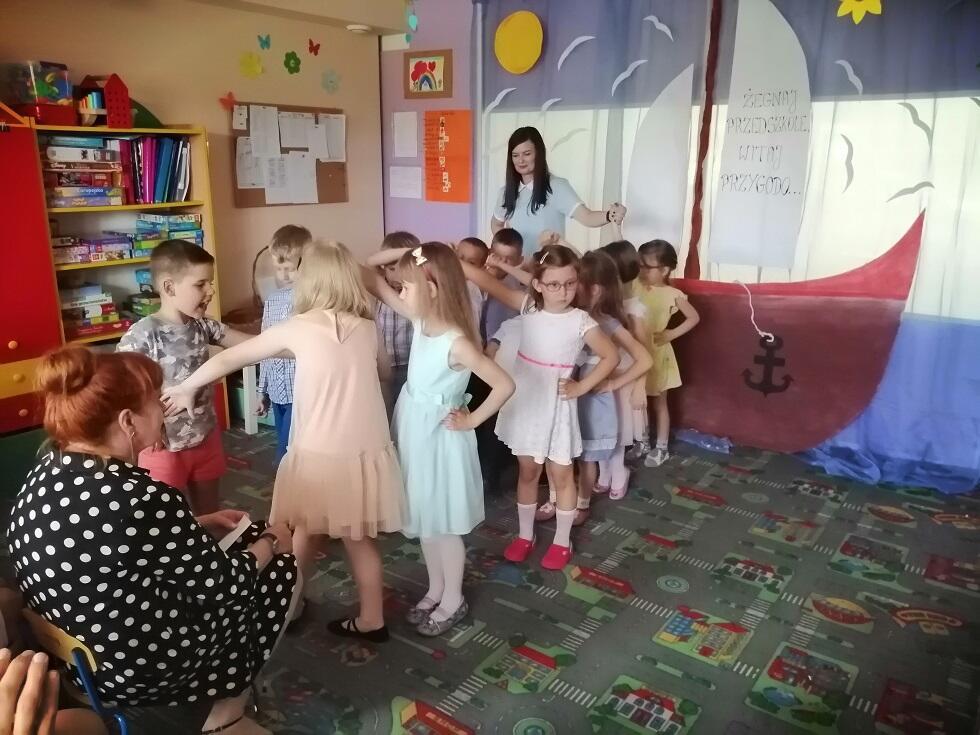 18 czerwca 2019 r. odbyła się w naszym przedszkolu uroczystość zakończenia roku przedszkolnego oraz pożegnania starszaków. W tym uroczystym dniu dzieciom towarzyszyli rodzice.  Na początku wystąpiły dzieci z grupy młodszej. Zaśpiewały piosenkę, zaprezentowały wierszyki żegnając przy tym starszych kolegów oraz wręczyły starszakom drobne upominki w postaci breloczków. Na zakończenie najważniejszy punkt uroczystości- występ 6 latków. Starszaki dostojnie prezentowały swoje umiejętności artystyczne, recytatorskie i taneczne.Na koniec dyrekcja wystosowała podziękowania w postaci dyplomów dla rodziców, którzy byli zaangażowani w działania na rzecz placówki. Po występach wszystkie dzieci otrzymały dyplomy, dedykowane książki oraz słodką niespodziankę. Uroczystość zakonczyła się słodkim poczęstunkiem z udziałem rodziców starszaków.