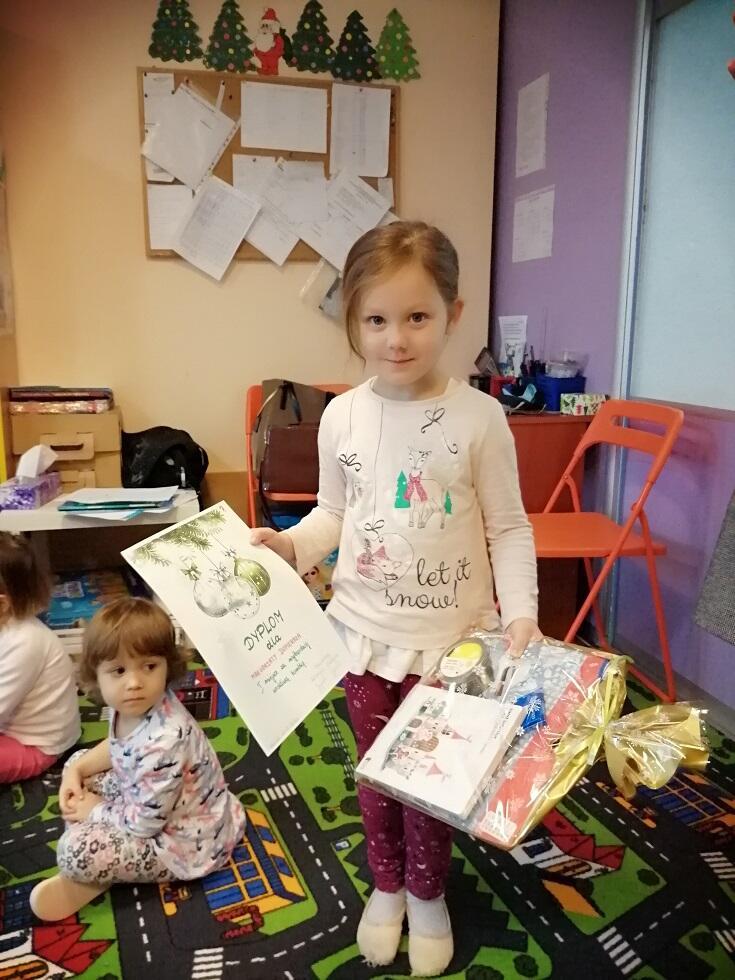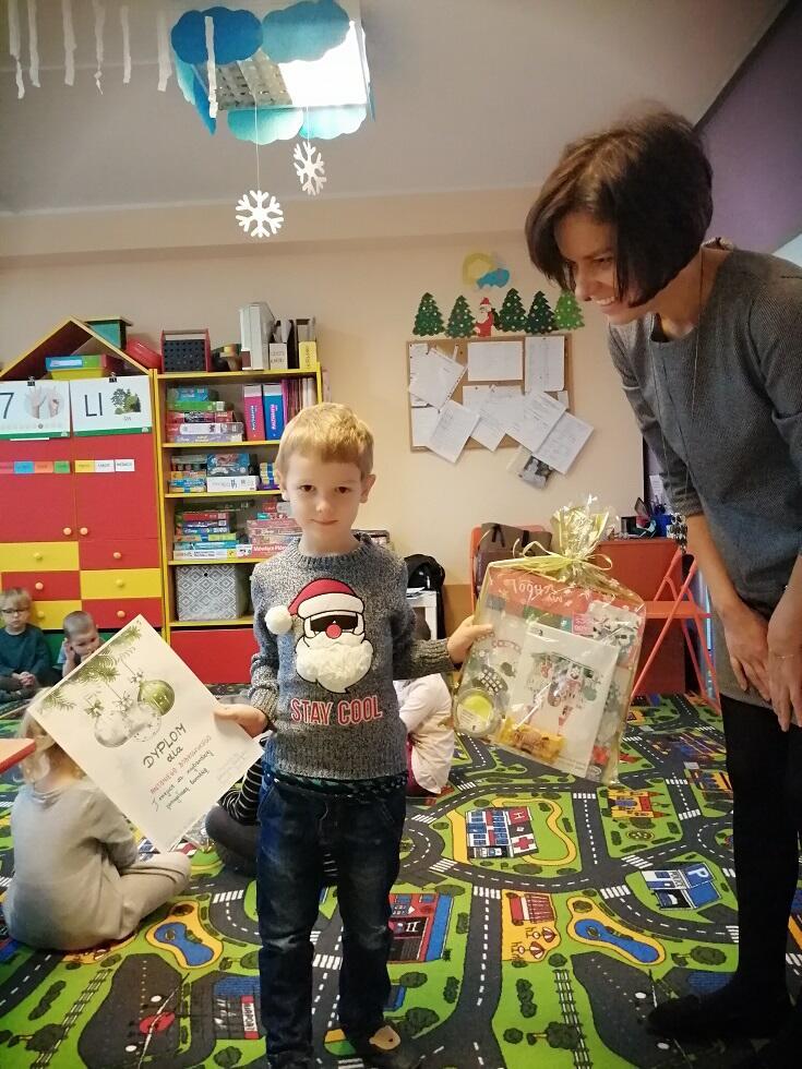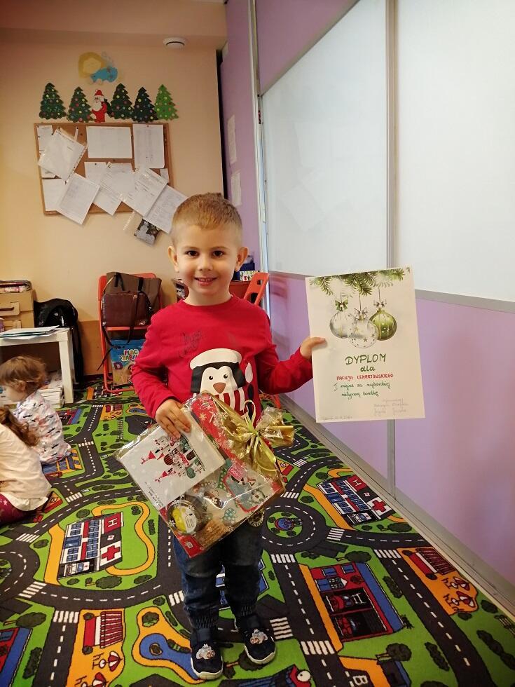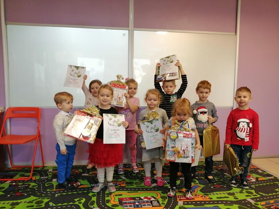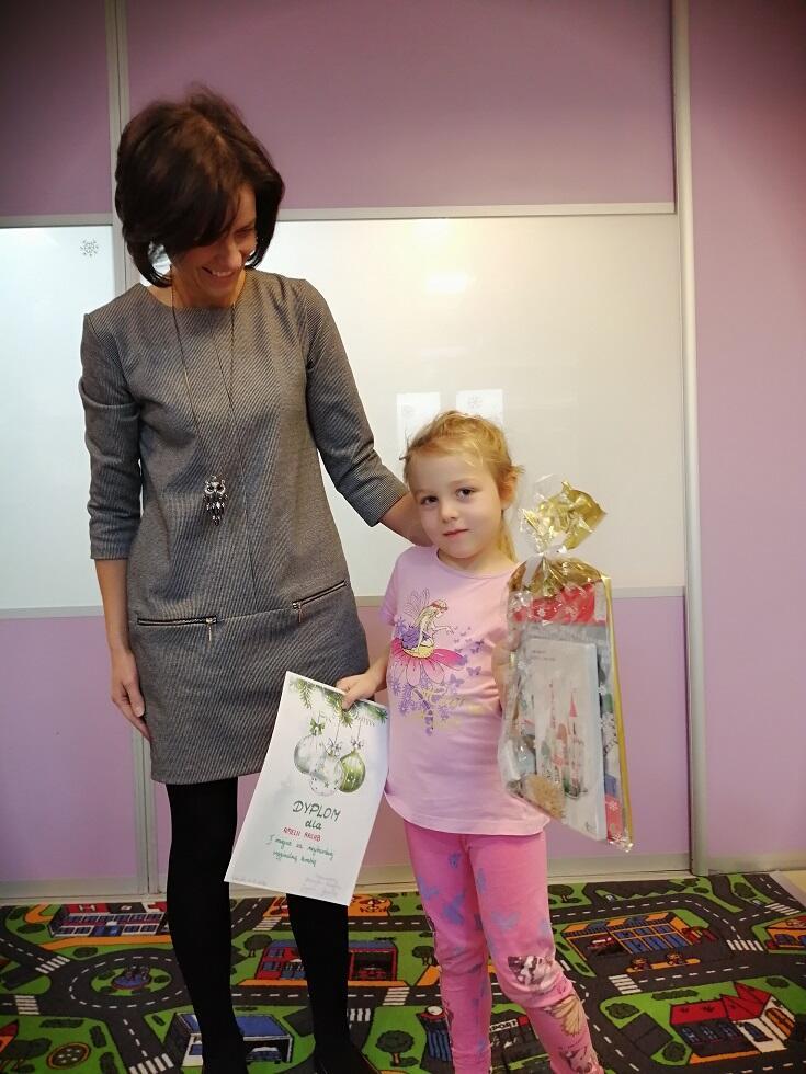 Zadaniem uczestników było wykonanie bombki w dwolnym formacie. Do anonimowej oceny prac zaangażowaliśmy rodziców wraz z ich pociechami. Ze względu na wykonanie wspaniałych prac przez wszystkich uczestników konkursu, każdy z nich otrzymał zasłużone I miejsce, nagrodę oraz pamiątkowy dyplom.