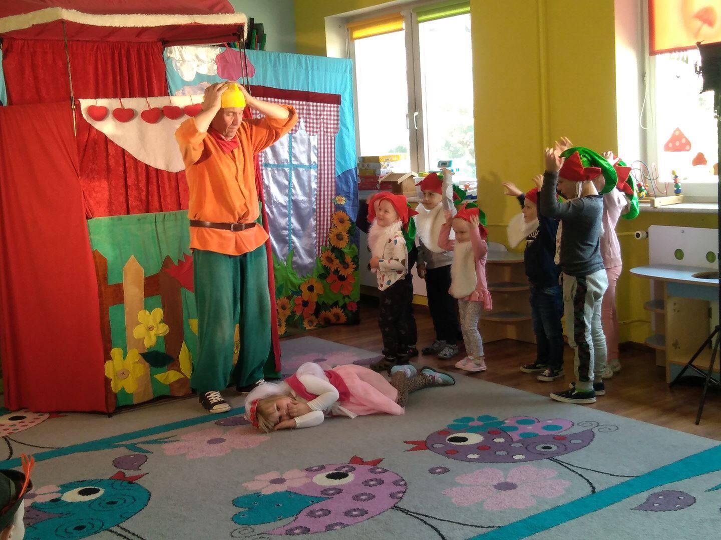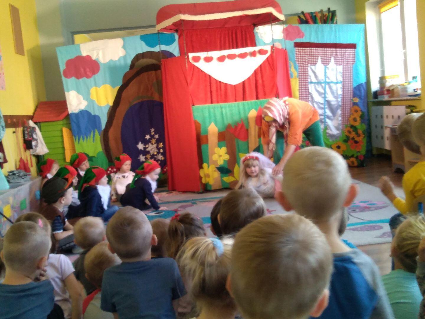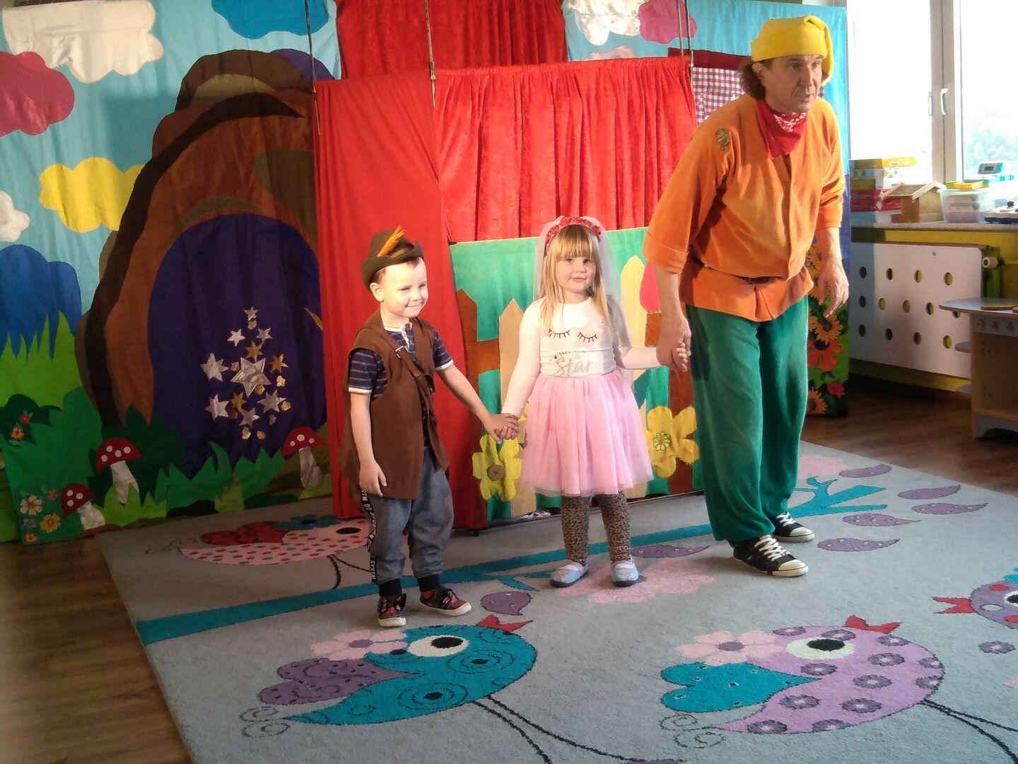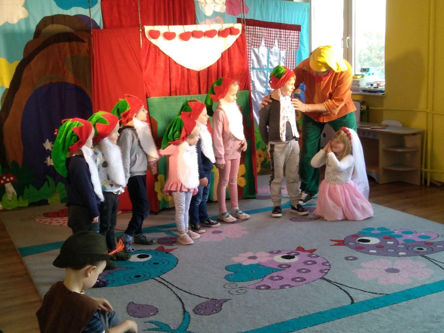 18 września nasze przedszkole odwiedził Teatr Qfer wraz z przedstawieniem "Królewna Śnieżka i siedmiu krasnoludków". Bajka bardzo się przedszkolakom spodobała, ponieważ kilkoro z nich mogło się poczuć prawdziwymi aktorami na scenie. Wspólnie z teatrem stworzyliśmy znaną wszystkim bajkę o królewnie Śnieżce. Główna rola przypadła Lence ze średniaków, Dawid z tej samej grupy mógł spróbować swoich sił jako leśniczy, księciem został jeden z braci bliźniaków Franek, a krasnoludkami: Ala, Lila, Marcel, Adaś, Jaś, Adaś, Samuel. Wszystkim aktorom - tym małym i dużym - gratulujemy udanego spektaklu!