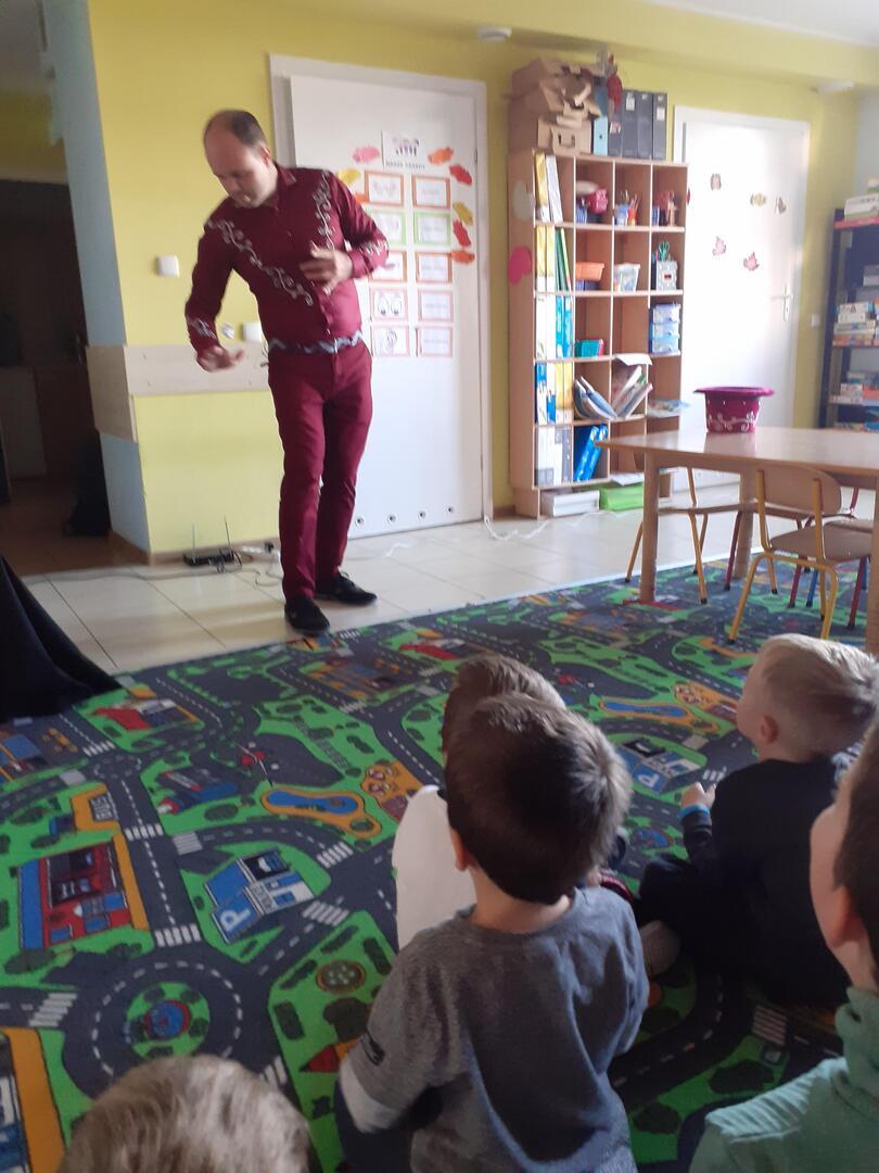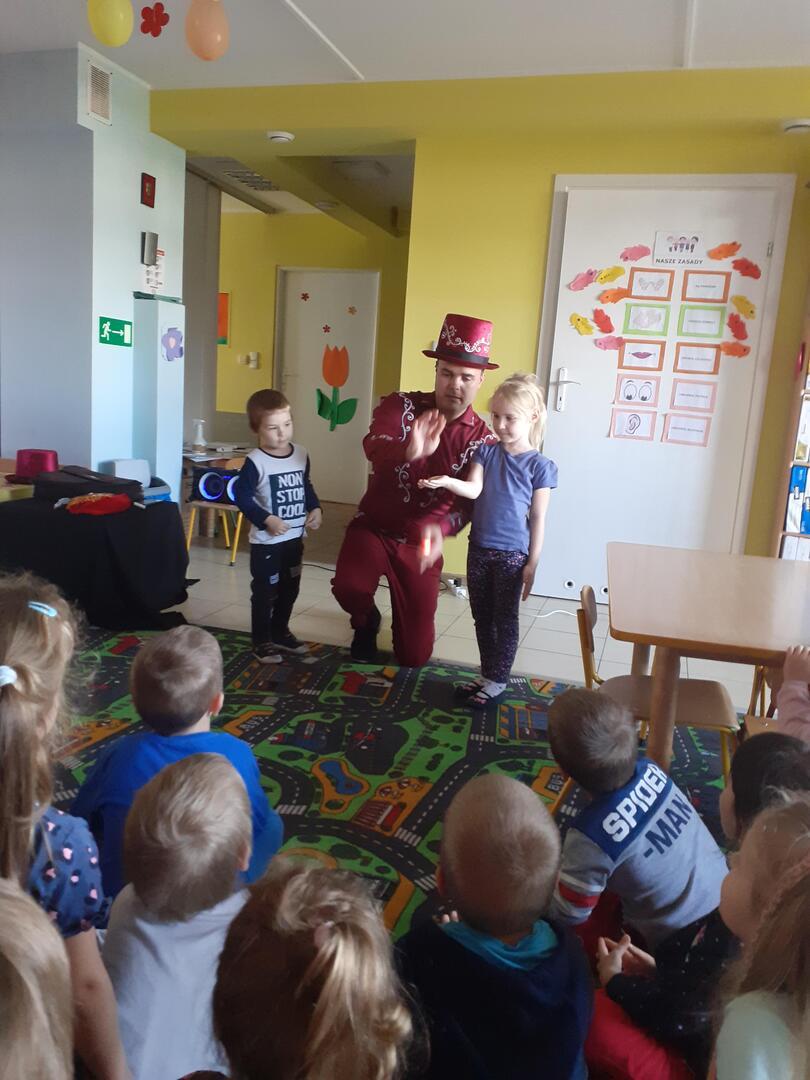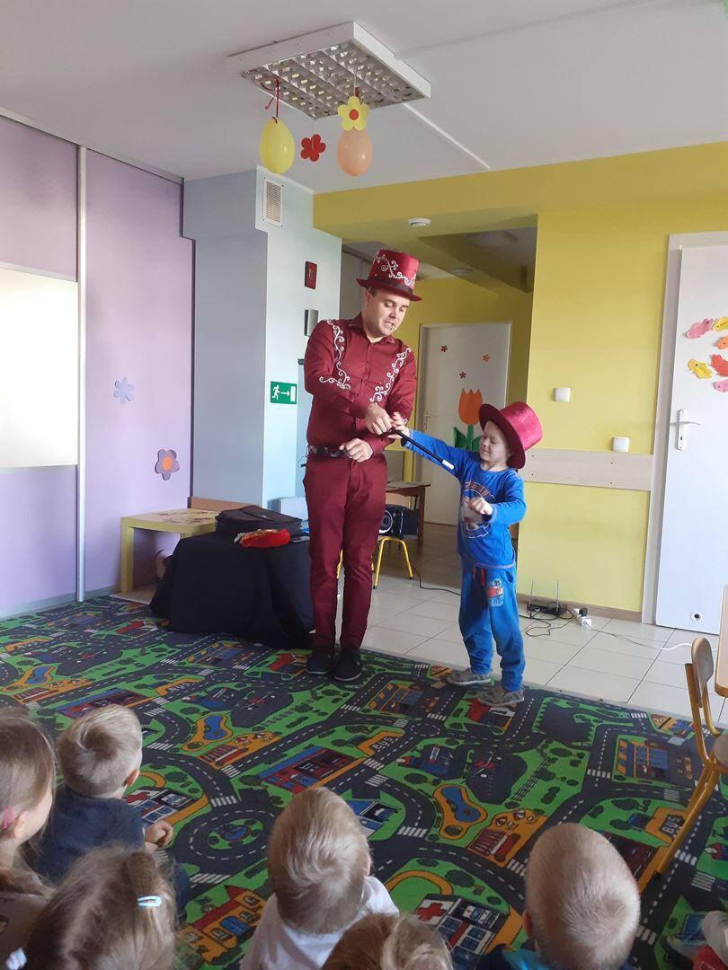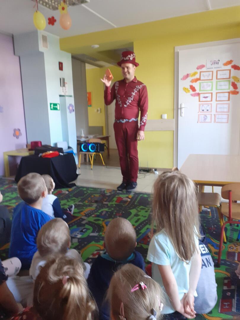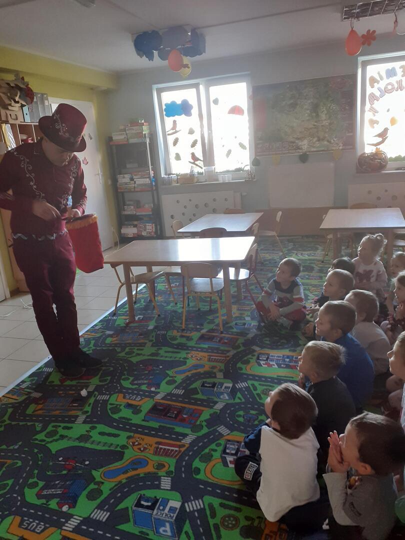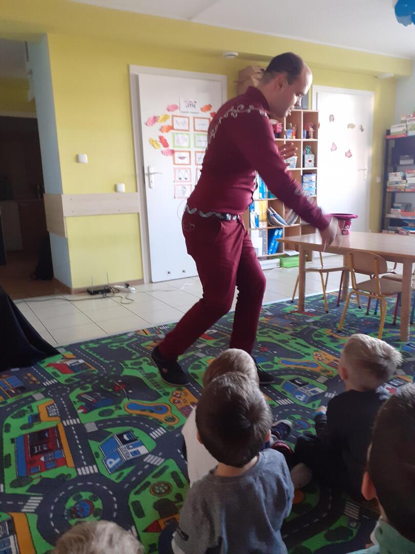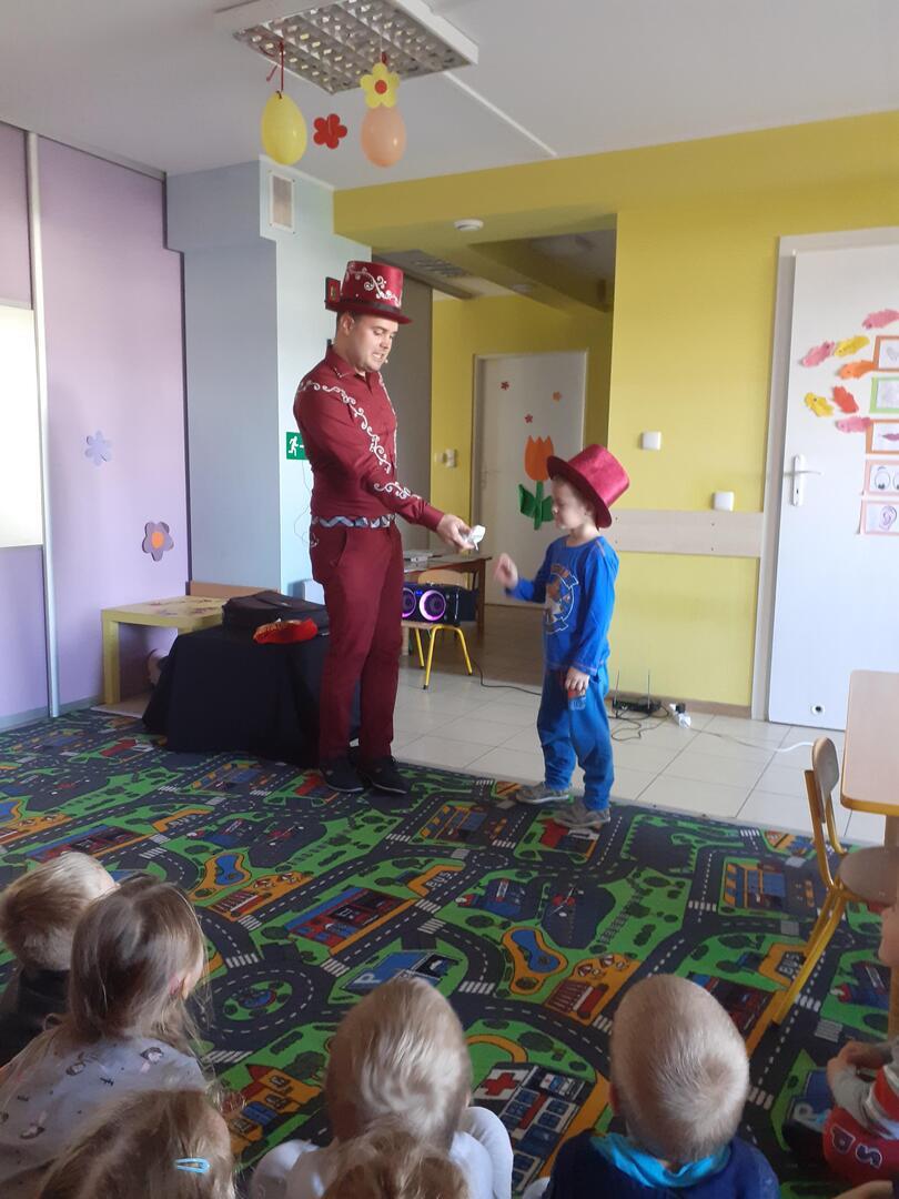 Dziś dzieci odwiedził prawdziwy czarodziej. Przedszkolaki miały okazję przenieść się do świata magii. Jak na czarodzieja przystało zaczarował dzieci pokazem sztuk magicznych. Nasi milusińscy wcielili się również w rolę asystenta.