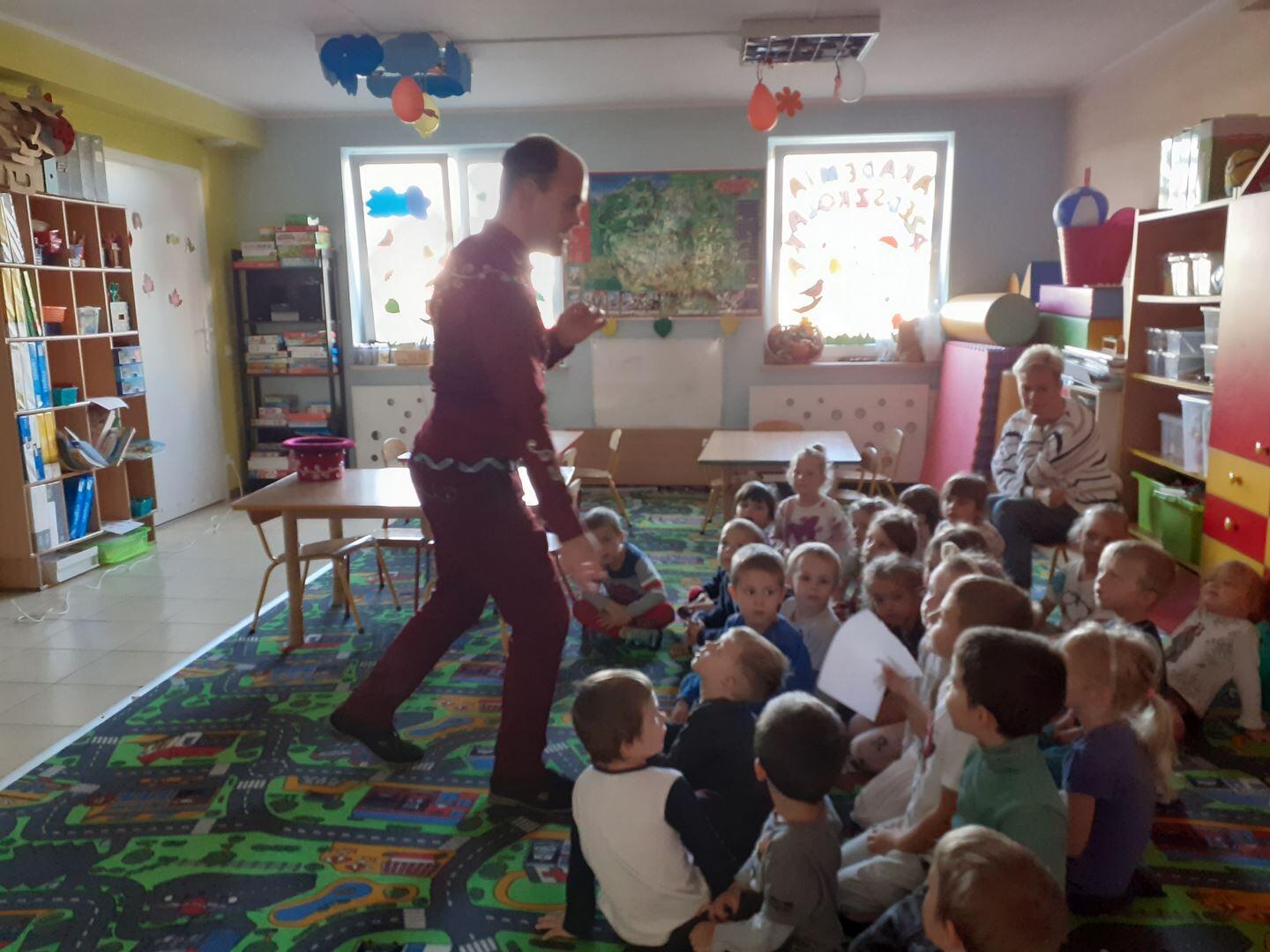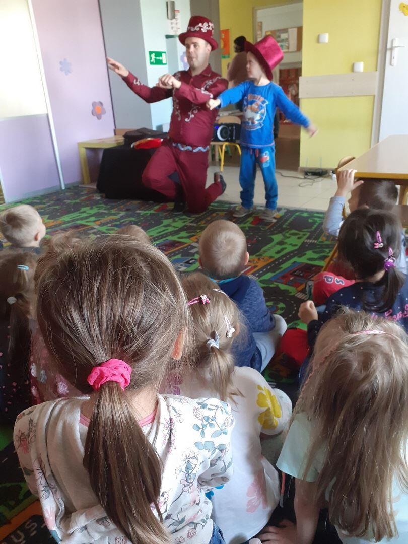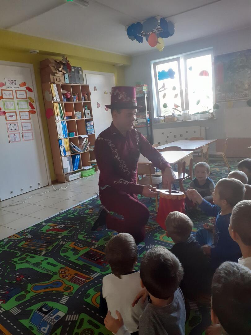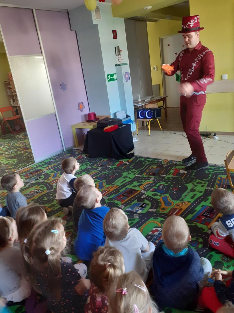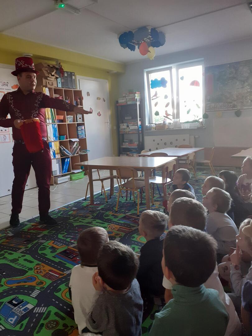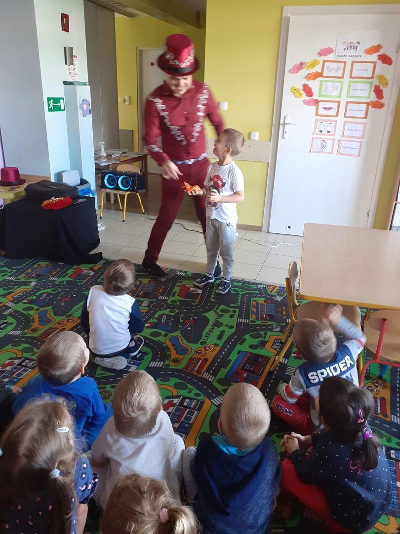 Dziś dzieci odwiedził prawdziwy czarodziej. Przedszkolaki miały okazję przenieść się do świata magii. Jak na czarodzieja przystało zaczarował dzieci pokazem sztuk magicznych. Nasi milusińscy wcielili się również w rolę asystenta.