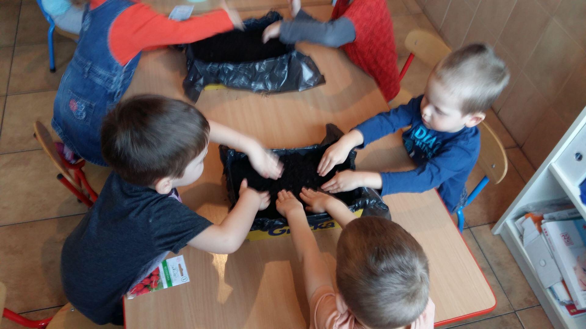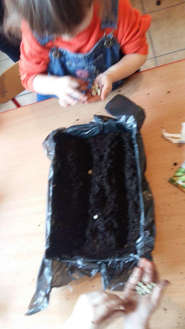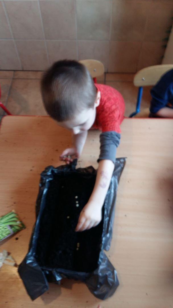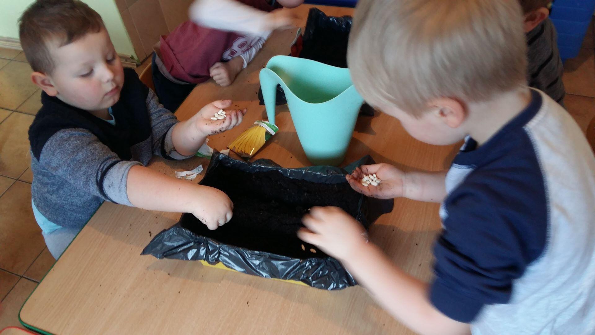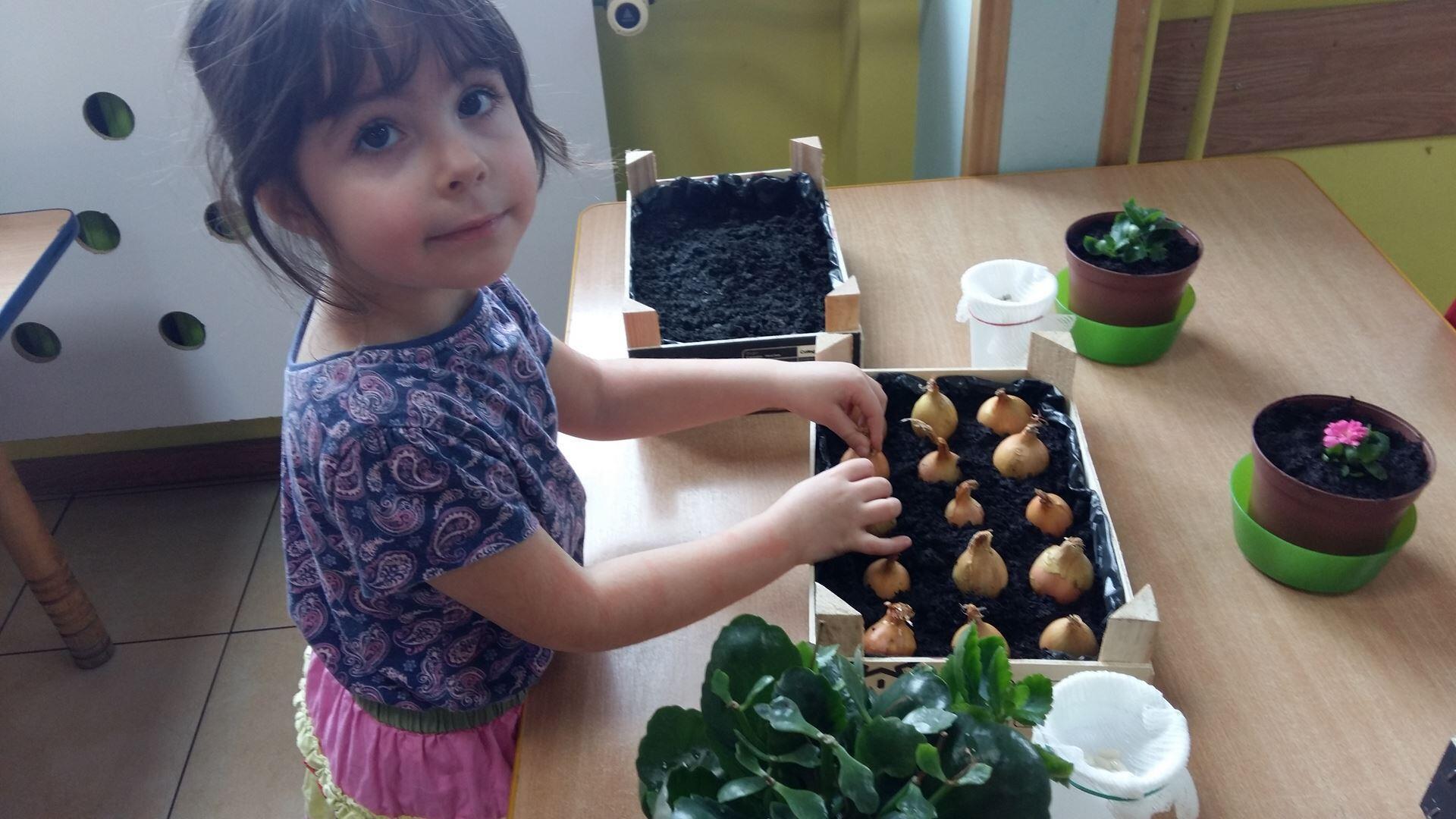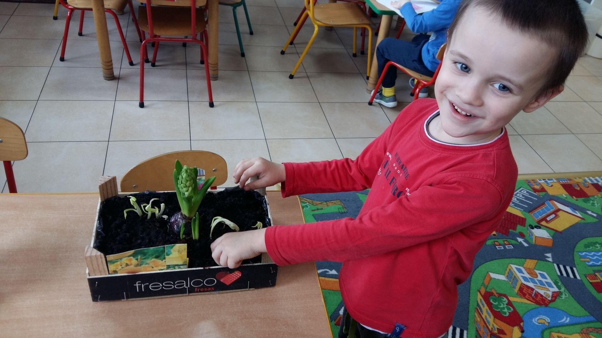 W każdej sali powstały kąciki przyrodnicze w których znalazły się małe uprawy takie jak; rzodkiewka, cebula, fasola, groszek, rzeżucha i różne kwiaty.