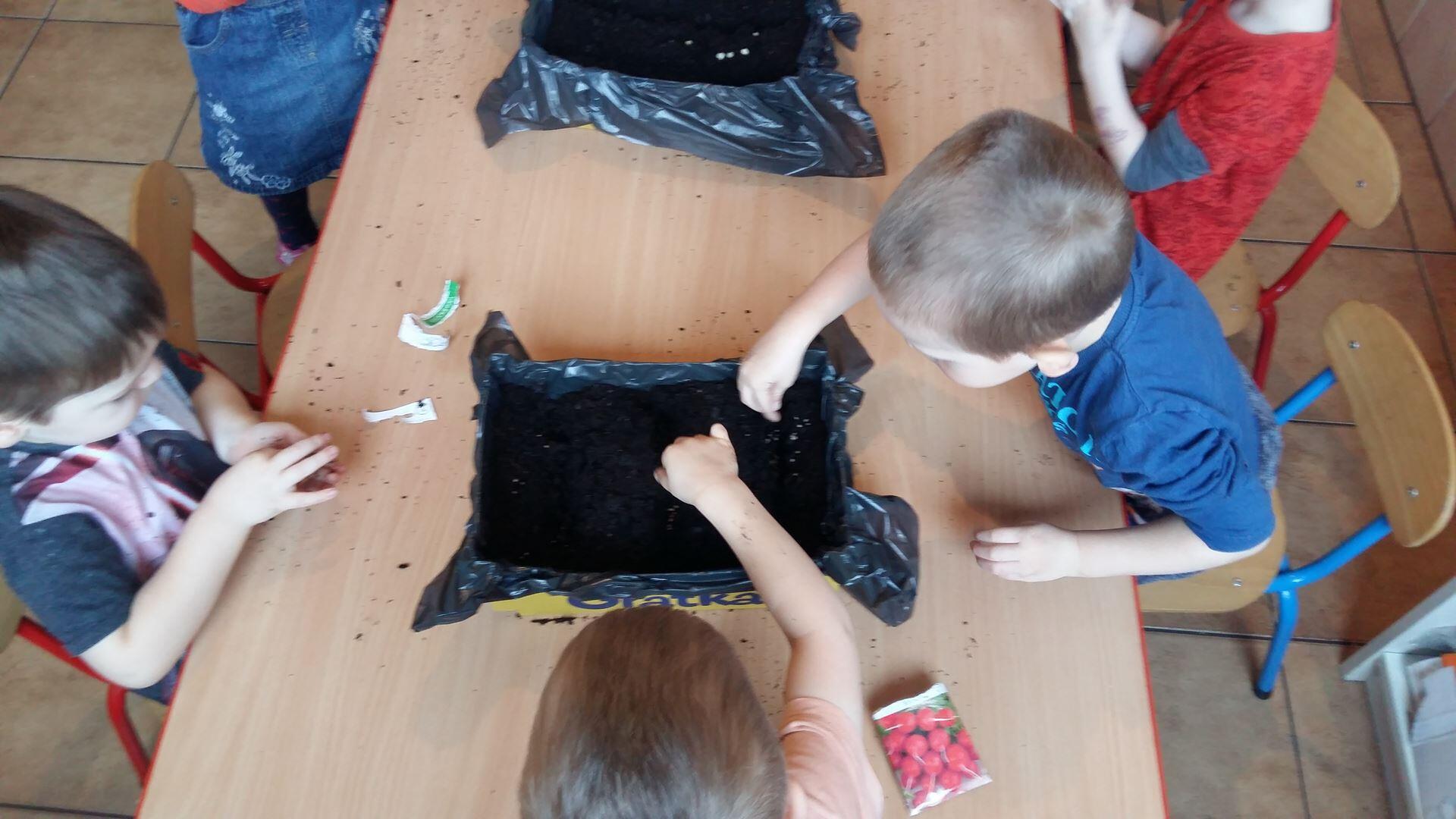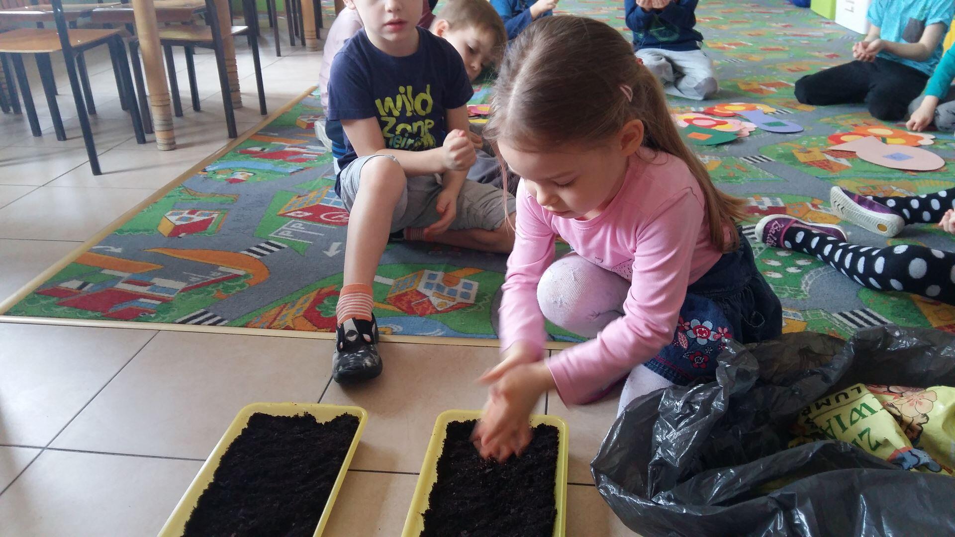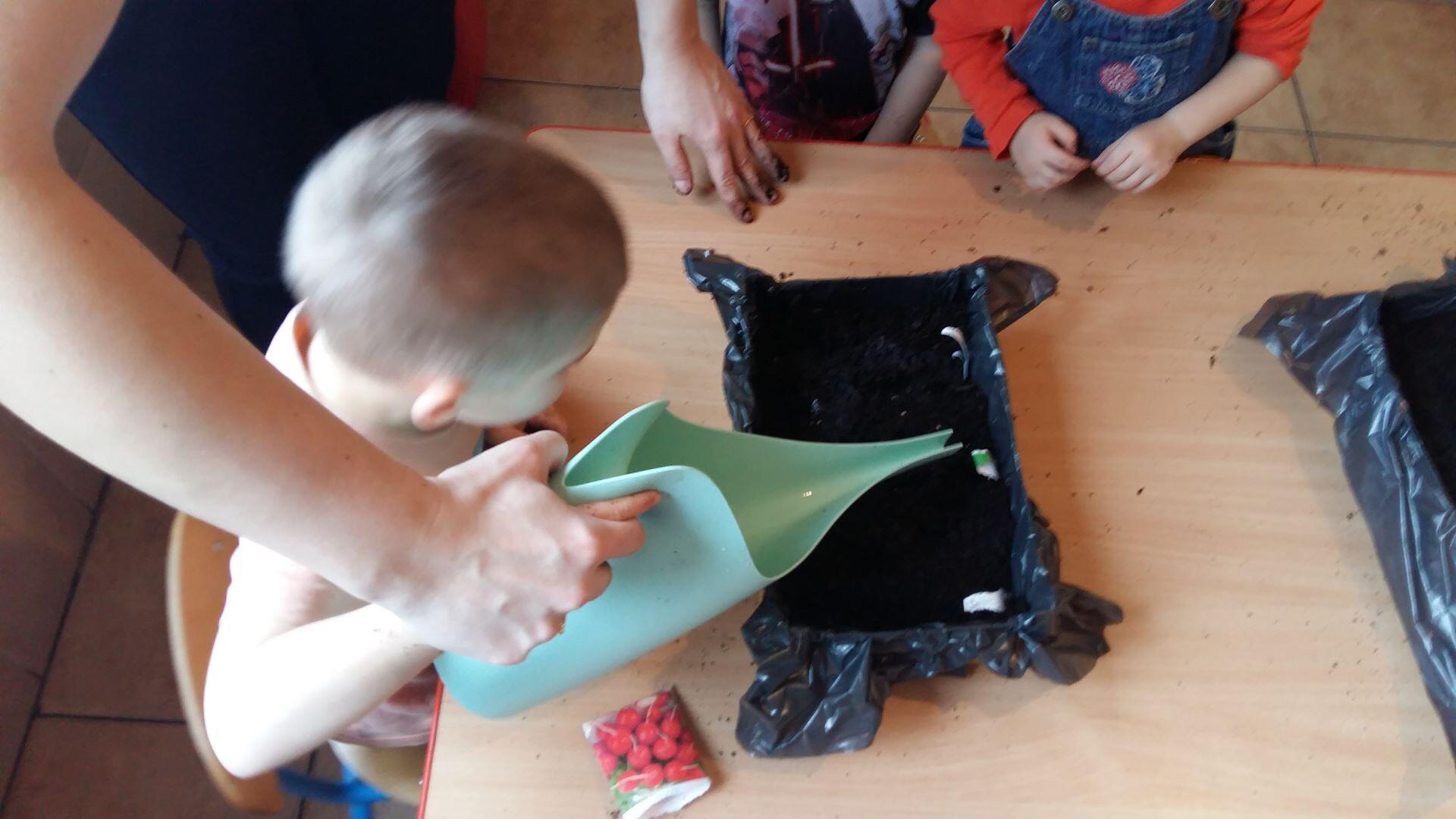 Dzieci mogły sadzić i siać, a na samym końcu podlewać co sprawiało im wspaniałą radość