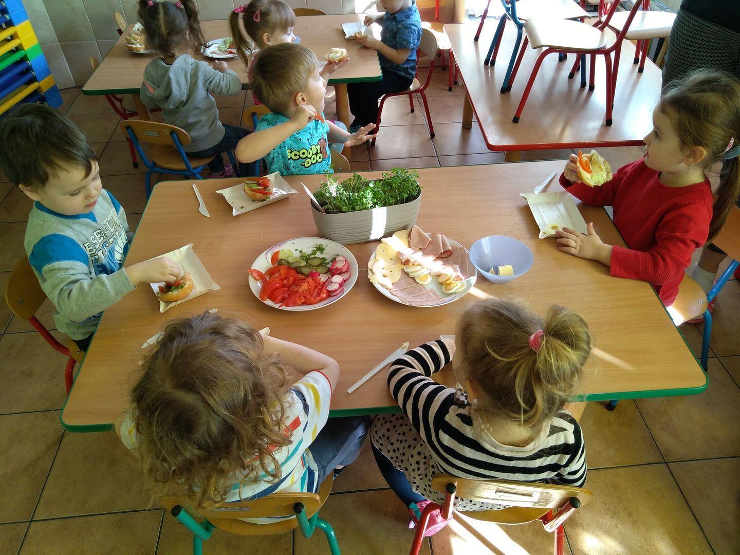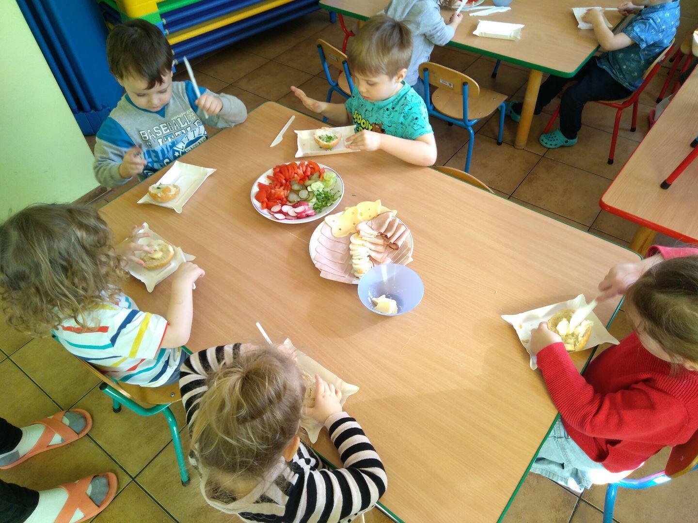 W tym tygodniu przedszkolaki postanowiły zabawić się w kucharzy. We wszystkich grupach dzieci przygotowały pyszne potrawy. Maluszki zabrały się za przygotowanie zdrowych kanapek, na których nie zabrakło dużej ilości warzyw. Średniaki stworzyły pyszną pastę jajeczną, a starszaki wykonały jajeczne myszki.