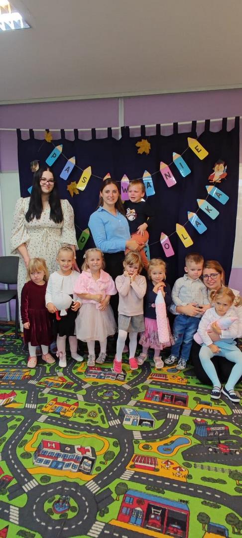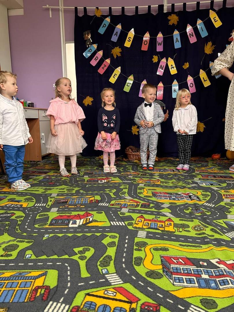 Dnia 24.10.2023r. w naszym przedszkolu odbyło się PASOWANIE NA PRZEDSZKOLAKA. Mali artyści zaprezentowali przygotowane piosenki, tańce oraz wierszyki. Dla większości był to pierwszy, bardzo ważny występ. Po części artystycznej nastąpił akt pasowania, czyli dotknięcie ramienia każdego przedszkolaka ogromną kredką przez Panią Dyrektor. Następnie udaliśmy się wszyscy na poczęstunek.