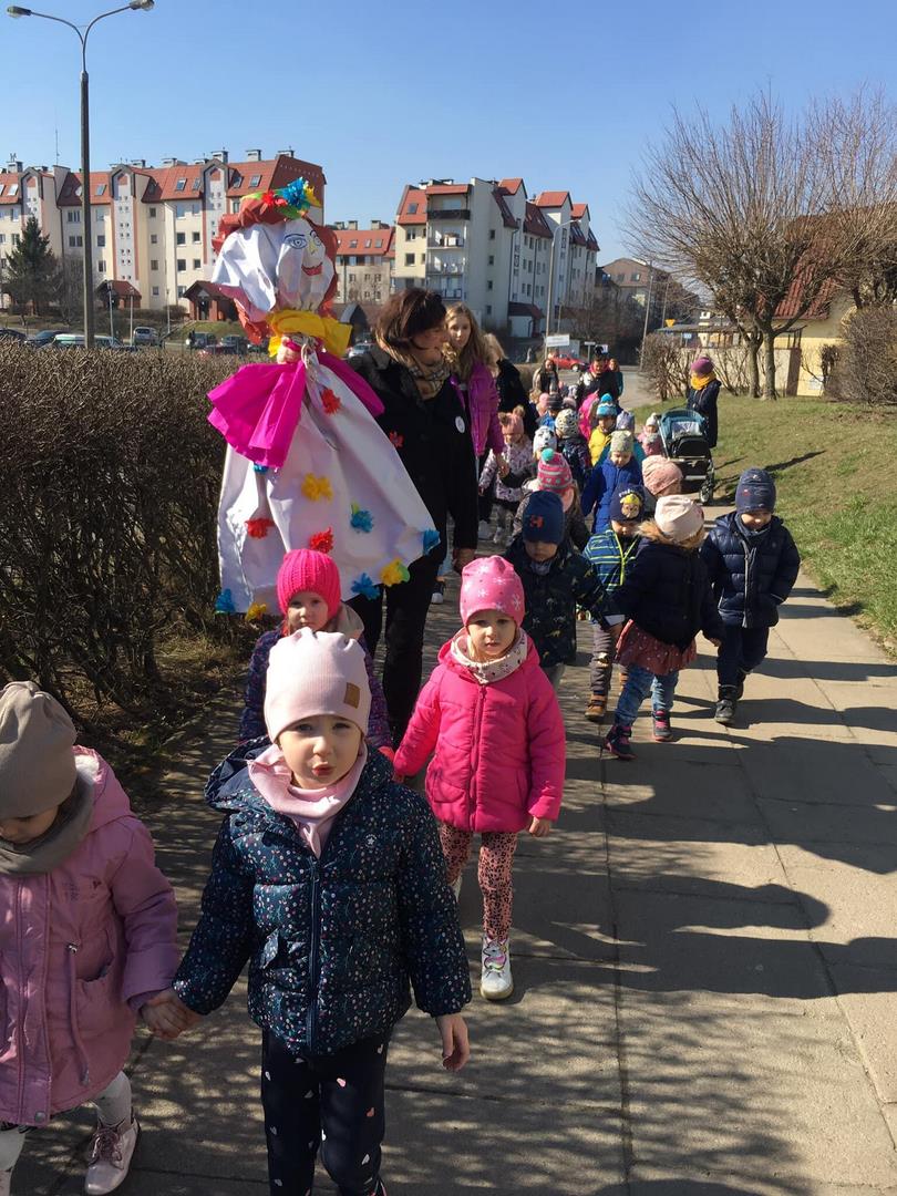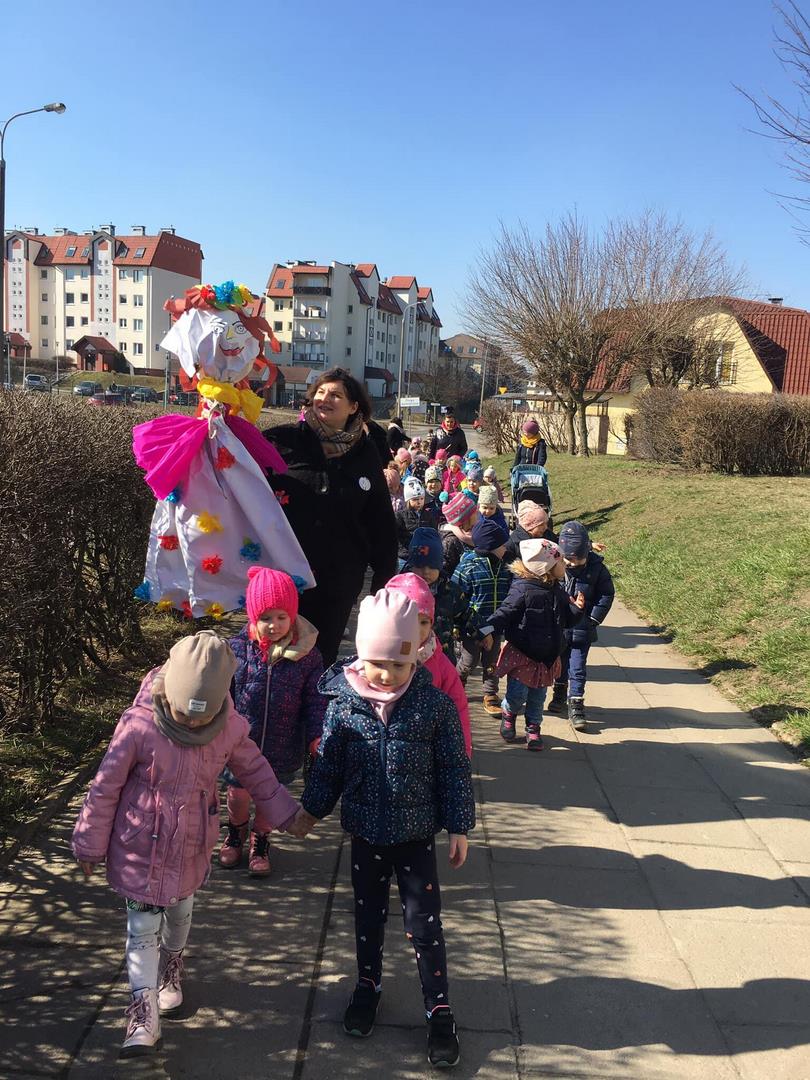 W poniedziałek przywitaliśmy Panią Wiosnę udając się na spacer z naszą kolorową Marzanną ?Trzeba przyznać, że tego dnia czuliśmy wiosnę w ? procentach!☀️☀️? Słońce dodało nam energii do zabaw i ćwiczeń, po których udaliśmy się do przedszkola na pyszny obiadek. ? ?