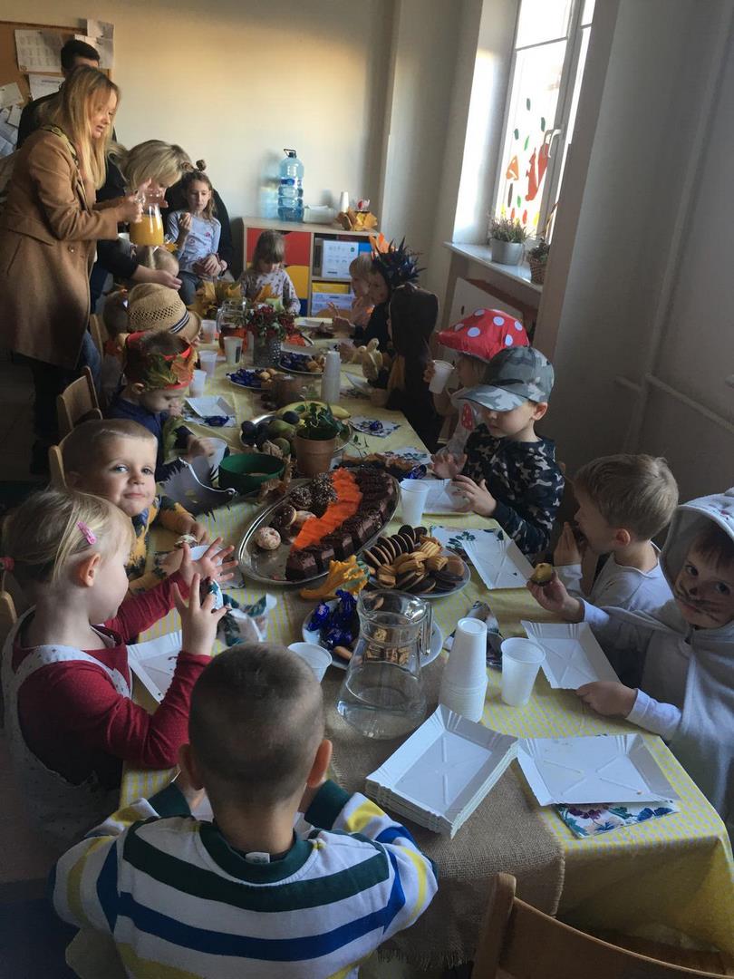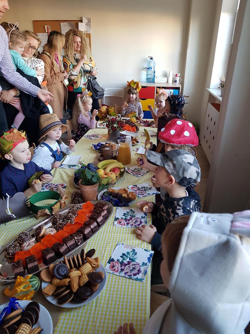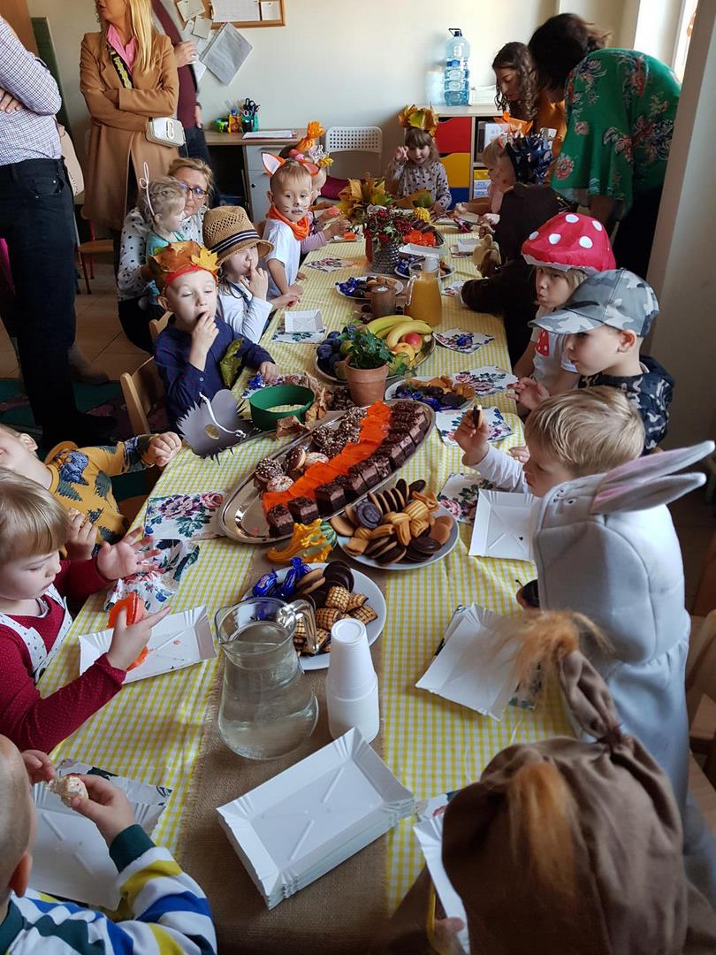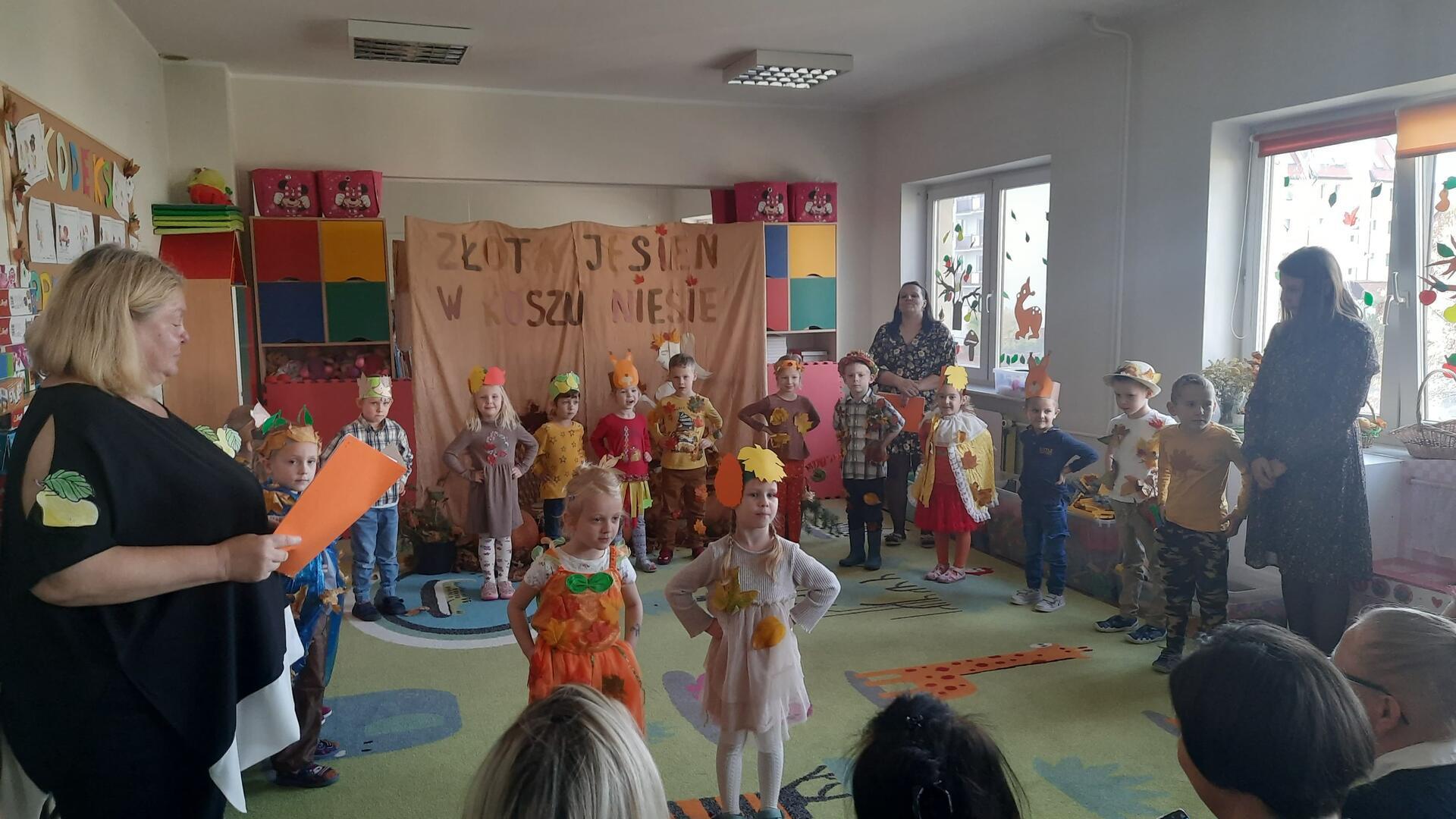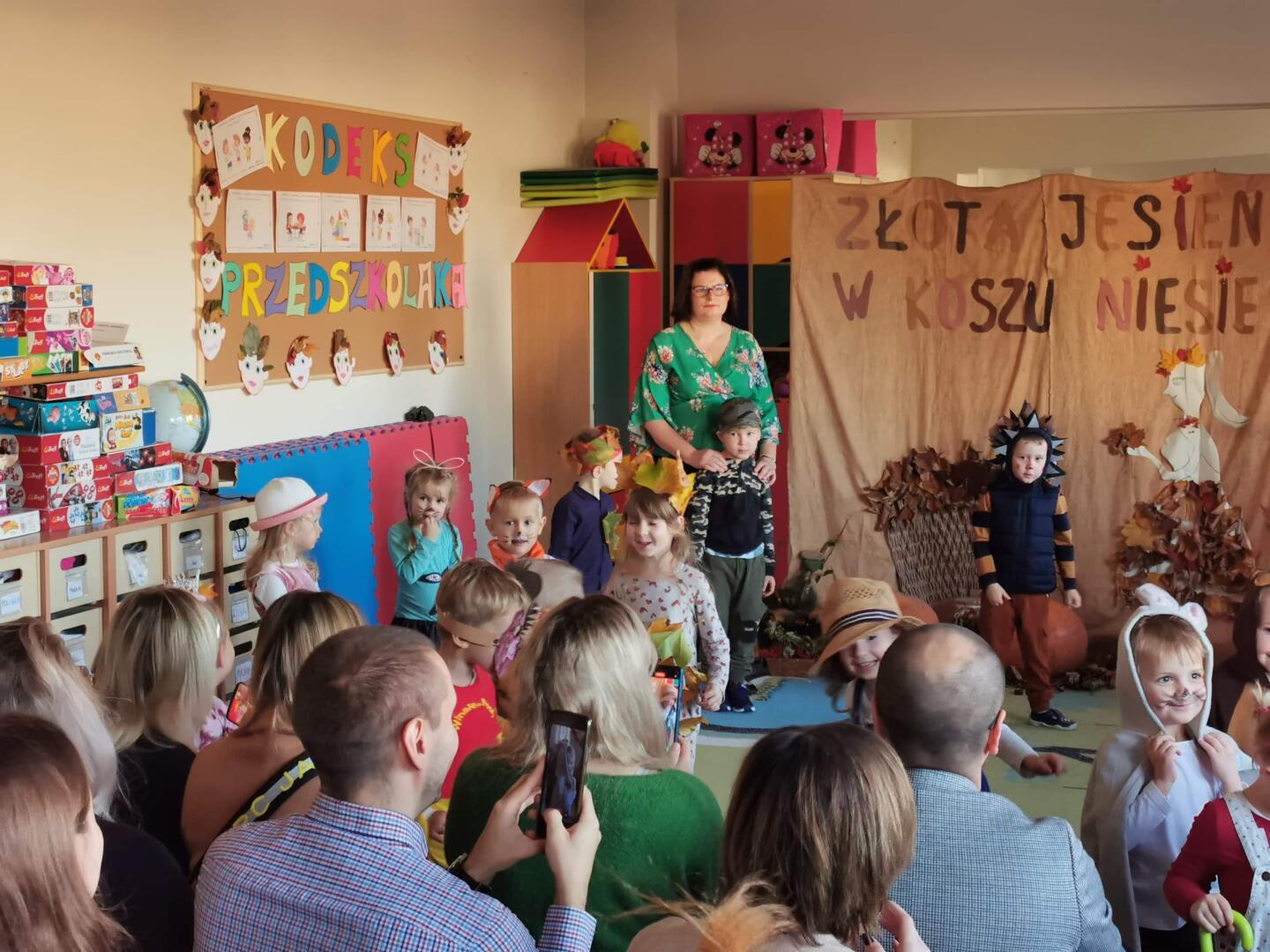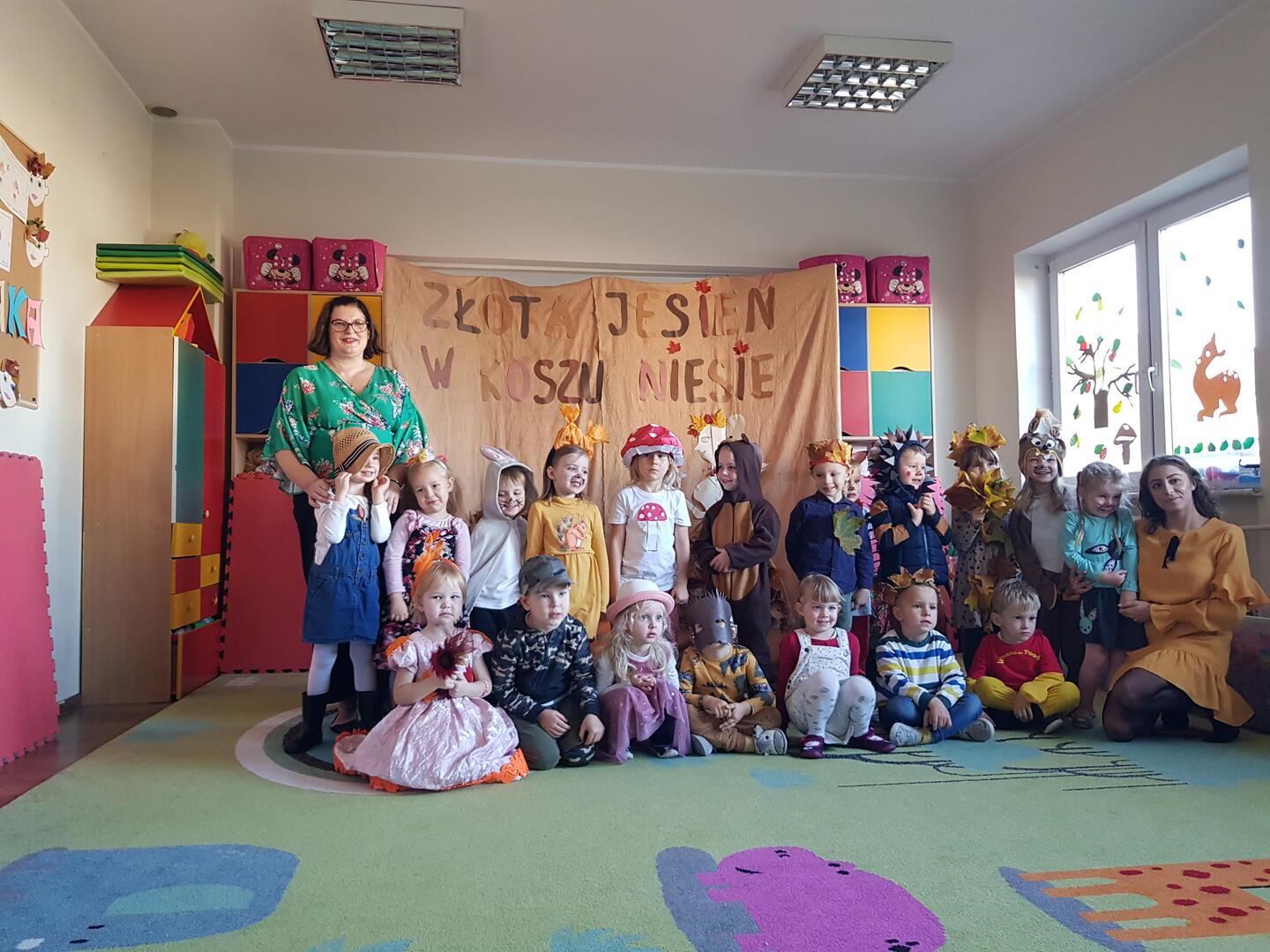Dnia 26 października 2022r. odbyły się przedstawienia jesienne średniaków i starszaków. Nasi podopieczni przekazali nam cenną wiedzę o jesieni, jej darach i skarbach, pięknie recytując i śpiewając jesienne utwory. Dzieci podziękowały Pani Jesień za podarunki, ale też odniosły się do kolejnej pory roku - zimy, zwracając przy tym uwagę na robienie zapasów zawczasu. Grupy wspaniale wcieliły się w odgrywane role, pokazując przy tym jak hojna jest Pani Jesień i jakie cenne dary niesie dla ludzi, zwierząt, czyniąc przyrodę bogatszą, piękniejszą i wielobarwną. Po przedstawieniach każda z grup udała się na słodki poczęstunek. Dziękujemy rodzicom i bliskim za obecność, zaangażowanie i przygotowane stroje dla swoich pociech. ?