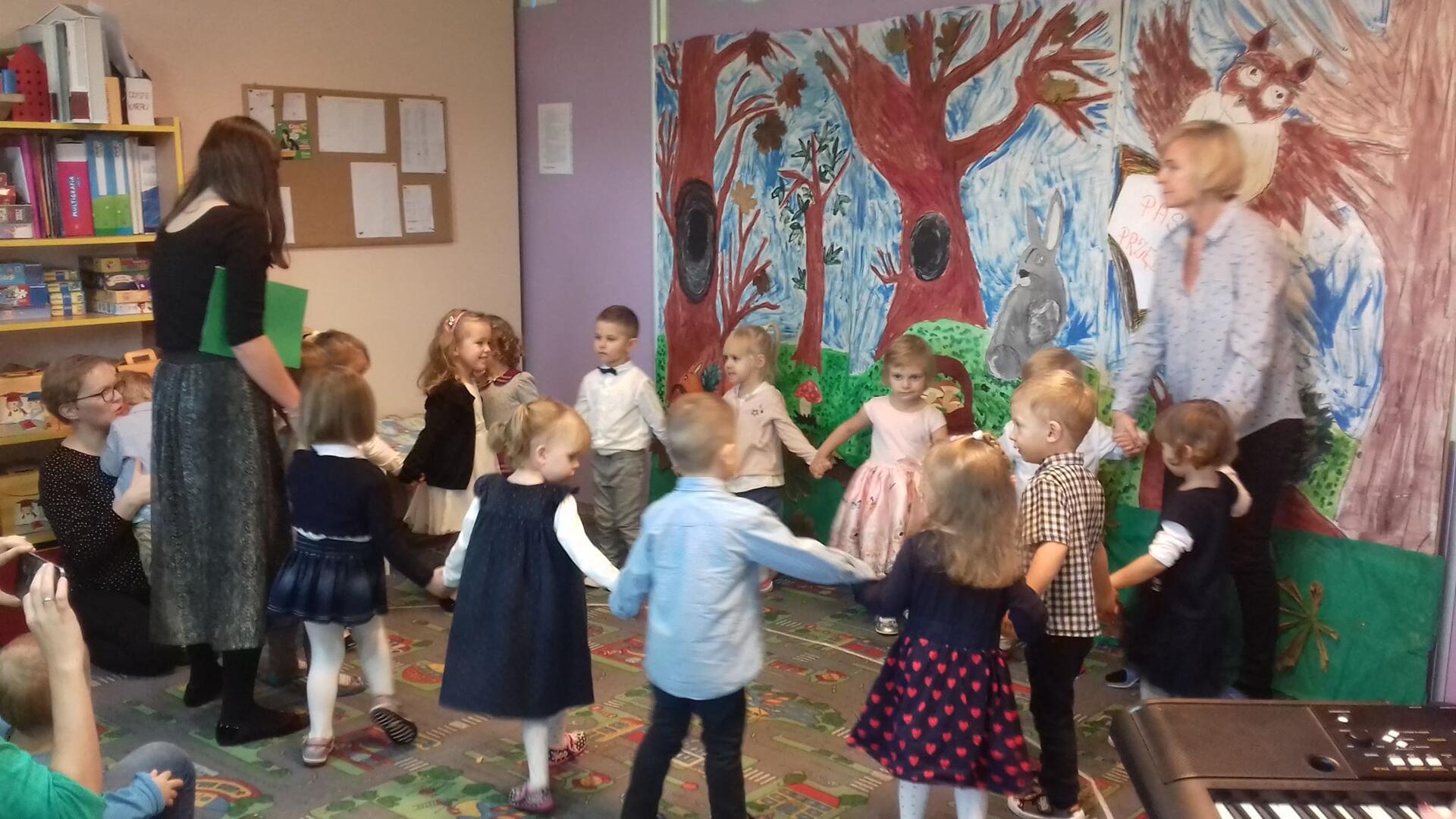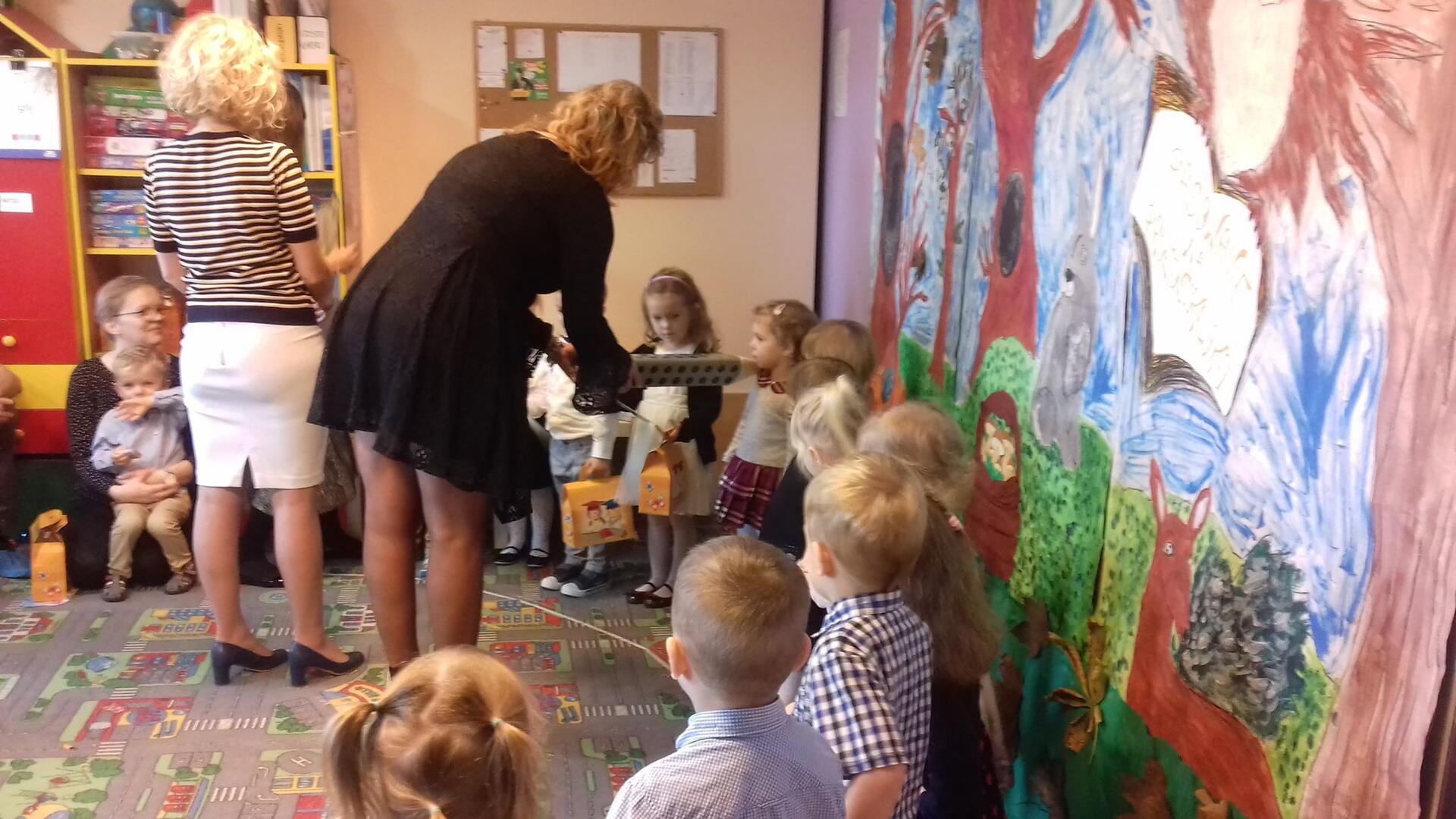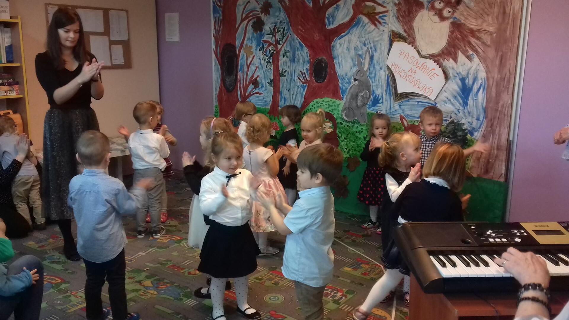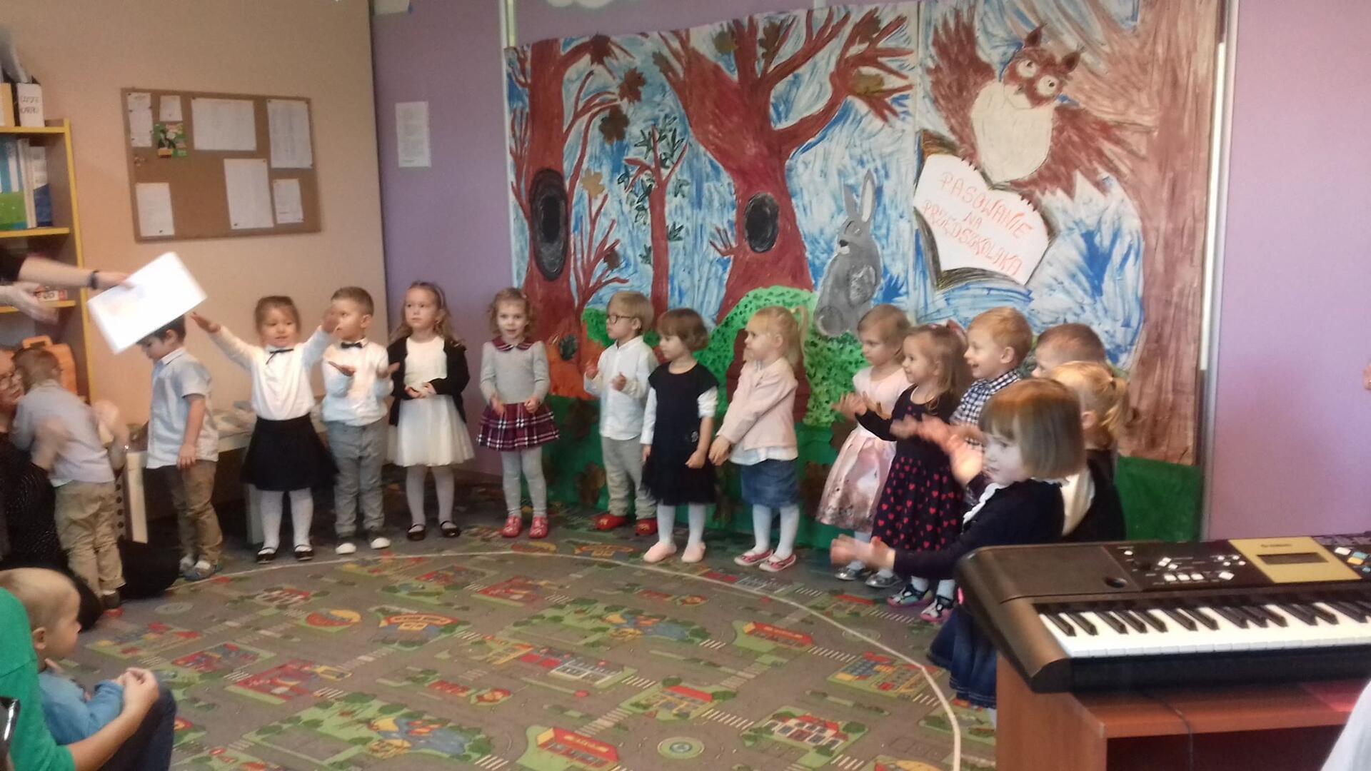Dnia 22.10.2019 roku w naszym przedszkolu odbyło się Pasowanie na Przedszkolaka przygotowane przez grupę maluszków "Paczka Clifforda" Pasowanie na przedszkolaka jest jednym z ważniejszych wydarzeń w życiu każdego przedszkolaka. Na wstępie maluszki serdecznie powitały przybyłych gości piosenkami oraz wierszykami, na koniec złożyły uroczystą przysięgę, która była wstępem do uroczystego pasowania dokonanego przez Panie Dyrektor. Każdy przedszkolak otrzymał pamiątkowy dyplom oraz słodki kuferek. Tego dnia czuć było  w naszym przedszkolu atmosferę prawdziwego święta. Następnie swój występ rozpoczeła grupa "Wesołe Gumisie". Starszaki wspólnie z wychowacą przygotowały program artystyczno-muzyczny o tematyce jesiennej. Za wspaniały występ zostały nagrodzone słodkim poczęstunkiem.