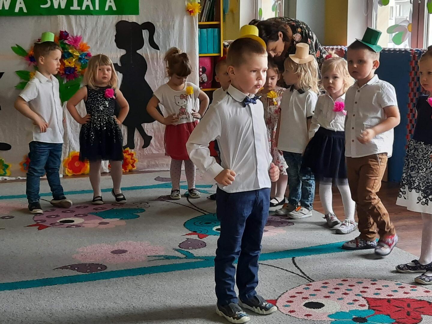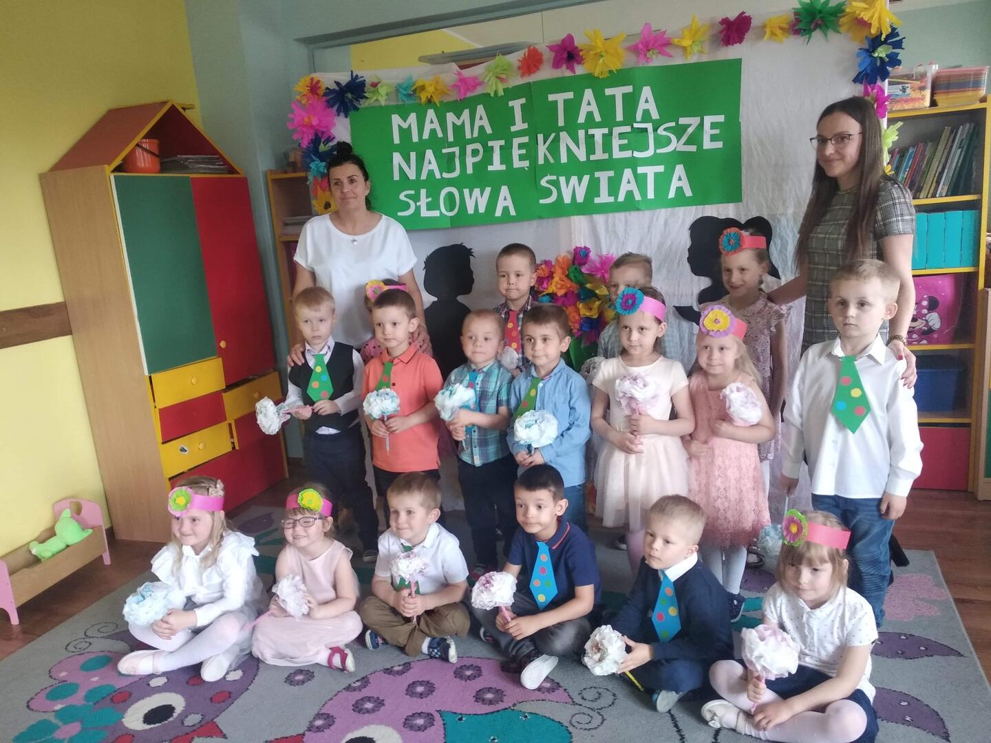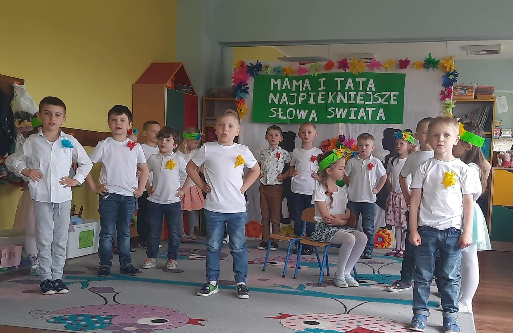 Przedszkolaki juz po występach dla Mamy i Taty. Przedszkolaki od dłuższego czasu przygotowywały się do tej uroczystości. Każda grupa, pod czujnym okiem swoich nauczycielek, przygotowala program artystyczny, aby jak najlepiej zaprezentować się przed swoimi rodzicami. Artyści ubrani w odświętne stroje recytowali wierszyki i śpiewali piosenki, tańczyli. A wszystko to dla Was kochani Rodzice dużo zdrowia pogody ducha.