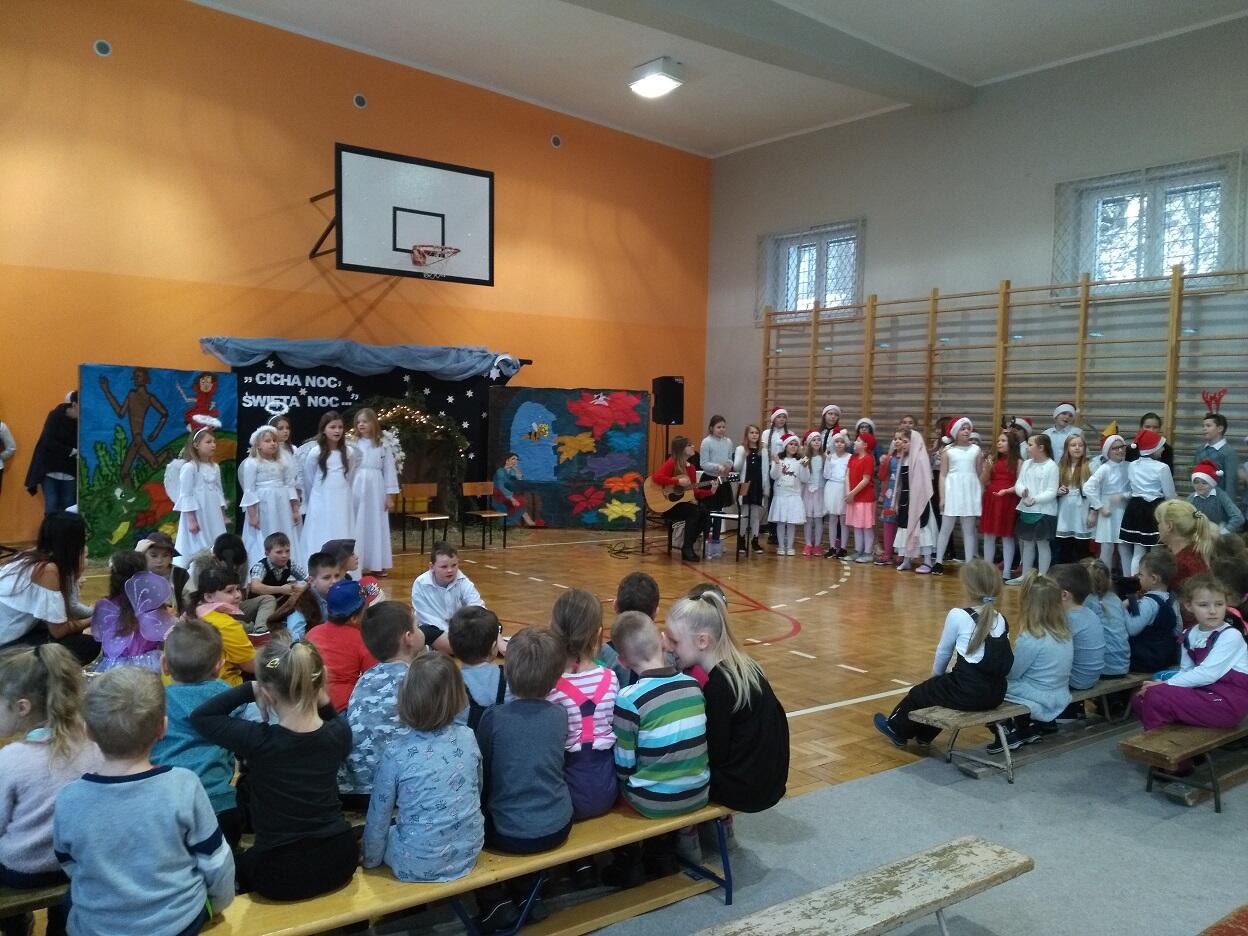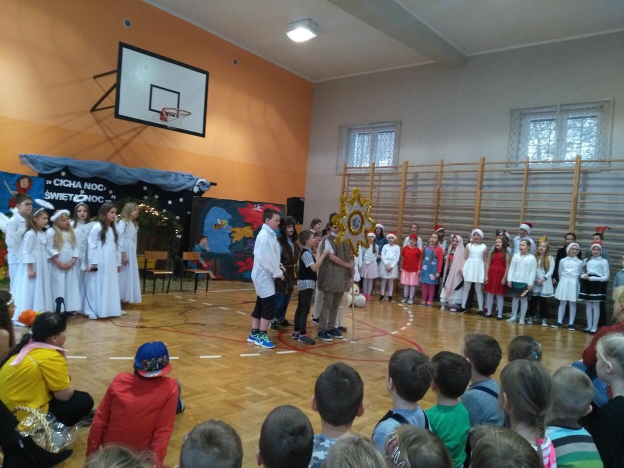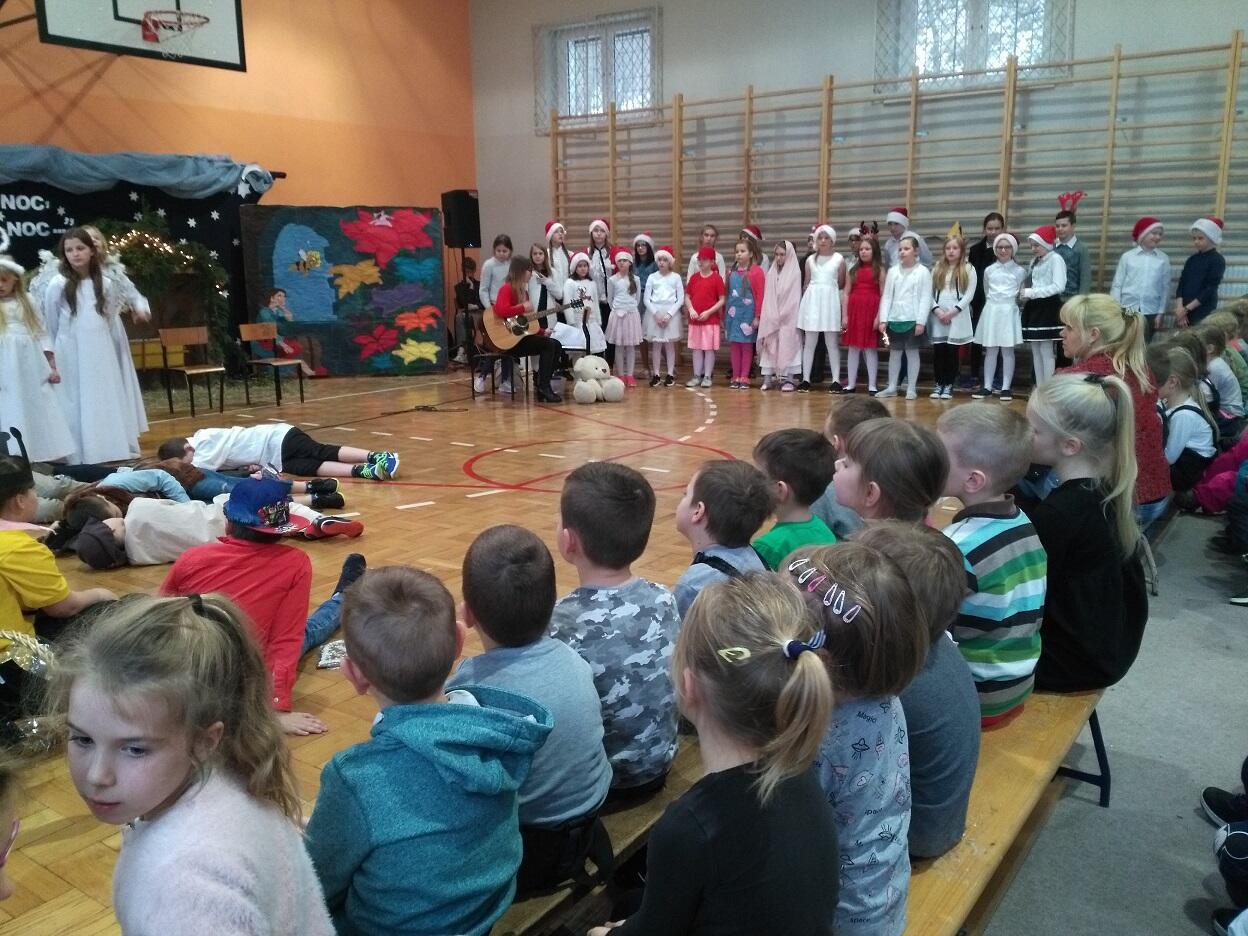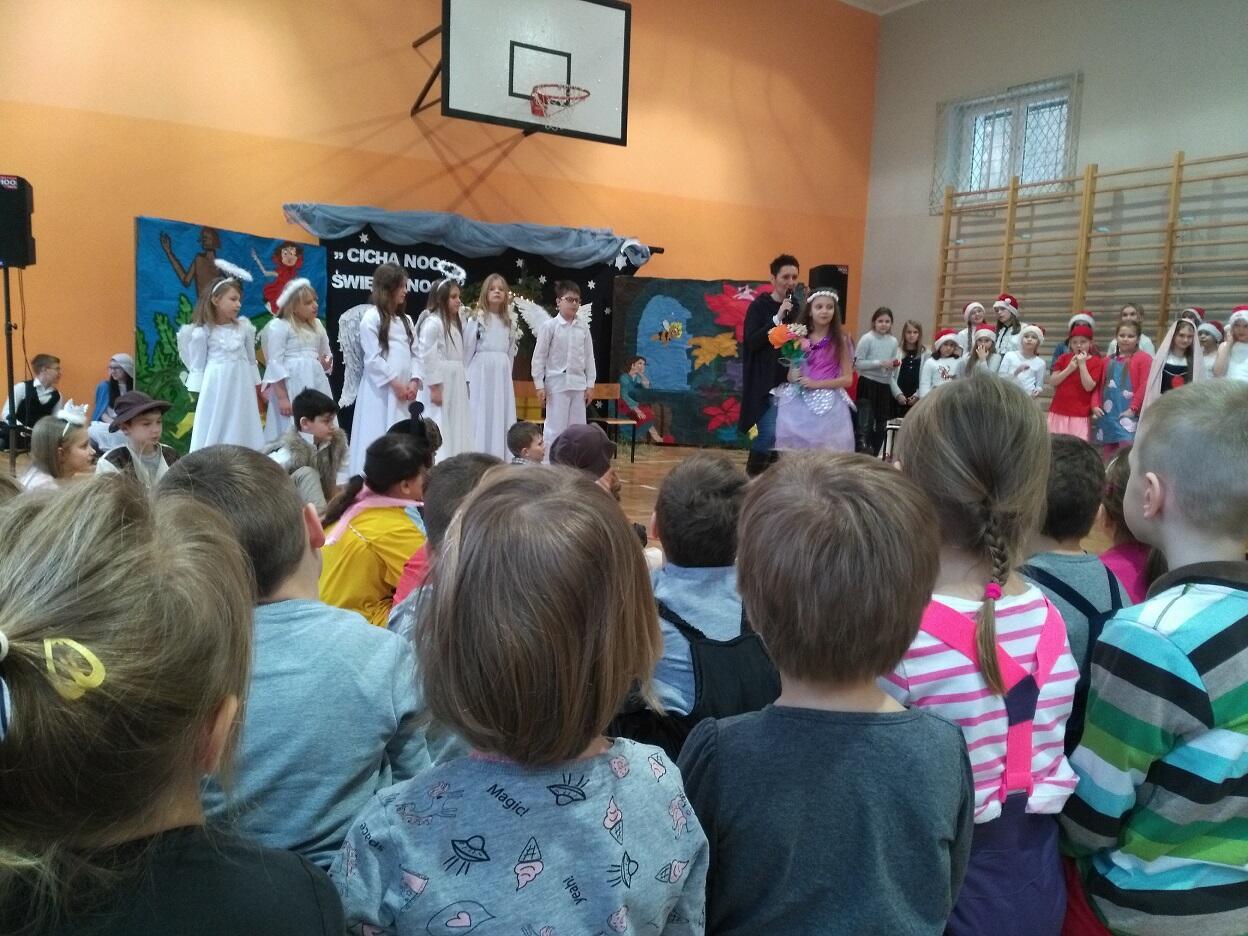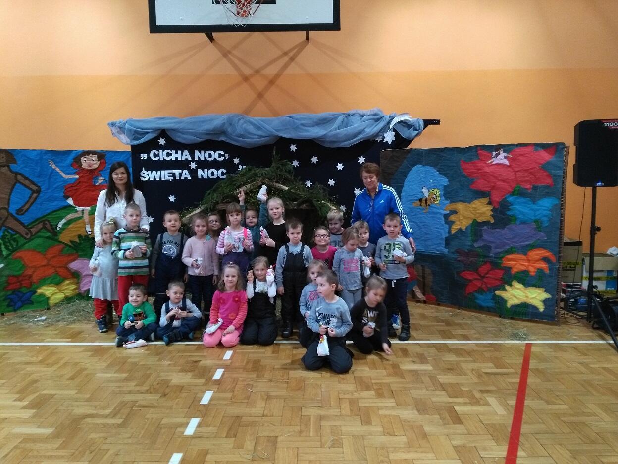 Dnia 04. 01. 2019 roku, dzięki uprzejmości jednej z babć naszych przedszkolaków, zostaliśmy zaproszeni na przedstawienie zorganizowane przez nauczycieli i uczniów Szkoły Podstawowej nr 76 w Gdańsku pt. „Bajkowe jasełka”.  Przedszkolaki z zaciekawieniem śledzilły spektakl oraz podziwiały przepiękne stroje „aktorów”. Widowisku towarzyszyła również piękna muzyka przygotowana przez uczniów i nauczycieli. Po skończonym przedstawieniu przedszkolaki zostały obdarowane słodkim podarunkiem oraz podziękowały za zaproszenie wykonanym przez siebie albumem z rysunkami i słodkim poczęstunkiem dla dzieci biorących udział w spektaklu.