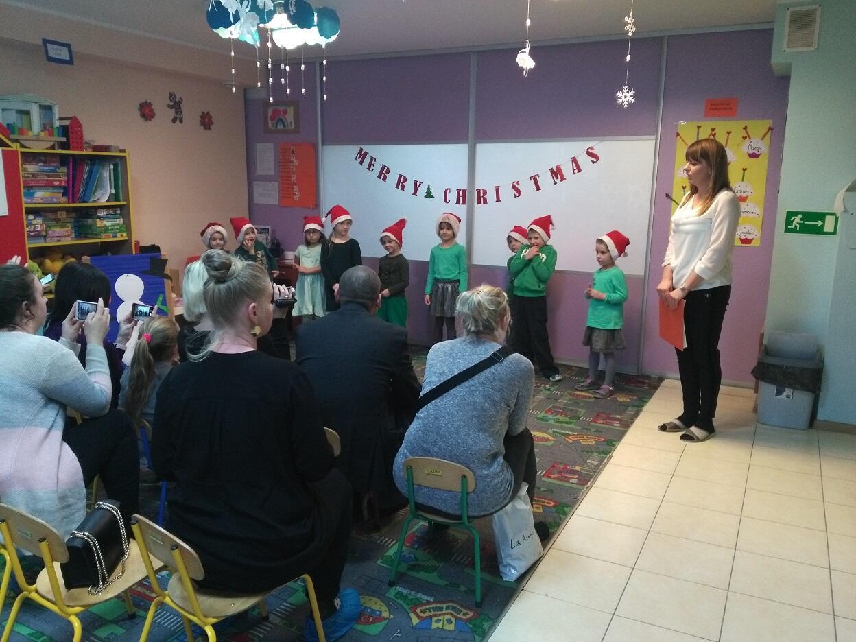 Dnia 19.12.18 roku przedszkolaki z grupy starszaków wraz z Panią Hanią, przygotowały przedstawienie świąteczne w języku angielskim.