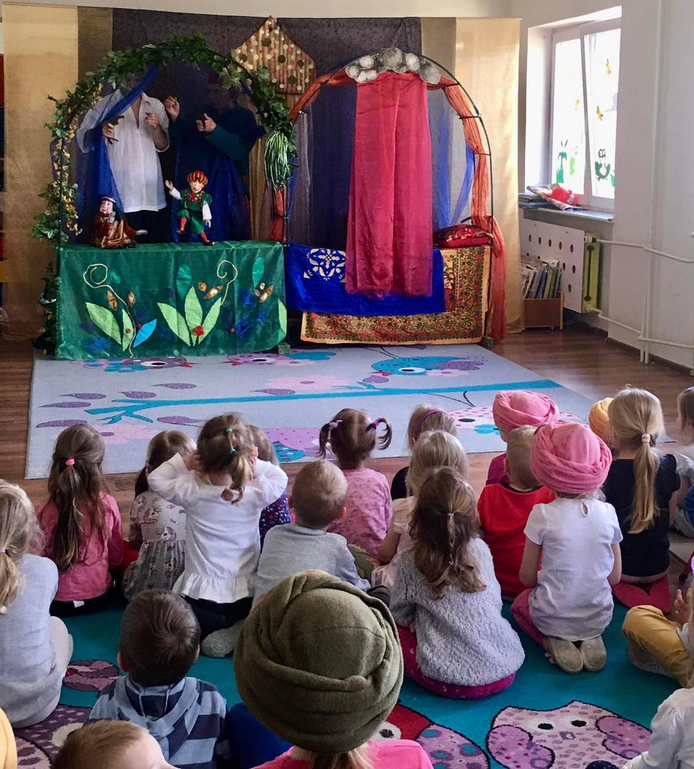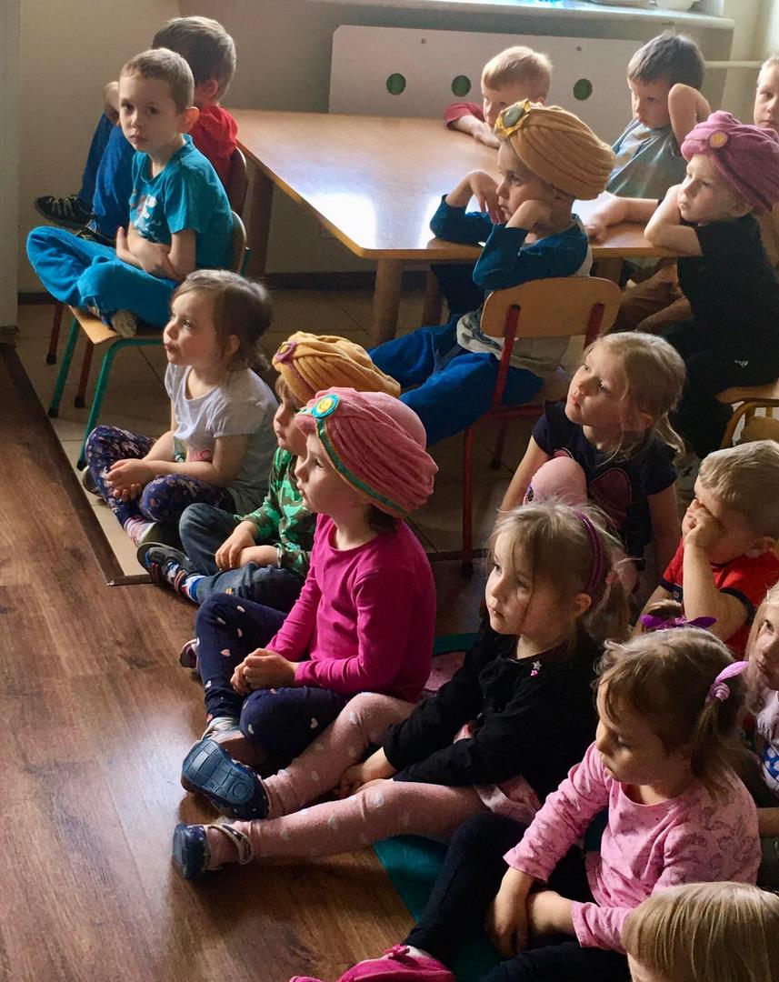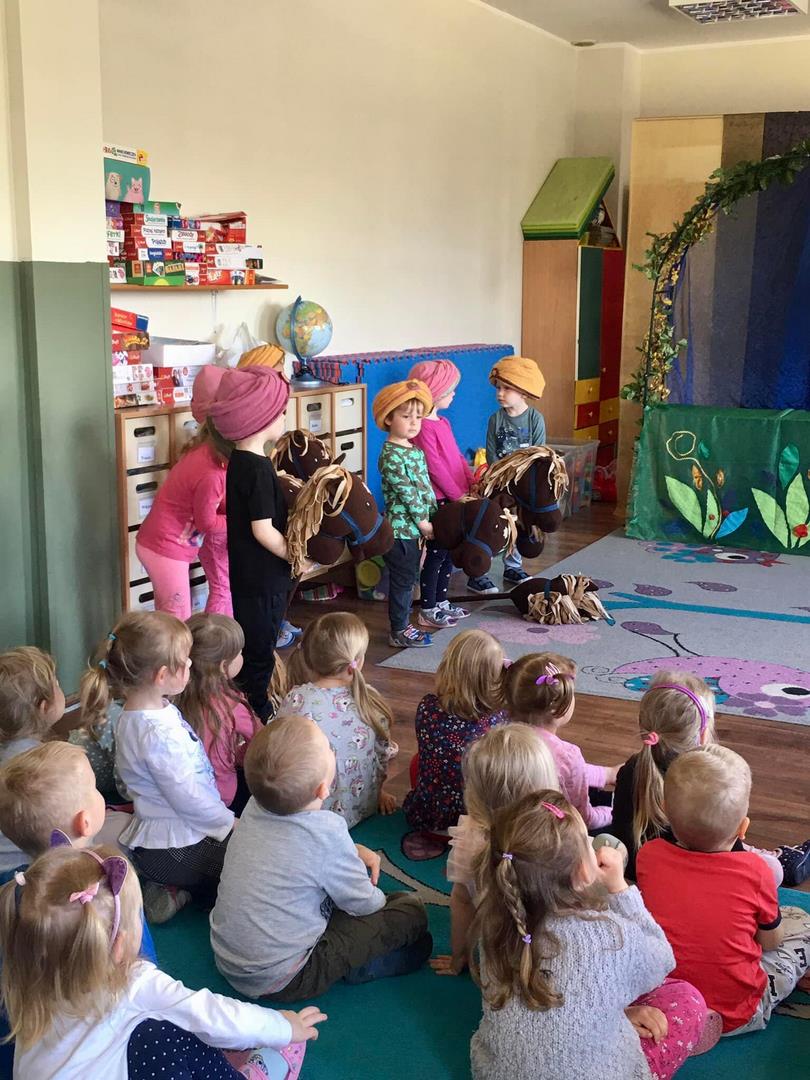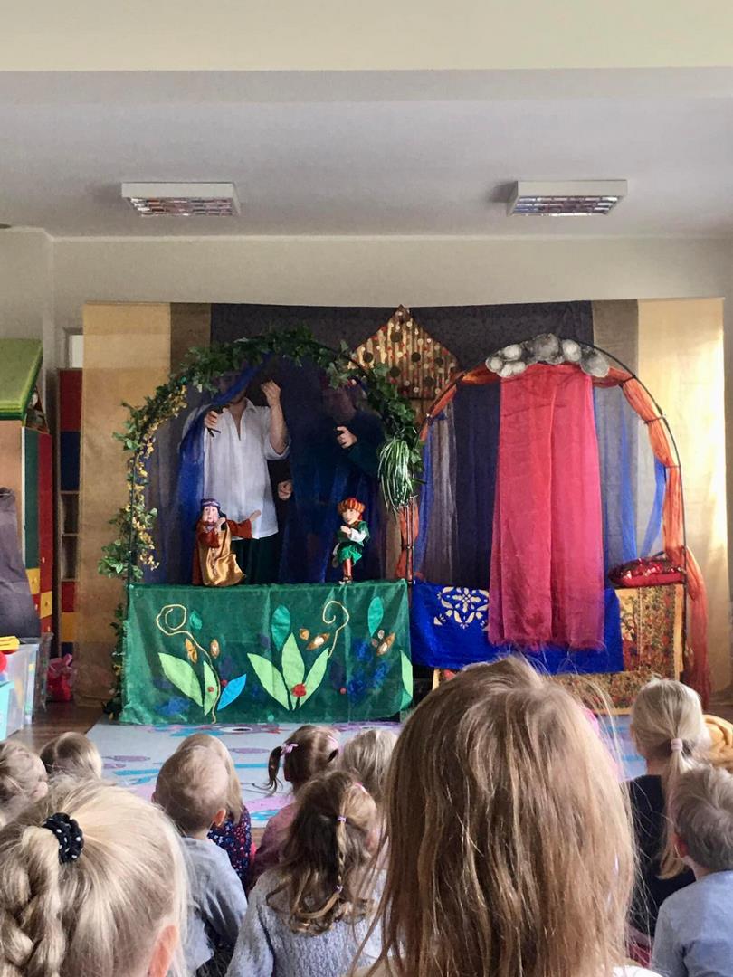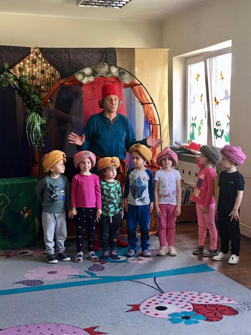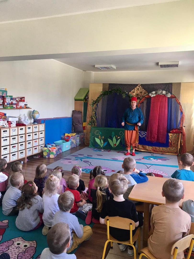 W ubiegły piątek zawitał do nas Teatr Qfer, który zaprezentował przedszkolakom dwie znane inscenizacje bajek ,,Alladyn” oraz ,,Alibaba i czterdziestu rozbójników”. Przedstawienie wywołało dużo radości i uśmiechu na twarzach naszych podopiecznych. Nie tylko mogli oni obejrzeć wspaniała grę aktorską z udziałem kukiełek, ale też zostały wciągnięte w wir opowieści o rozbójnikach, których głównym zadaniem było rabowanie i pilnowanie sezamu przepełnionego licznymi bogactwami. Pomocnicy perskiego przywódcy starali się zaatakować Alibabę, jednak zostali przechytrzeni przez służącą Alibaby.