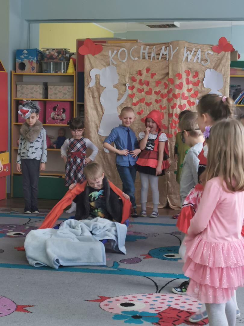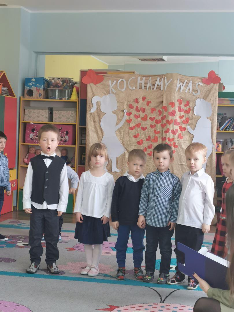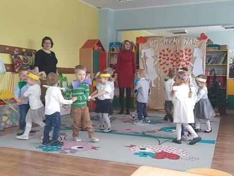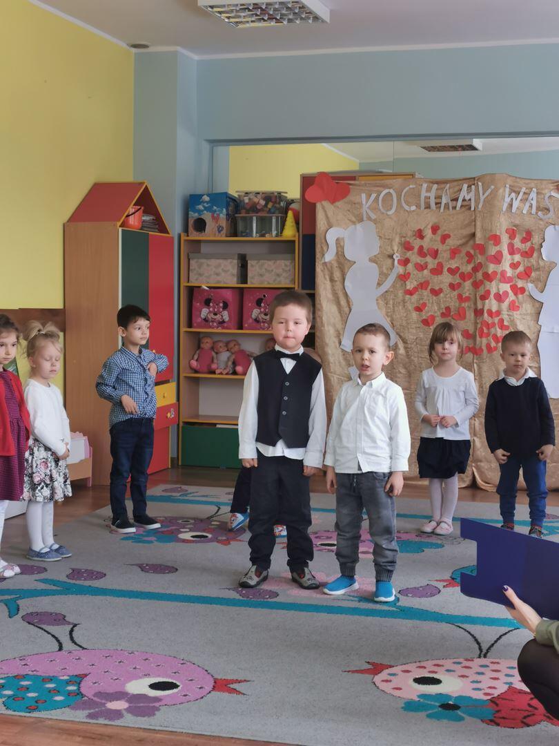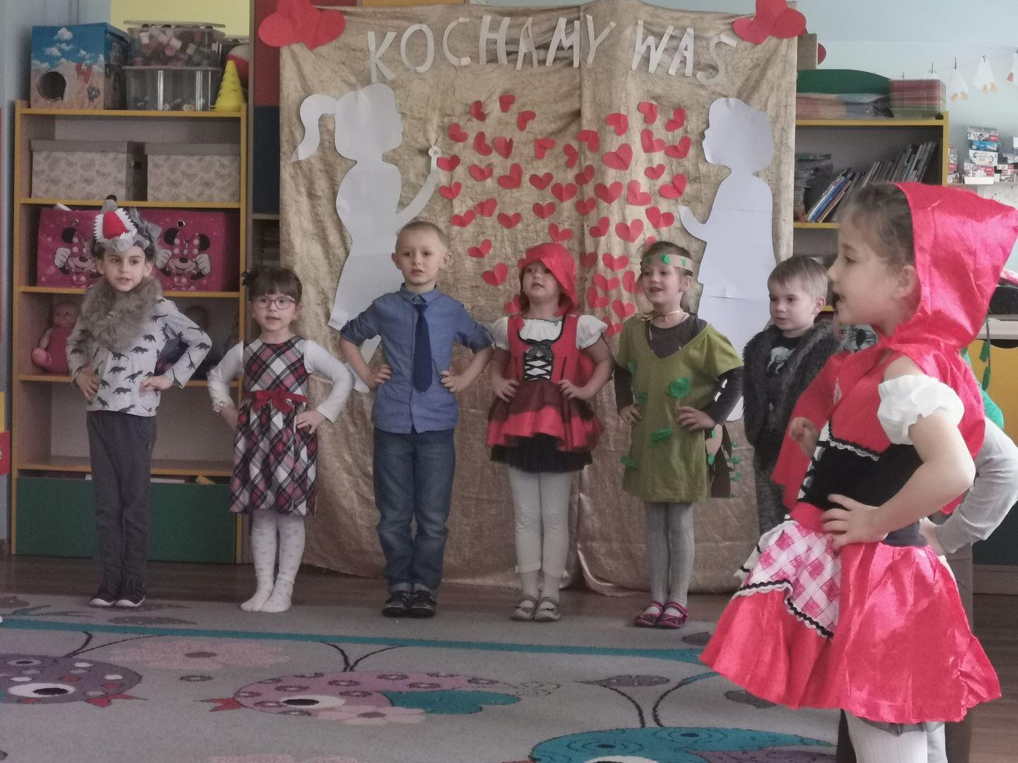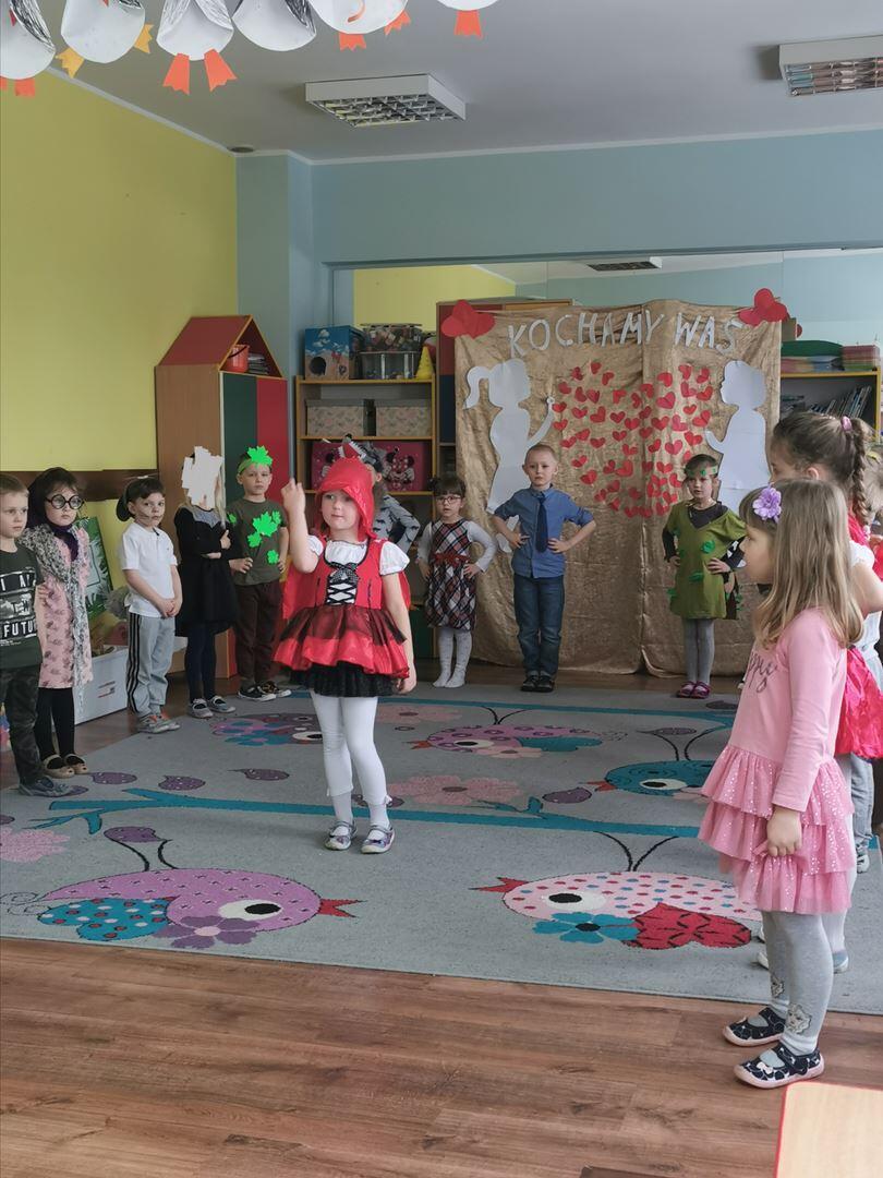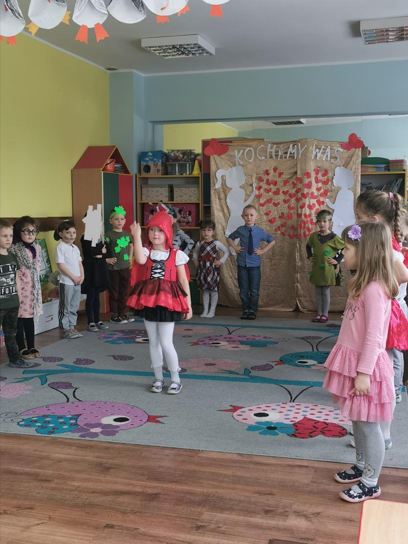 Przedszkolaki już po występach dla Babci i Dziadka. Choć z lekkim opóźnieniem, dzieci włożyły całe serce by wypaść jak najlepiej. Maluszki i średniaki śpiewały piękne piosenki i recytowały wierszyki, a grupa starszaków wystawiła przedstawienie pt. : " Czerwony Kapturek". A to wszystko dla Was kochani dziadkowie. Jeszcze raz w imieniu wszystkich wnucząt życzymy dużo zdrówka i pogody ducha.
