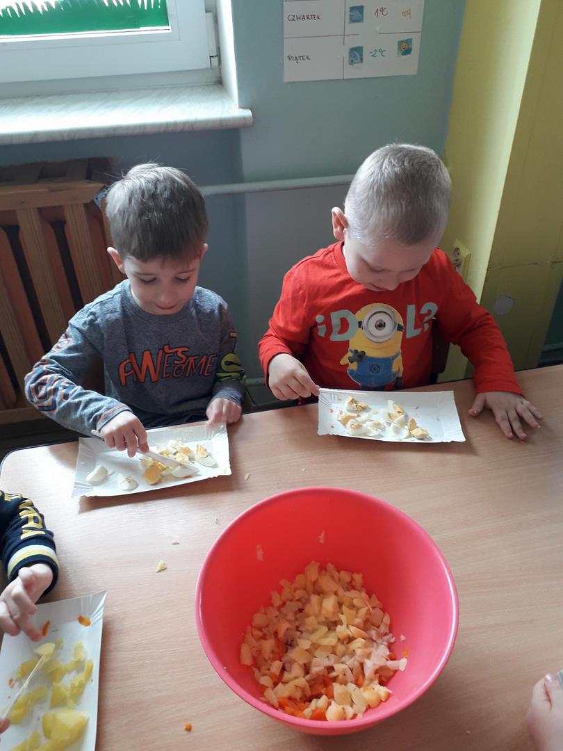 Nasze starszaki są pracowite, tym razem zrobili przepyszną sałatke.