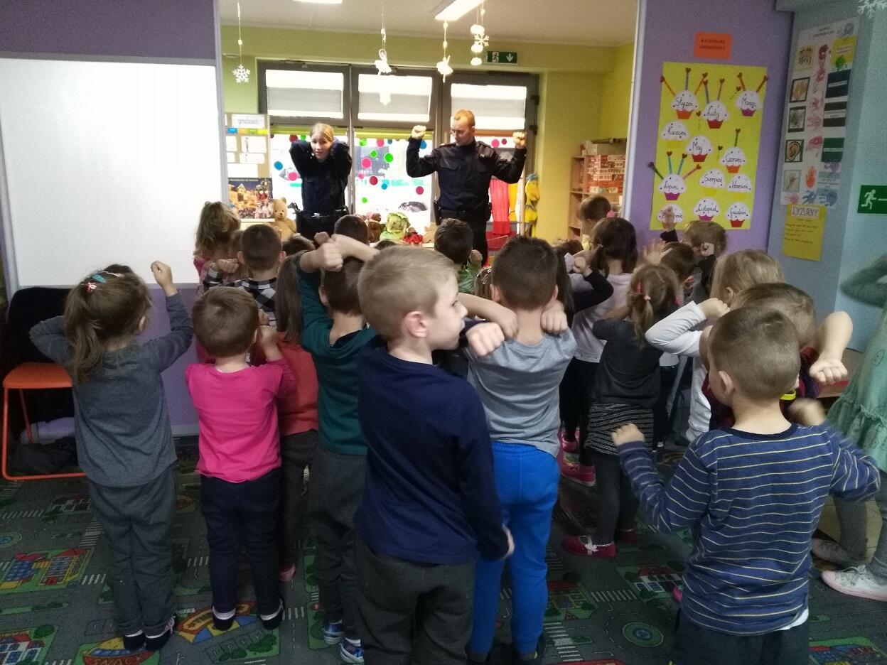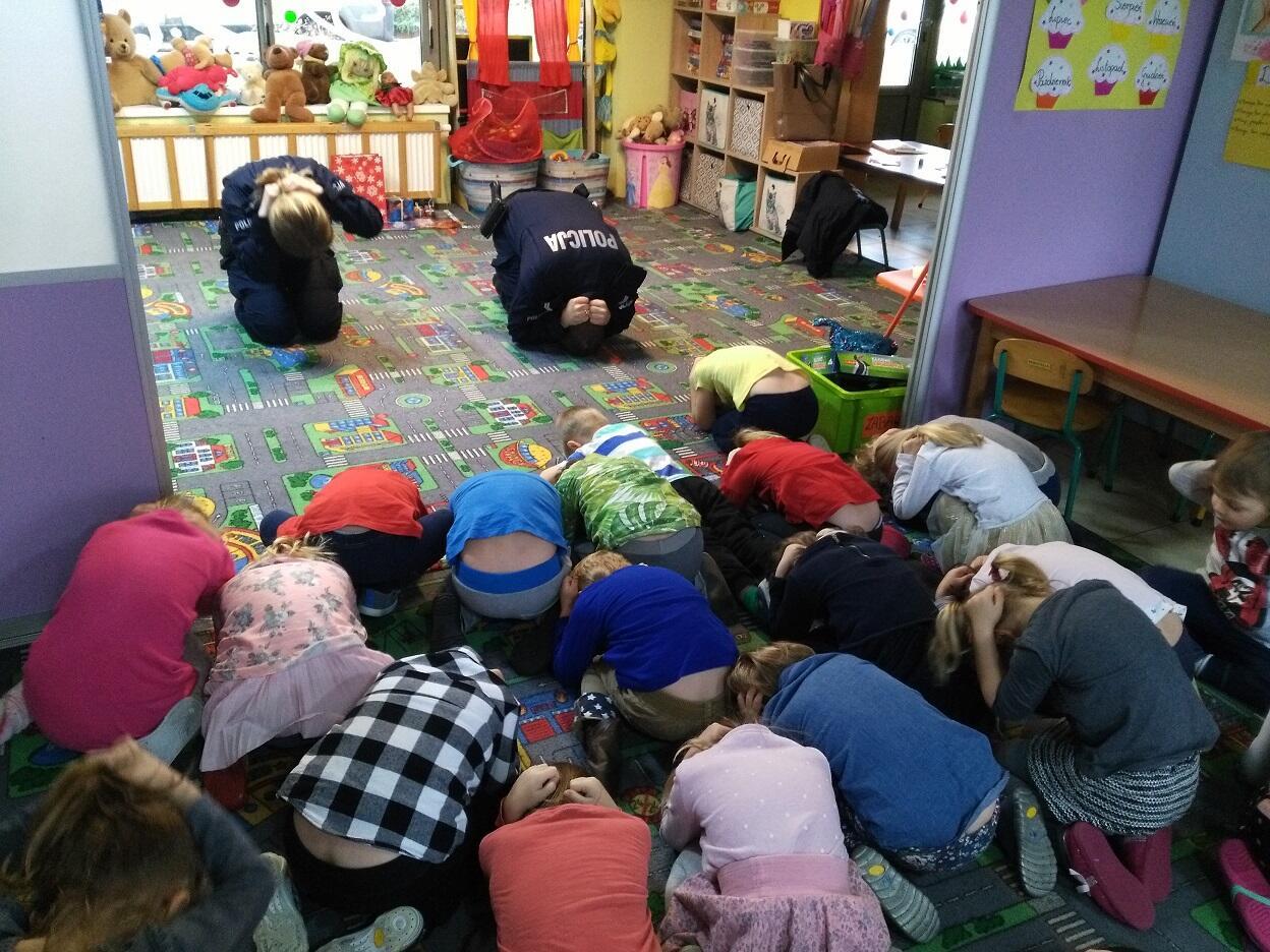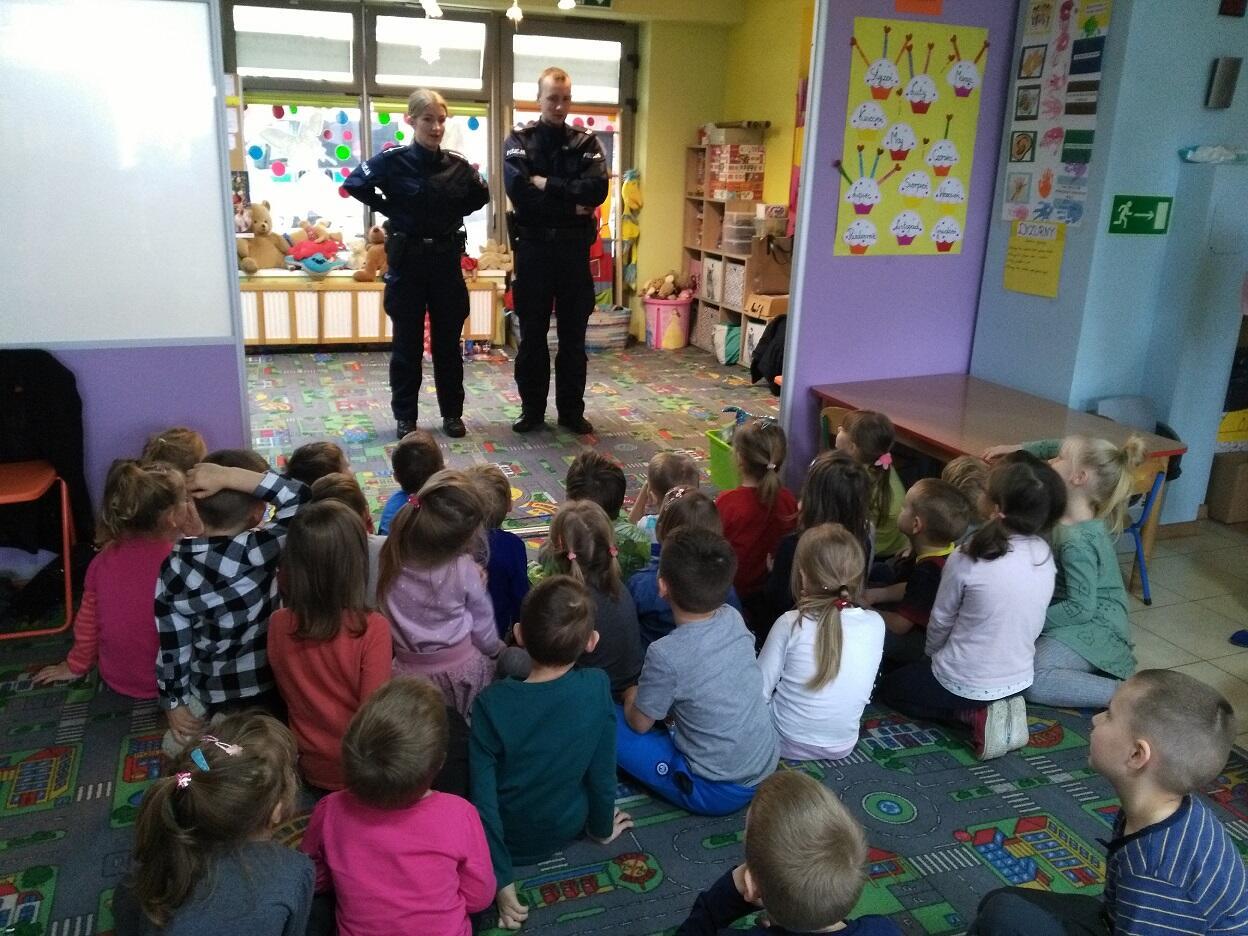 Dzieci zapoznały się z zasadami bezpiecznego poruszania się podczas przechodzenia przez jezdnię, zapamiętały ważne numery alarmowe tj. 112 i 997 oraz miały okazję zapoznać się z prawidłową postawą podczas ataku psa. Policjanci uświadomili przedszkolaków o konieczności jeżdżenia w fotelikach z zapiętymi pasami,a także o nie zawieraniu znajomości z obcą osobą dorosłą.