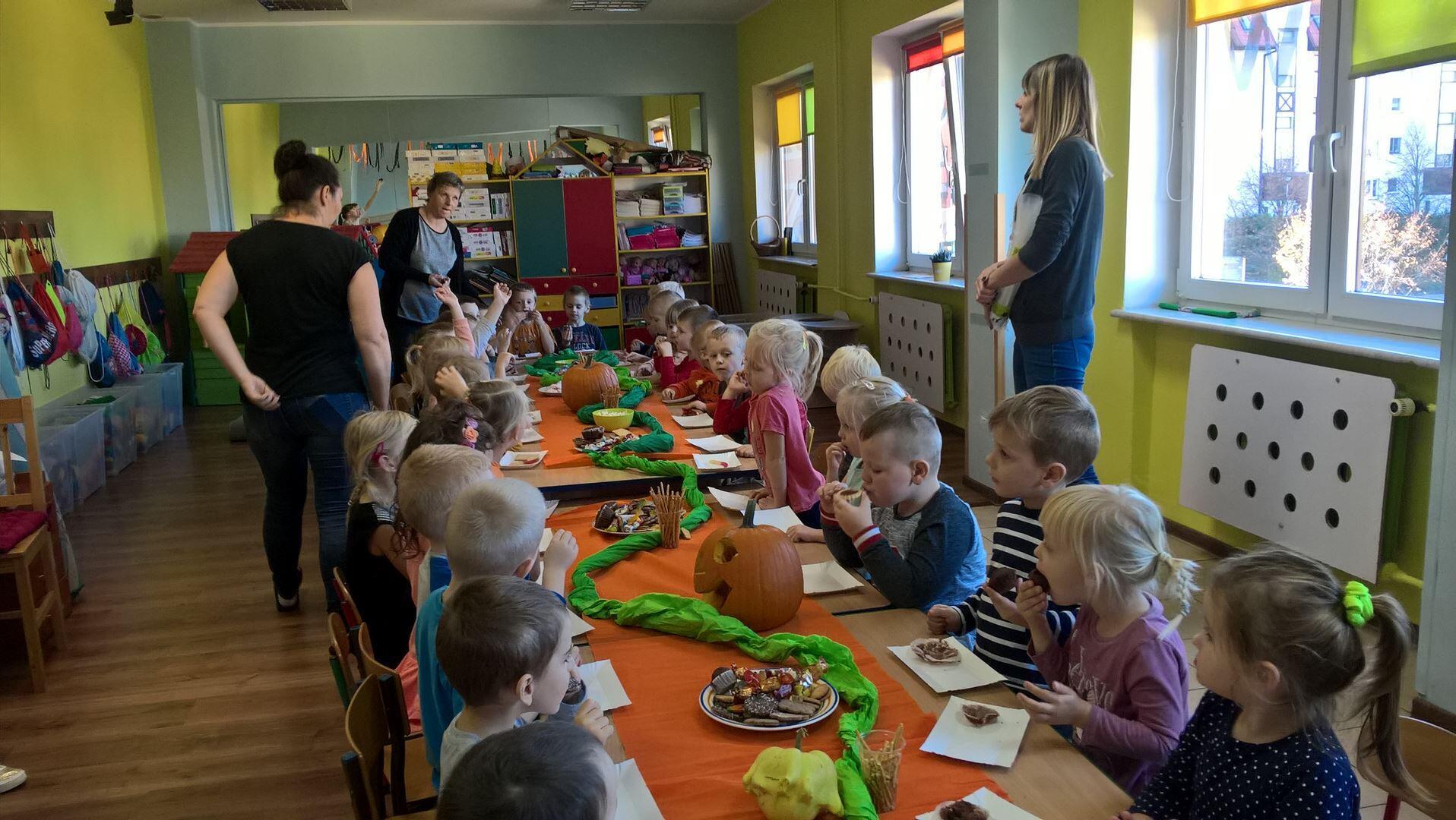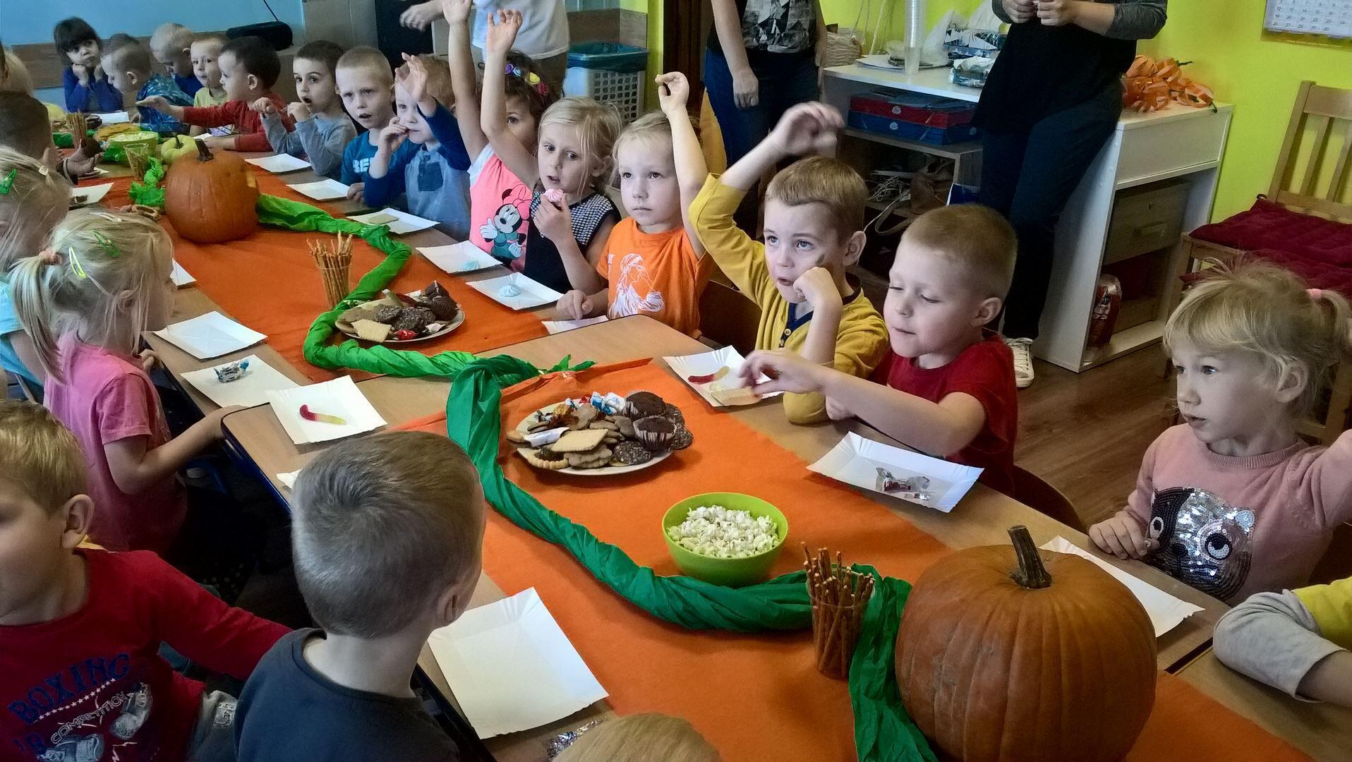 31 października w naszym przedszkolu obchodziliśmy "Święto Dyni". Jak sama nazwa wskazuje głównym bohaterem dzisiejszego dnia była dynia. Przedszkolaki dowiedziały się o pochodzeniu dyni, potrawach z dyni oraz sposobach jej wykorzystania. Dzieci wspólnie z paniami wydrążyły dynię oraz wykonały dyniowe ozdoby. Nie zabrakło także wspólnego poczęstunku.