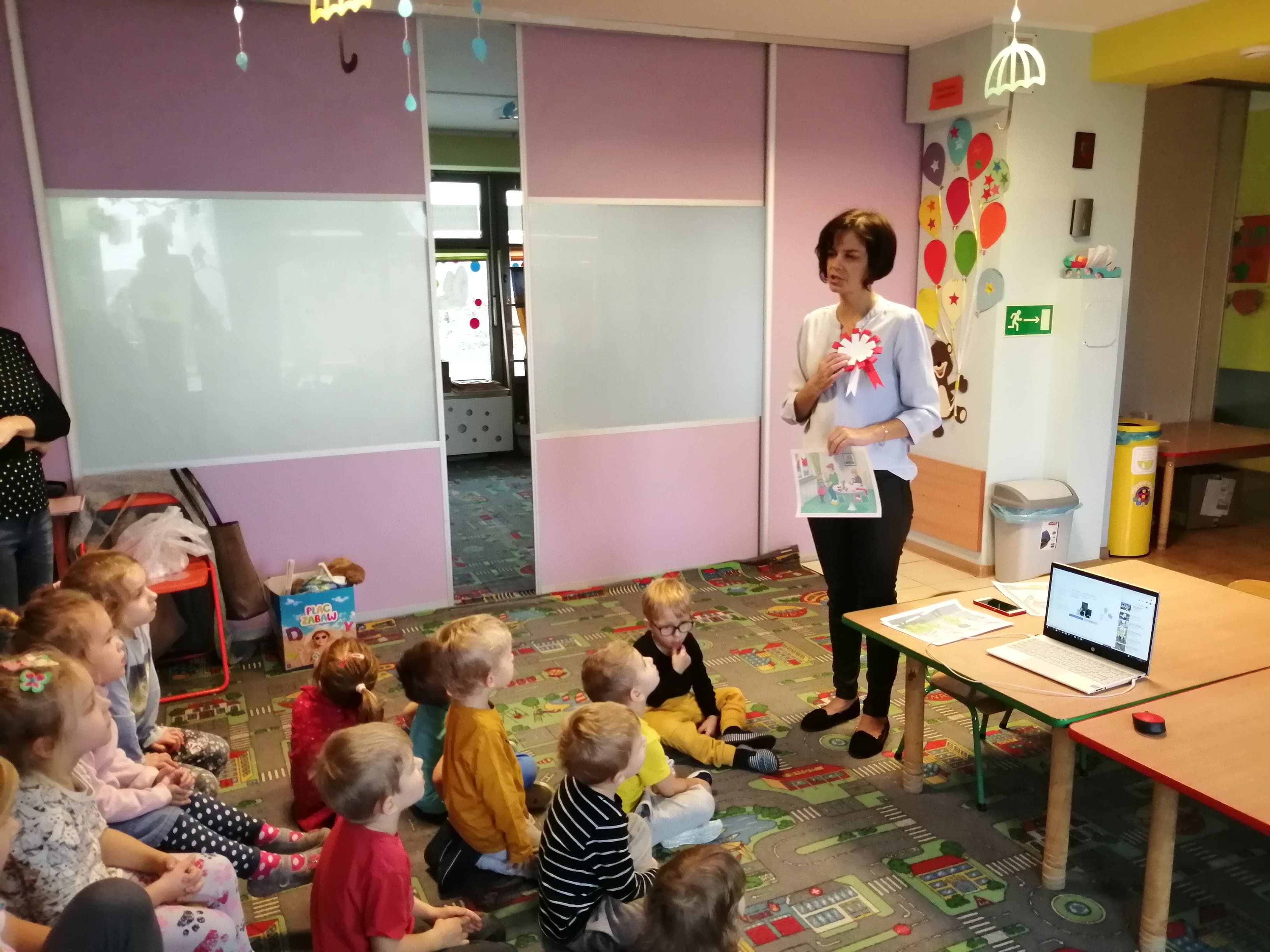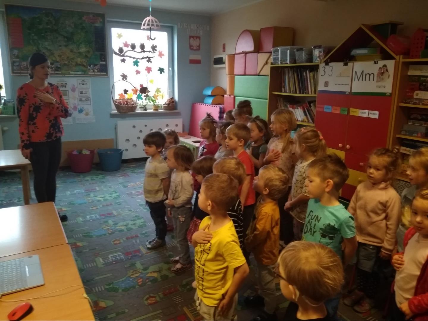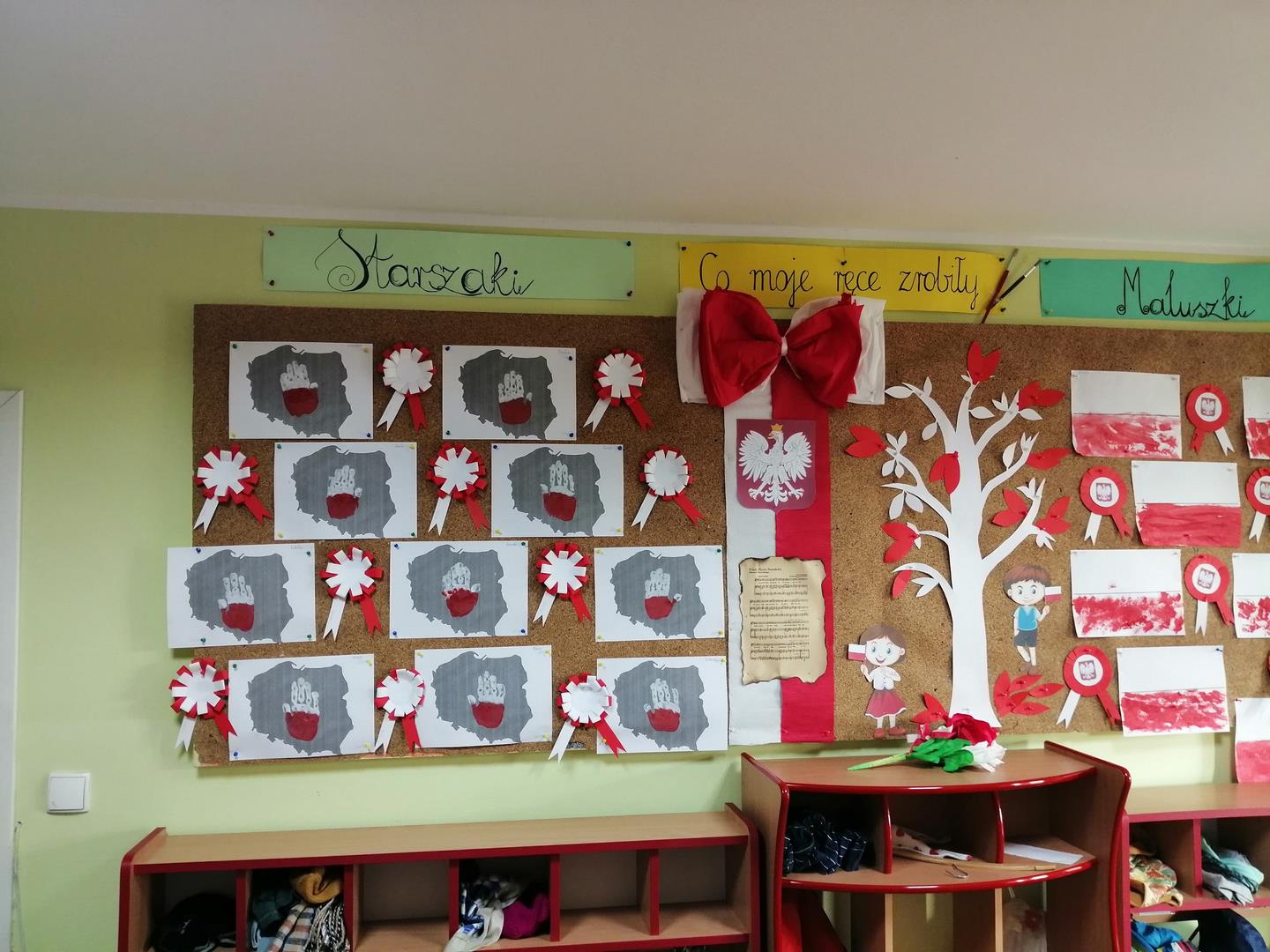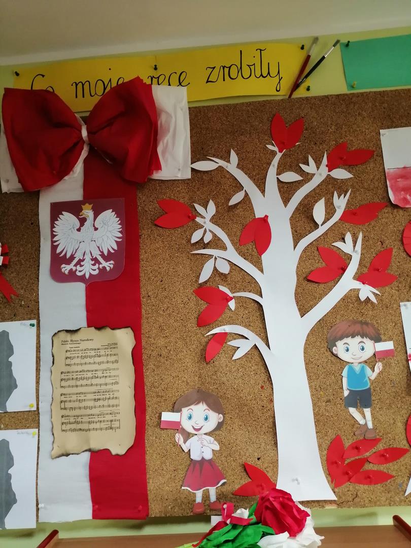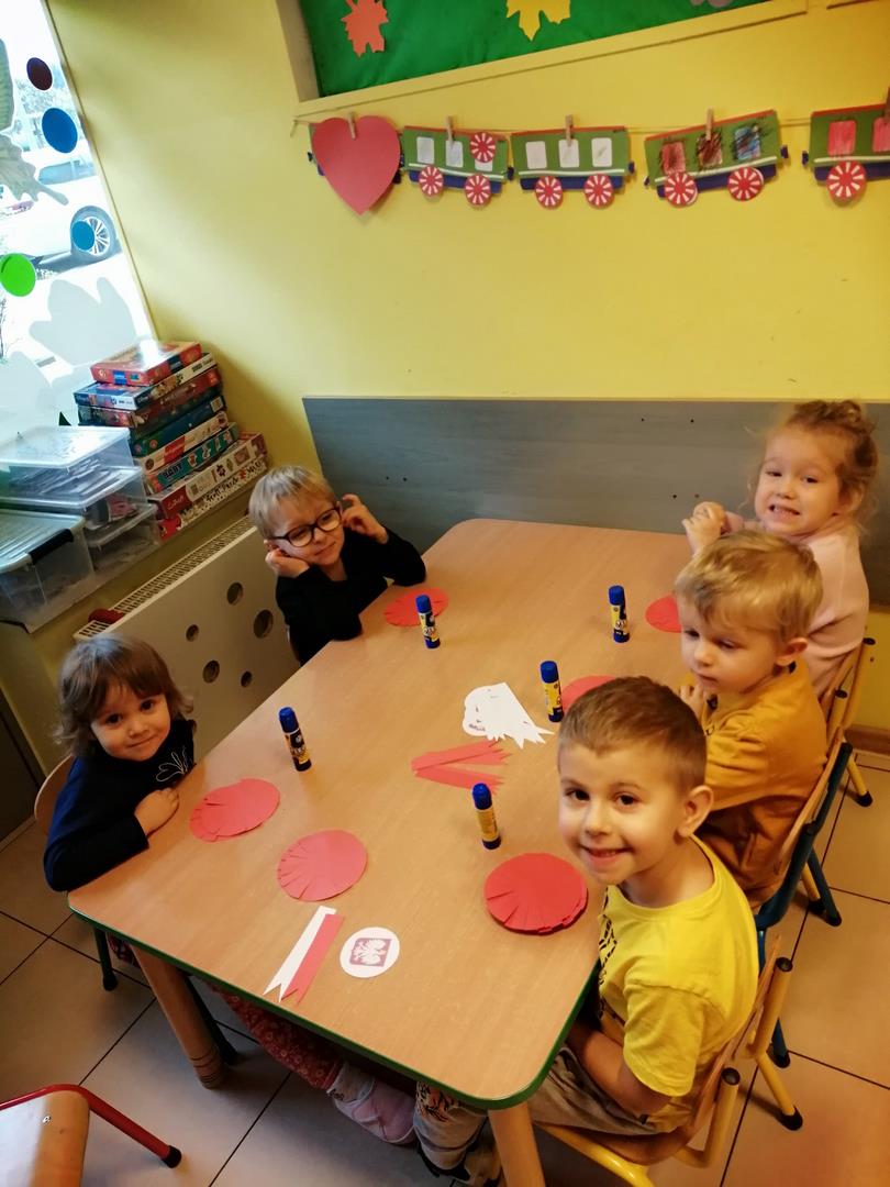W naszym przedszkolu w dniu 8 listopada obchodziliśmy Święto Niepodległości. Obchody uroczystości rozpoczelismy od uroczystego odśpiewania "Mazurka Dąbrowskiego". Wychowawczynie dokonały, krótkiego rysu historycznego dotyczącego Święta Niepodległości. Przedszkolaki  utrwaliły   wiadomości na temat symbolów narodowych tj. hymn, flaga oraz godło. Przy pomocy krótkiego filmu edukacyjnego "Polak mały-symbole narodowe".  Na zakończenie uroczystości dzieci przy pomocy wychowawców wykonały kotyliony oraz prace plastyczne w barwach narodowych. Głównym celem spotkania było kształtowanie miłości i przywiązania do kraju ojczystego, jego kultury i tradycji oraz poznanie symboli narodowych naszego kraju.