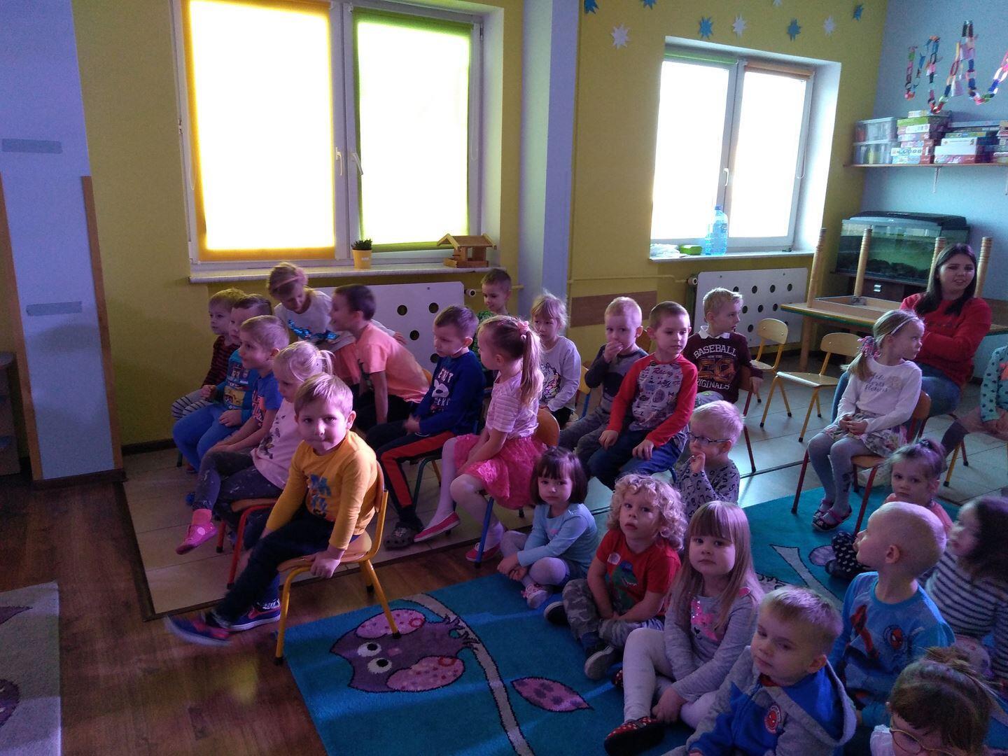 23 stycznia ze swoim zimowym przedstawieniem przybył do nas Teatr "Katarynka". Przedstawienie trzymało w napięciu, było nieprzewidywalne, a co najważniejsze wymagało aktywności ruchowej od naszej małej widowni. Dzieci wspólnie z aktorami tańczyły, śpiewały, pomagały na scenie. Oprócz śmiechu i pozytywnej energii z przedstawienia wynieśliśmy morał - pamiętajmy, aby dbać o naszą planetę i jej nie zaśmiecać!