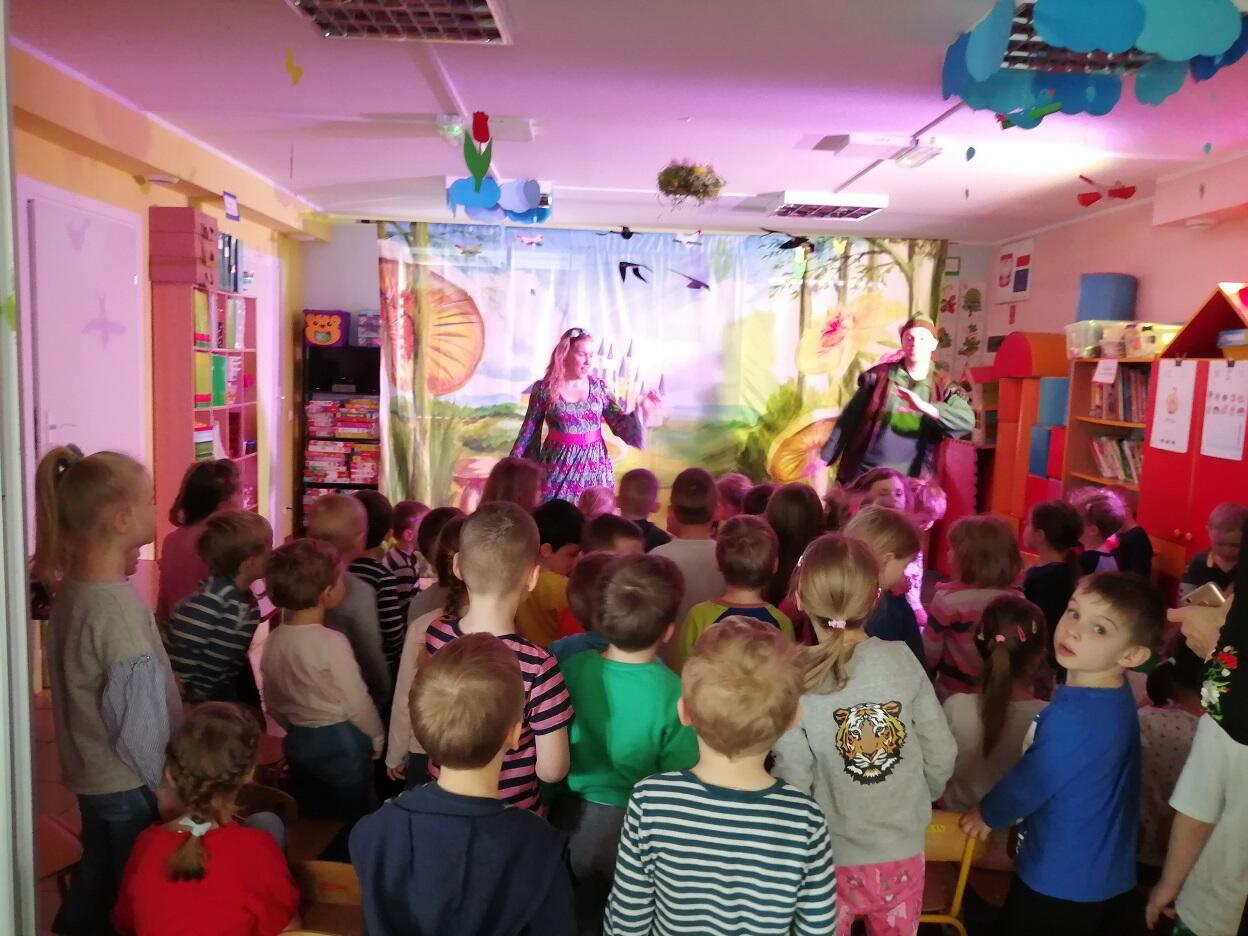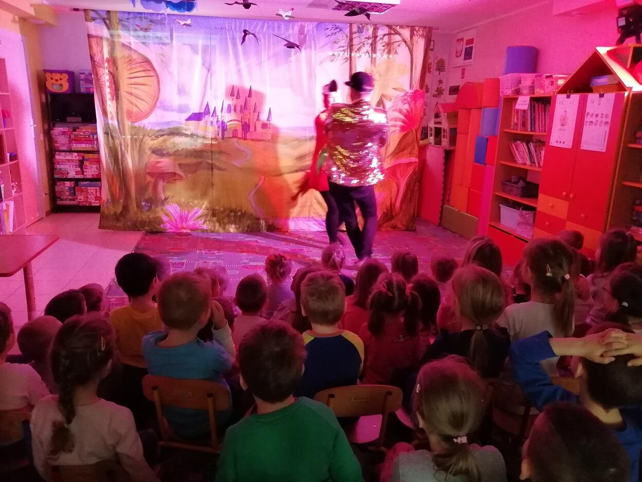 Dnia 7.03 nasze przedszkole ponownie odwiedzili aktorzy z Teatru Katarynka, którzy zaprezentowali musical pt. "Księżniczka Rosa i Klimek" jest to baśniowa opowieść o dwójce przyjaciół – księżniczce Rosie i Klimku, którzy napotkaja na swej drodze przebiegłego i podstępnego czarodzieja Zoltana.