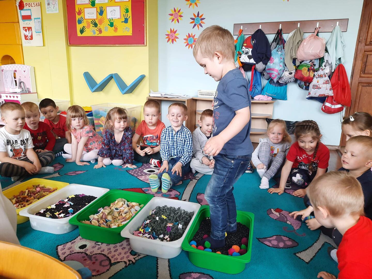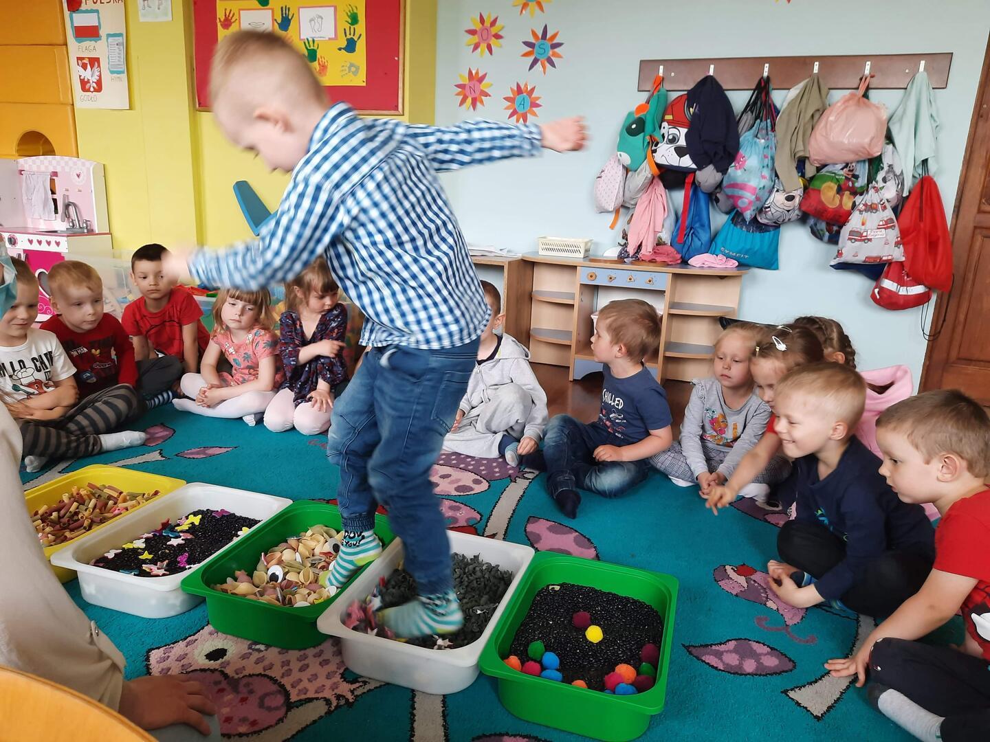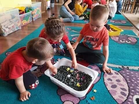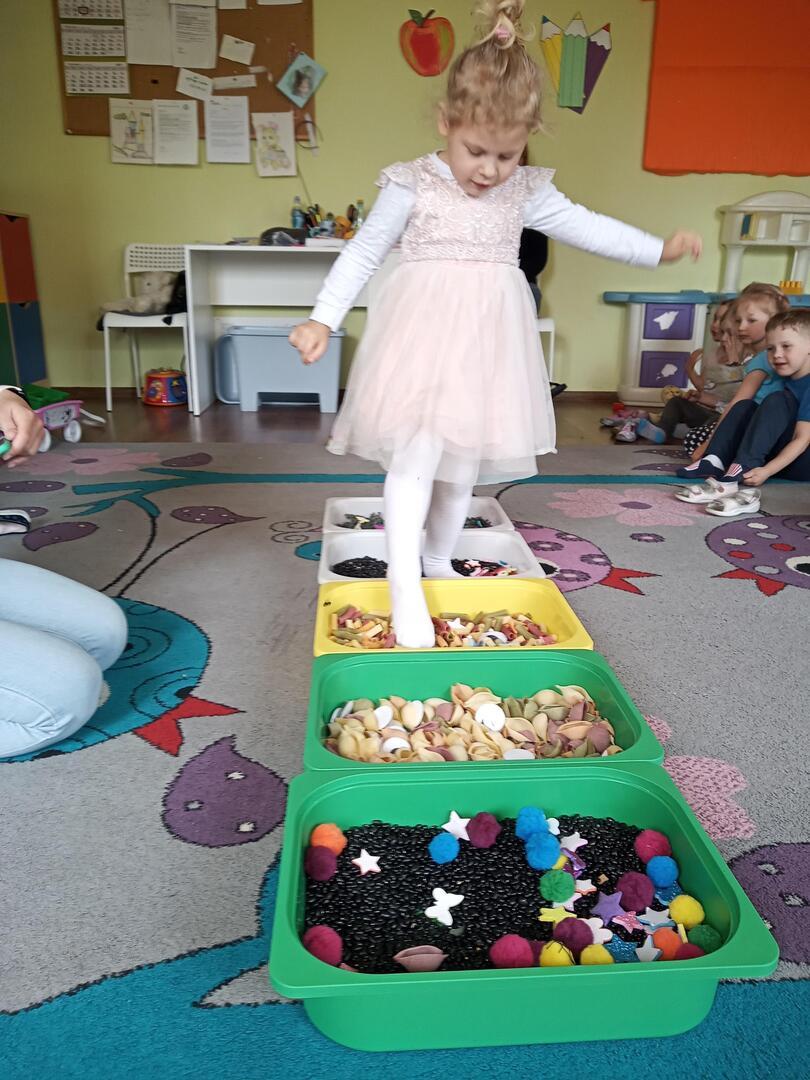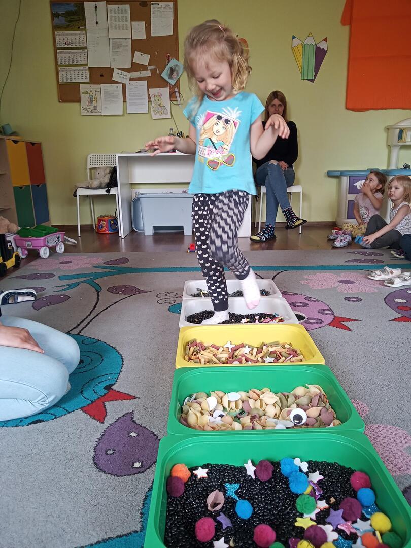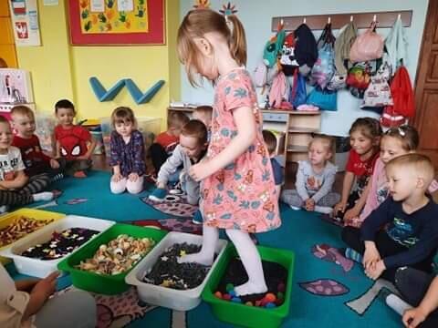 W piątek dnia 21.05.2021r. odbyły się zajęcia z Teatralii. Dzieci brały udział w zabawach sensorycznych, dzięki którym dzieci mogły poznawać  I doświadczać uważnie korzystać z różnych zmysłów, rozwijając wzrok , i dotyk. Dzieci  ćwiczyły sensorykę  także  zabawach ruchowych. Zorganizowany został tor przeszkód na którym dzieci zapoznały się z różnymi fakturami tj: miękki, szorstki, gładki i wypukły. Następnie dzieci mogły zbadać je swoimi stopami, chodząc po różnych powierzchniach.