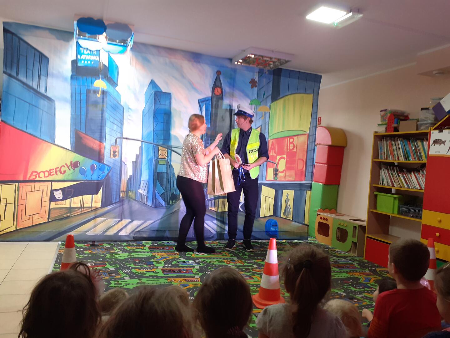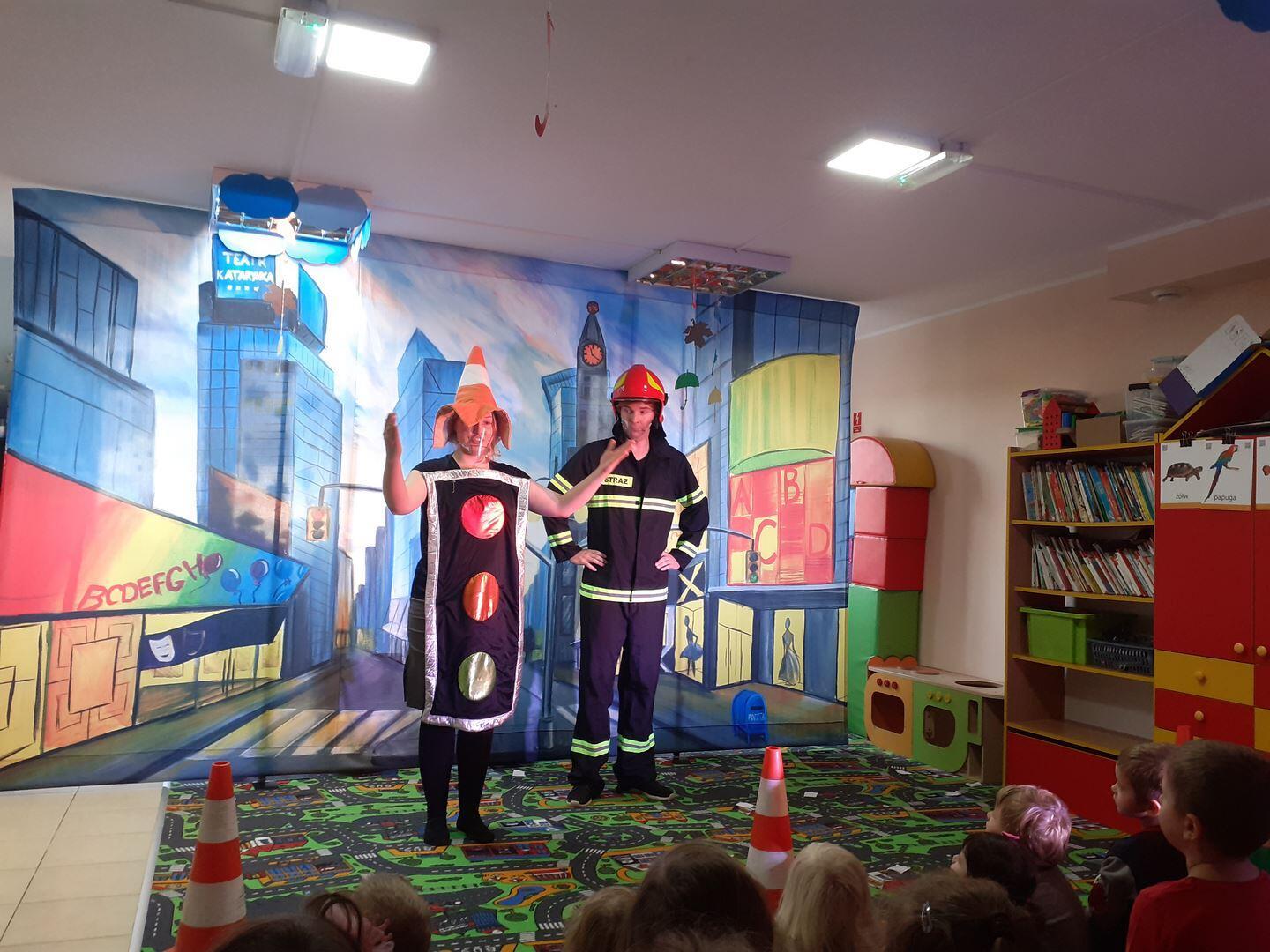 TEATR DOTYCZYŁ  NIEBEZPIECZEŃSTWA , KTÓRE NAS OTACZA NA ULICY ORAZ ZAGROŻEŃ SPOWODOWANYCH PRZEZ WZNIECENIE  OGNIA. POPRZEZ  ZABAWĘ DZIECI ZOSTAŁY UŚWIADOMIONE JAK SIĘ ZACHOWYWAĆ W RAZIE NIEBEZPIECZEŃSTWA ORAZ NAUCZYŁ NASZYCH MILUSIŃSKICH NUMERÓW ALARMOWYCH.